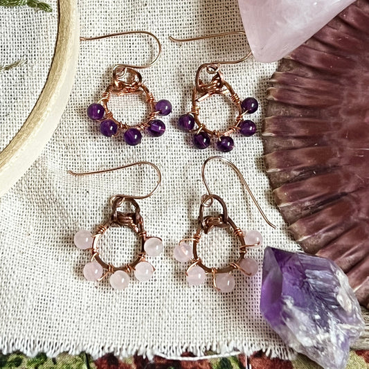 Lucky Amethyst or Rose Quartz Earrings