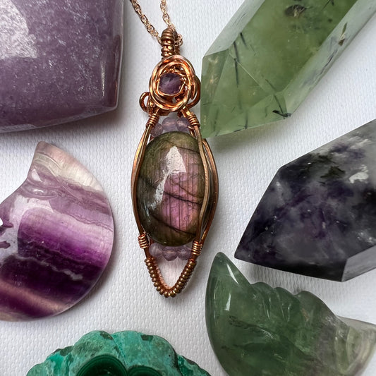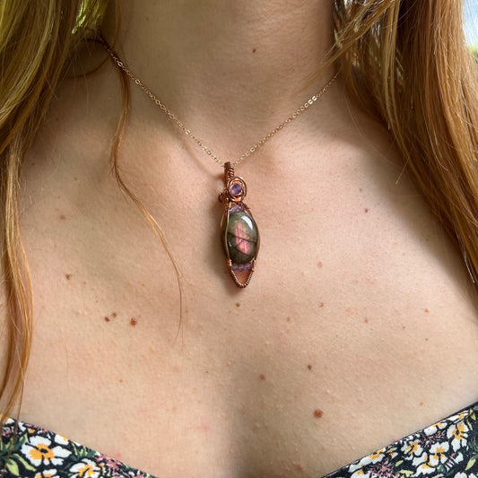 Purple Labradorite and Amethyst Wire-Wrapped Pendant - Ready to Ship