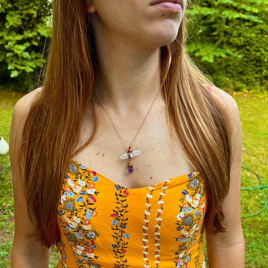 Handmade Wire-Wrapped Double Terminated Quartz & Amethyst Pendant