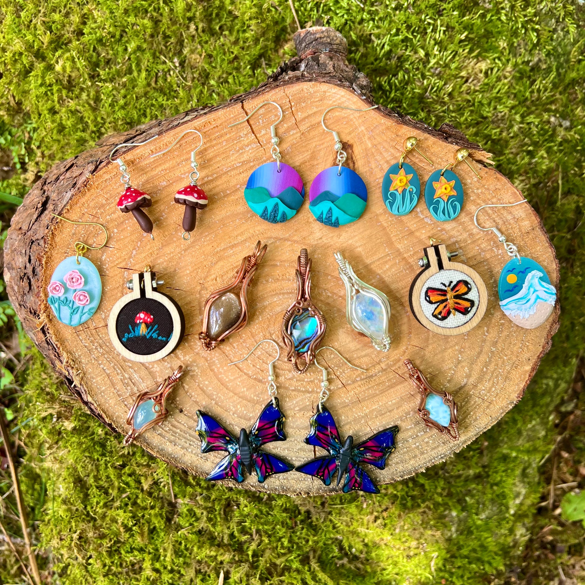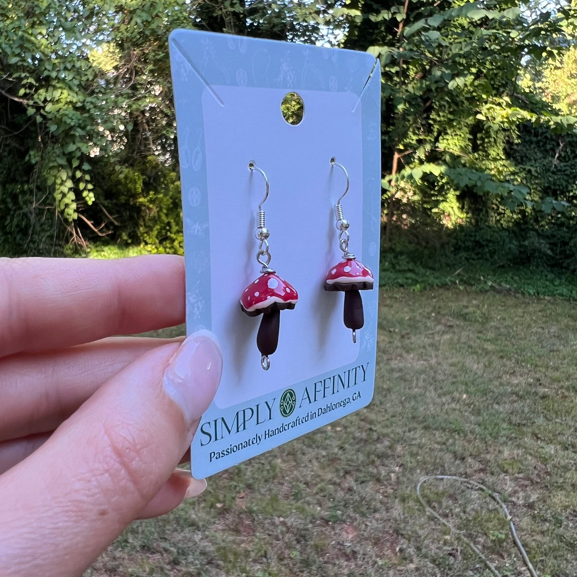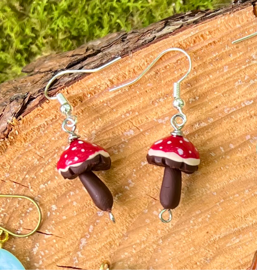Add a touch of enchantment to your wardrobe with our lightweight and intricately sculpted mushroom earrings. Handcrafted from lightweight polymer clay with a resin coating, enjoy the whimsical beauty of nature while being comfortable wearing your earrings all day long. These sweet earrings are on silver plated brass earring wires. If you would like to upgrade to titanium, gold-filled, or sterling silver french style earring wires, you can add this listing in the following link to your cart: Earring Wire Upgrade
