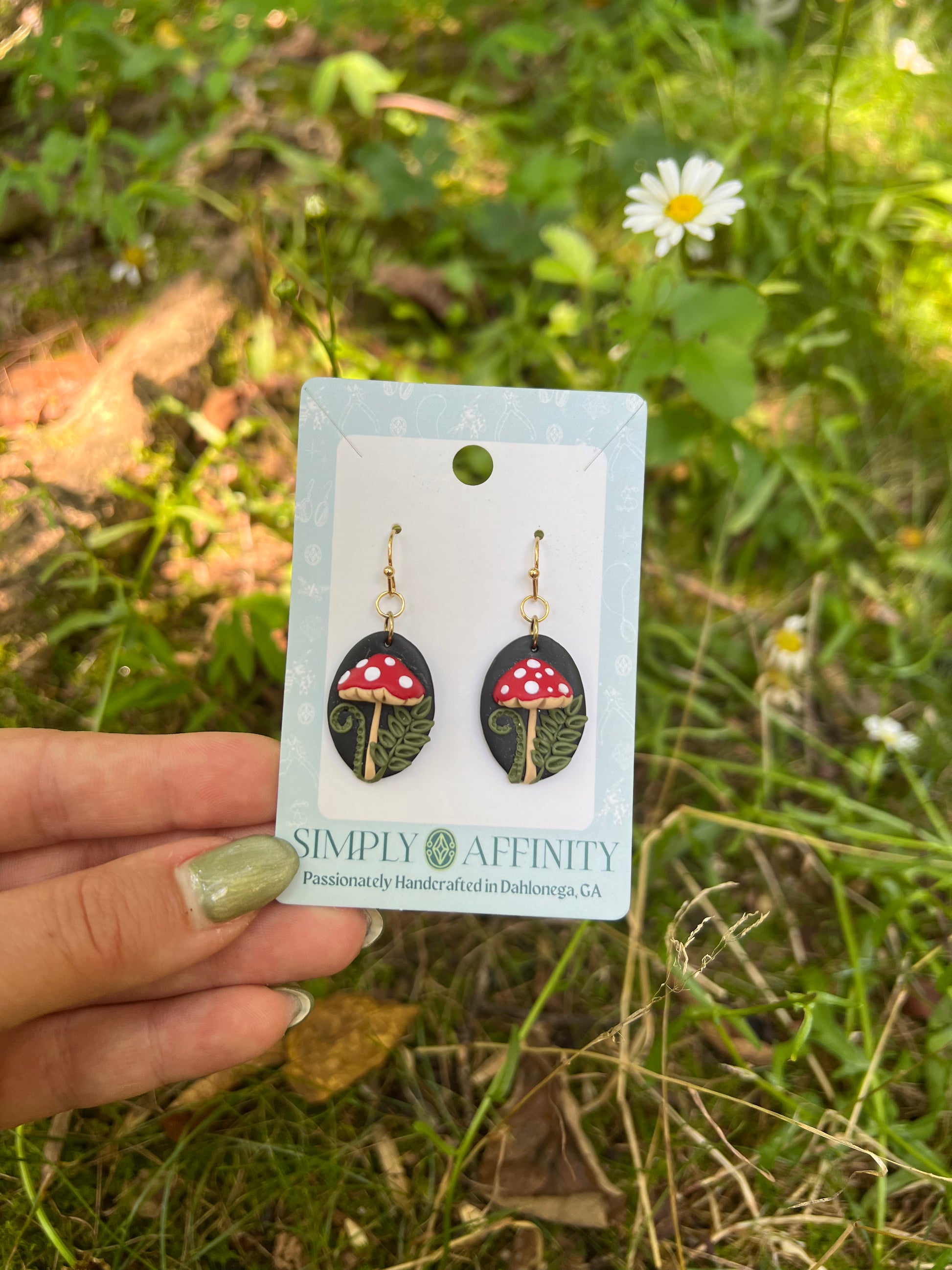 3-D Mushroom Earrings with Ferns