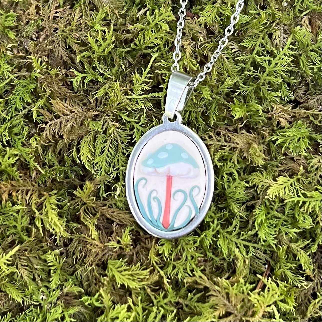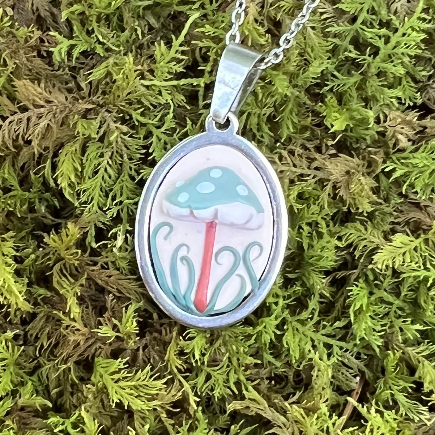 Hand-Sculpted Polymer Clay Mushroom Necklace