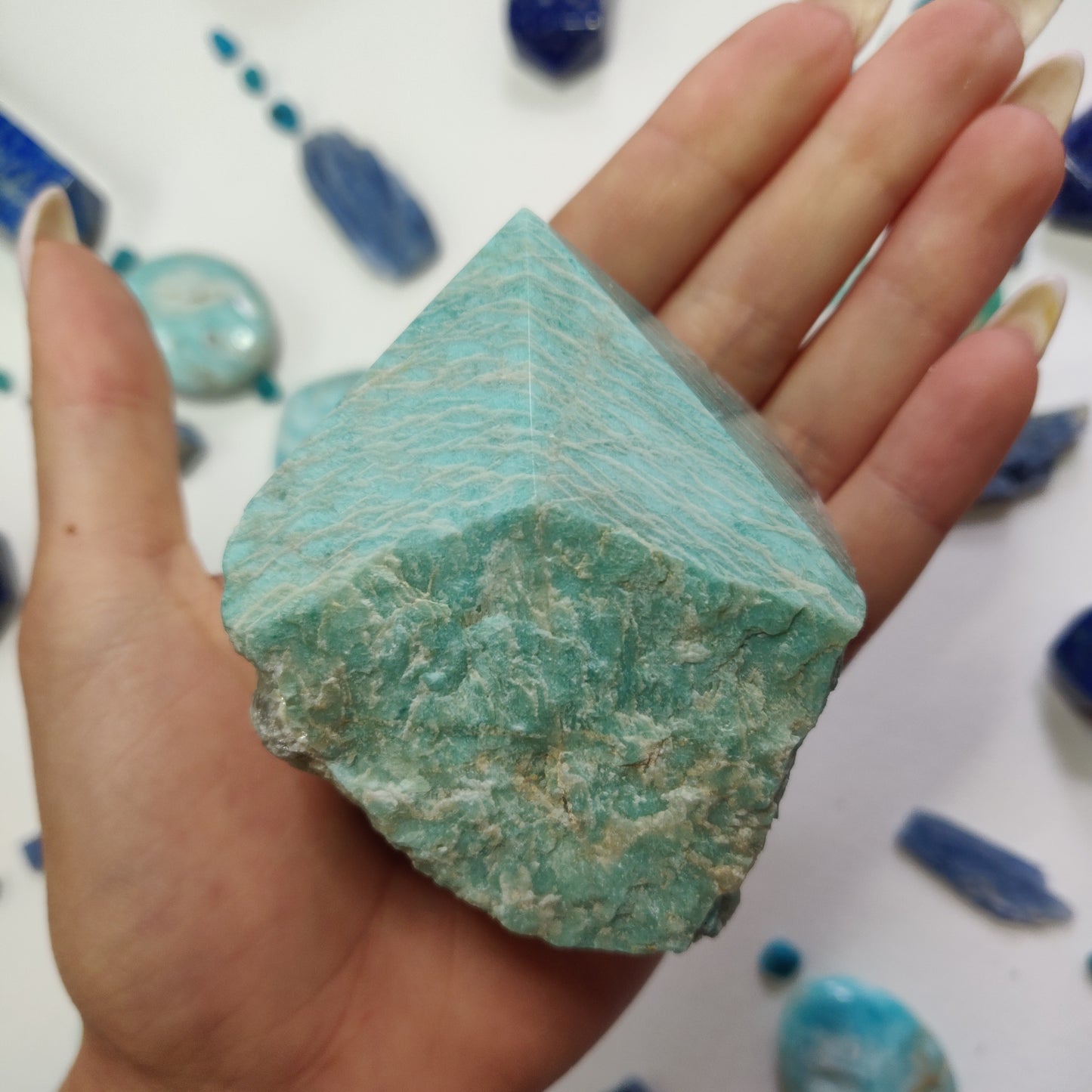 This beautiful Amazonite point is polished at the top, and left rough at the base.