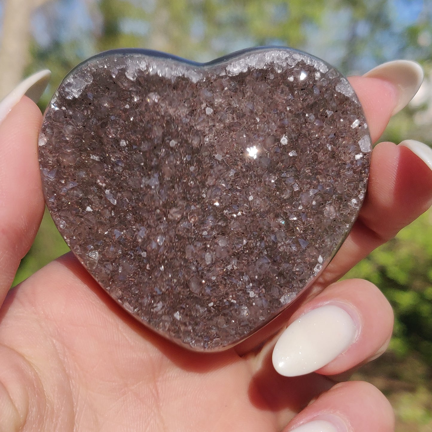 This beautiful geode heart is encrusted with stunning Amethyst crystals.