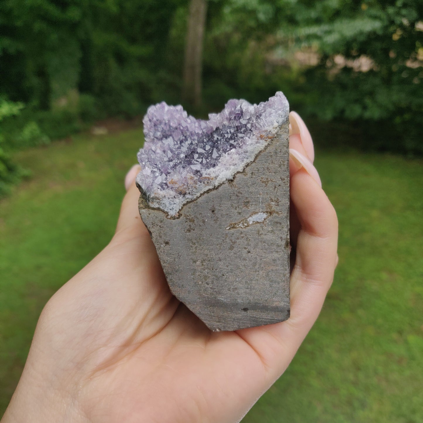Amethyst evokes passion and imagination, emotion and logic. It stimulates creativity and is particularly helpful in artistic endeavors. Amethyst is the traditional birthstone of those born in February, and is associated with the sign of Pisces.