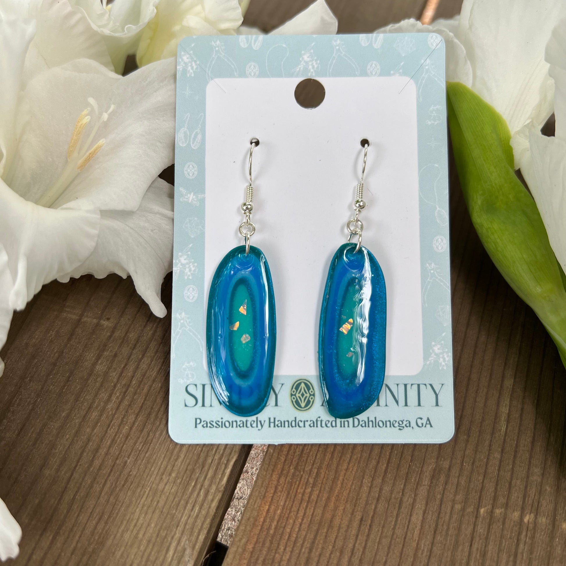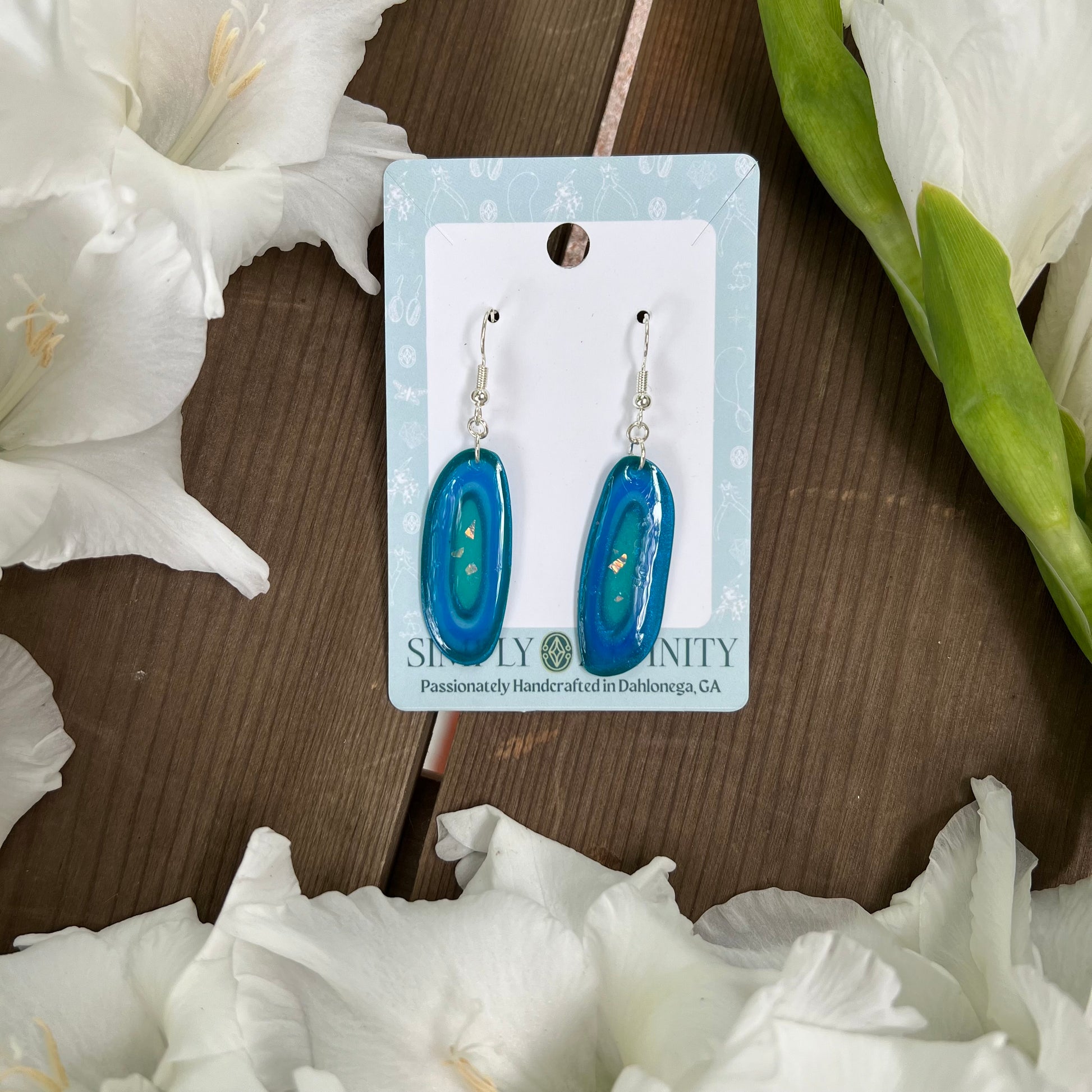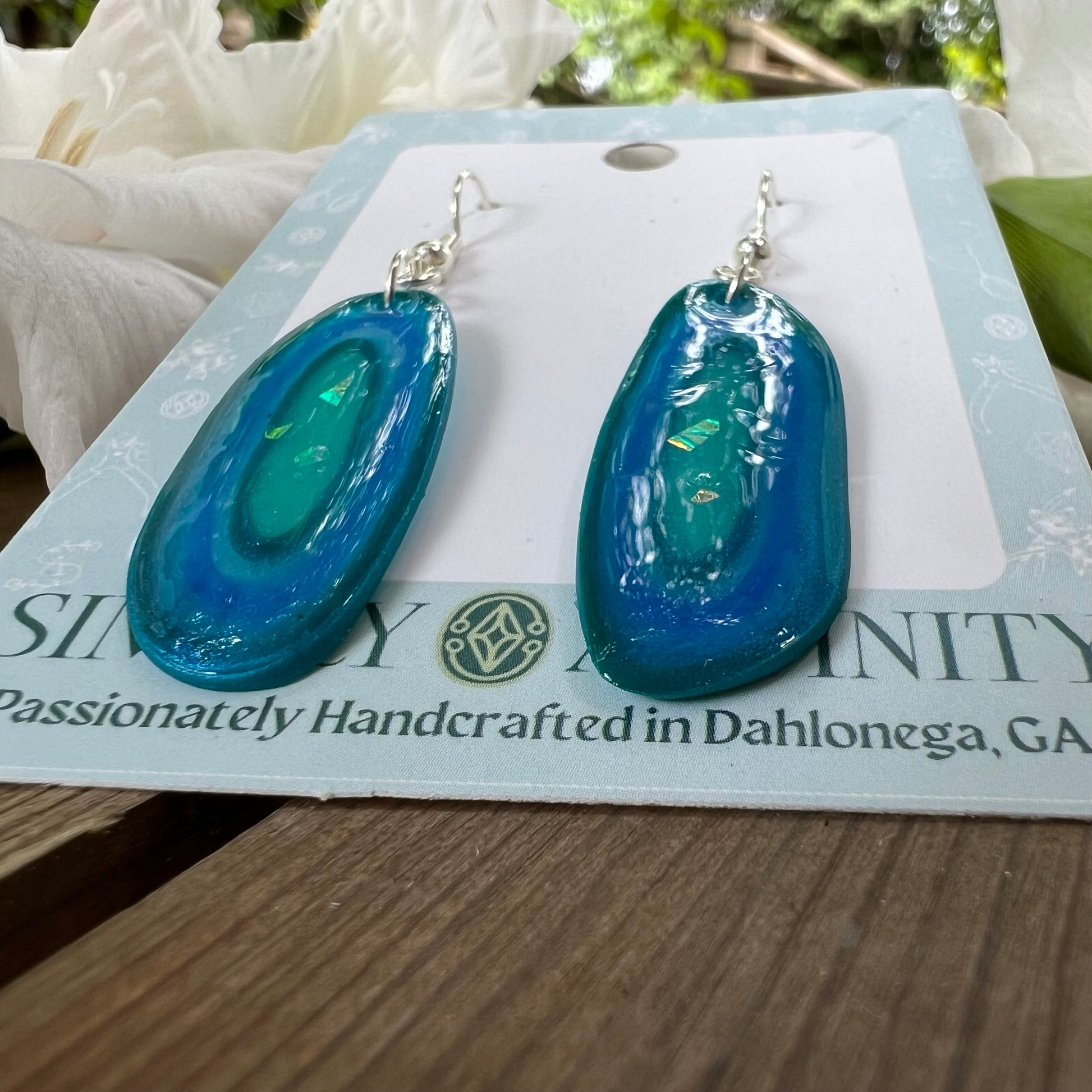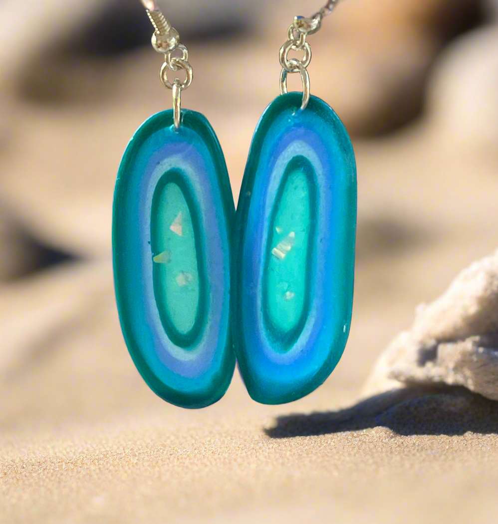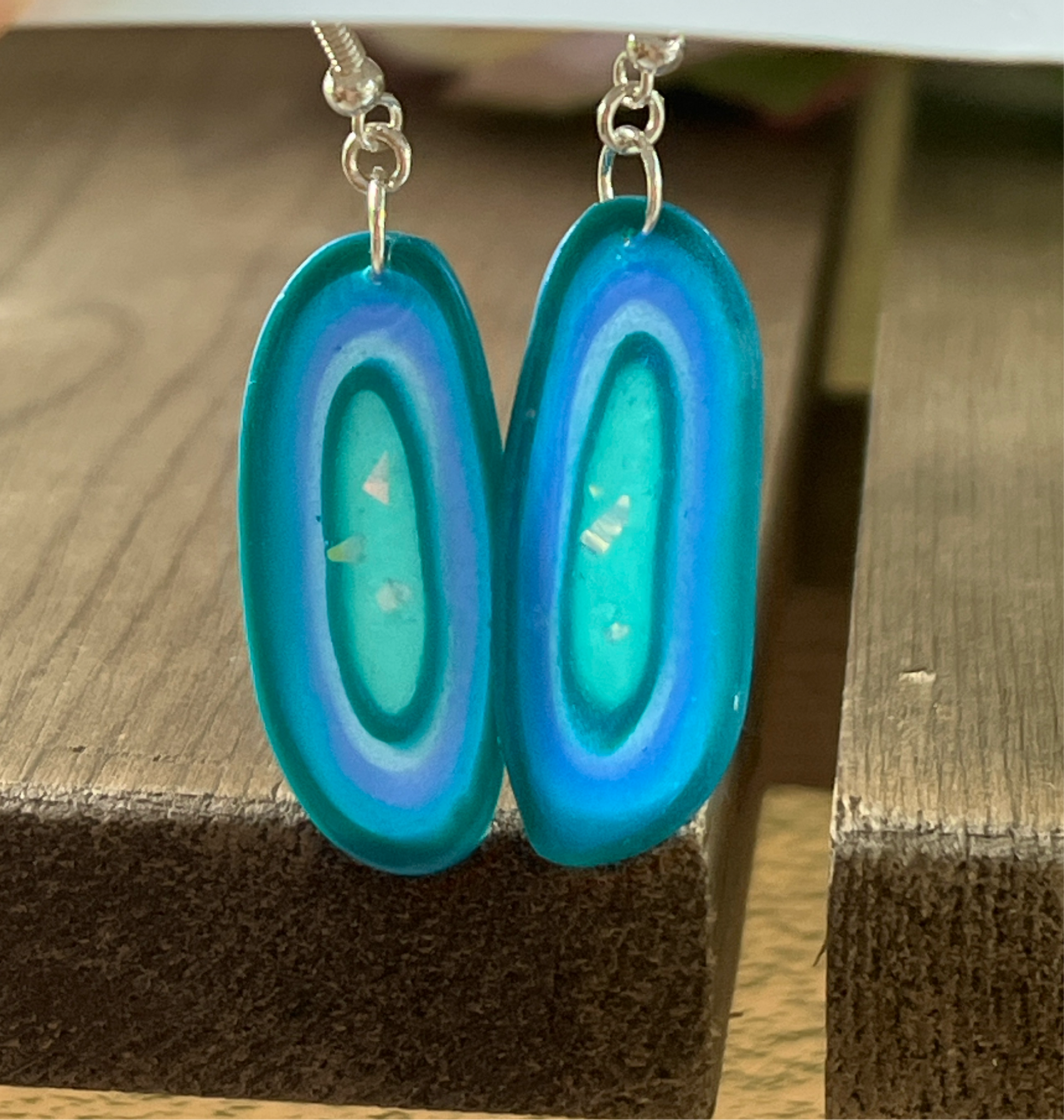 I lovingly handcrafted the details of these gorgeous "agate slice" earrings out of translucent polymer clay. I create my own mixtures of special colors of clay using alcohol inks to create each layer of color. After sculpting and baking, I gave them a glossy finish with a layer of resin to look more agate-like. These sweet earrings are on silver plated earring wires. If you would like to upgrade to titanium, gold-filled, or sterling silver french style earring wires, you can add this listing in the following link to your cart: Earring Wire Upgrade
