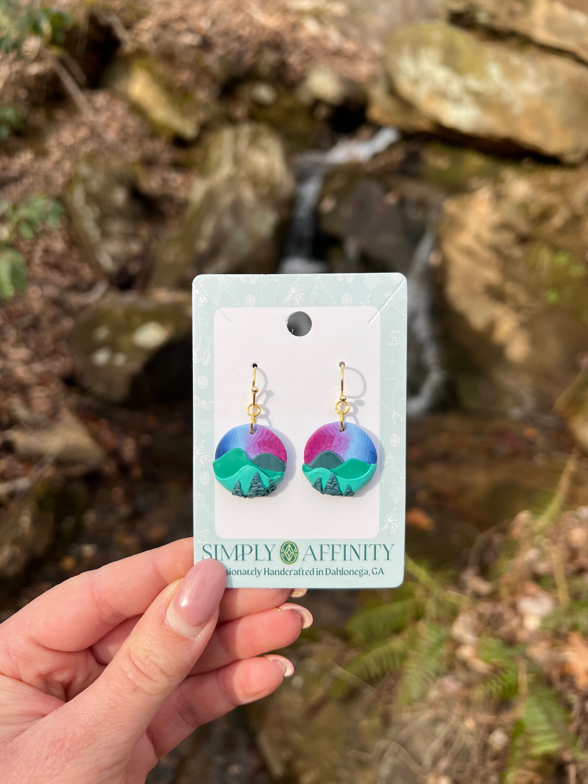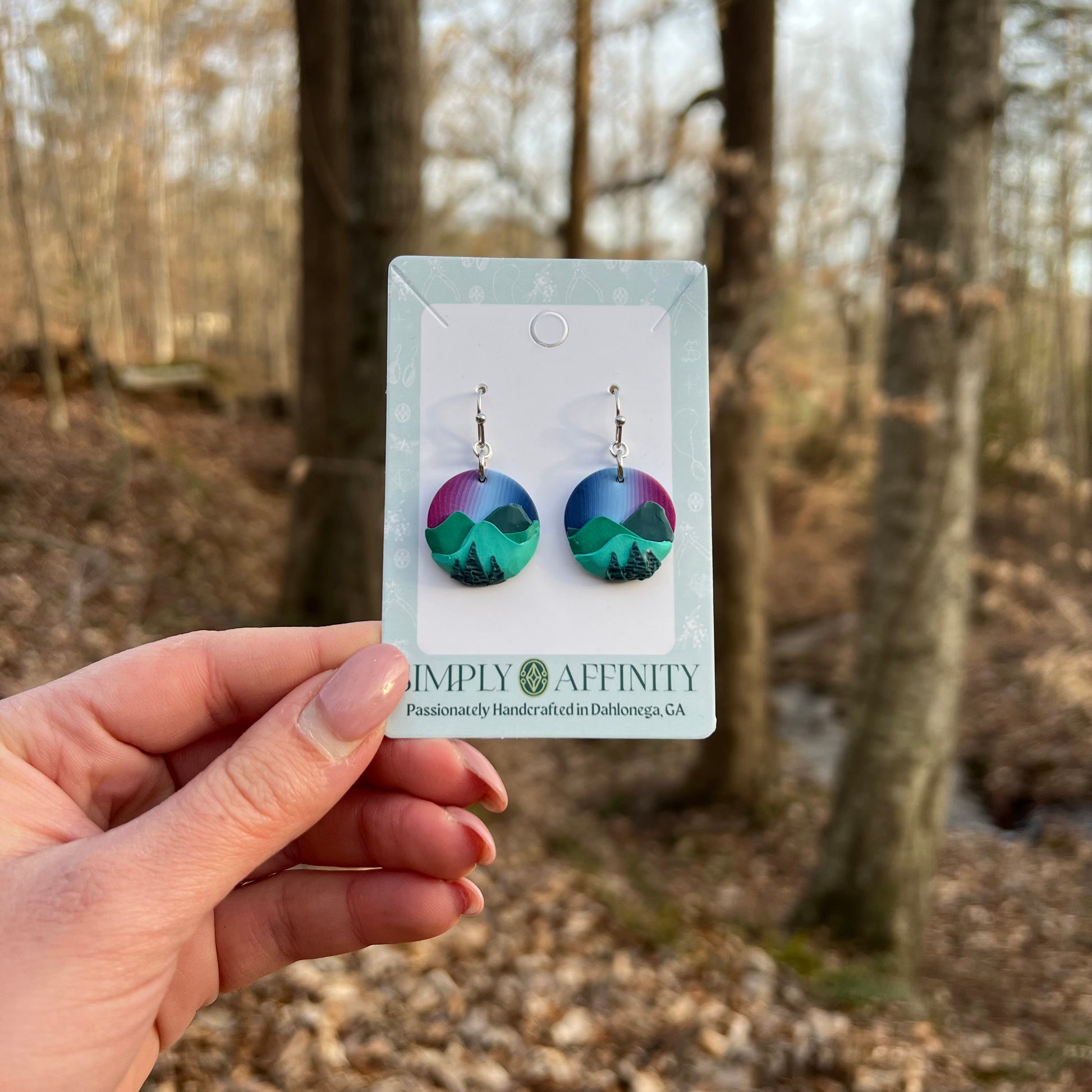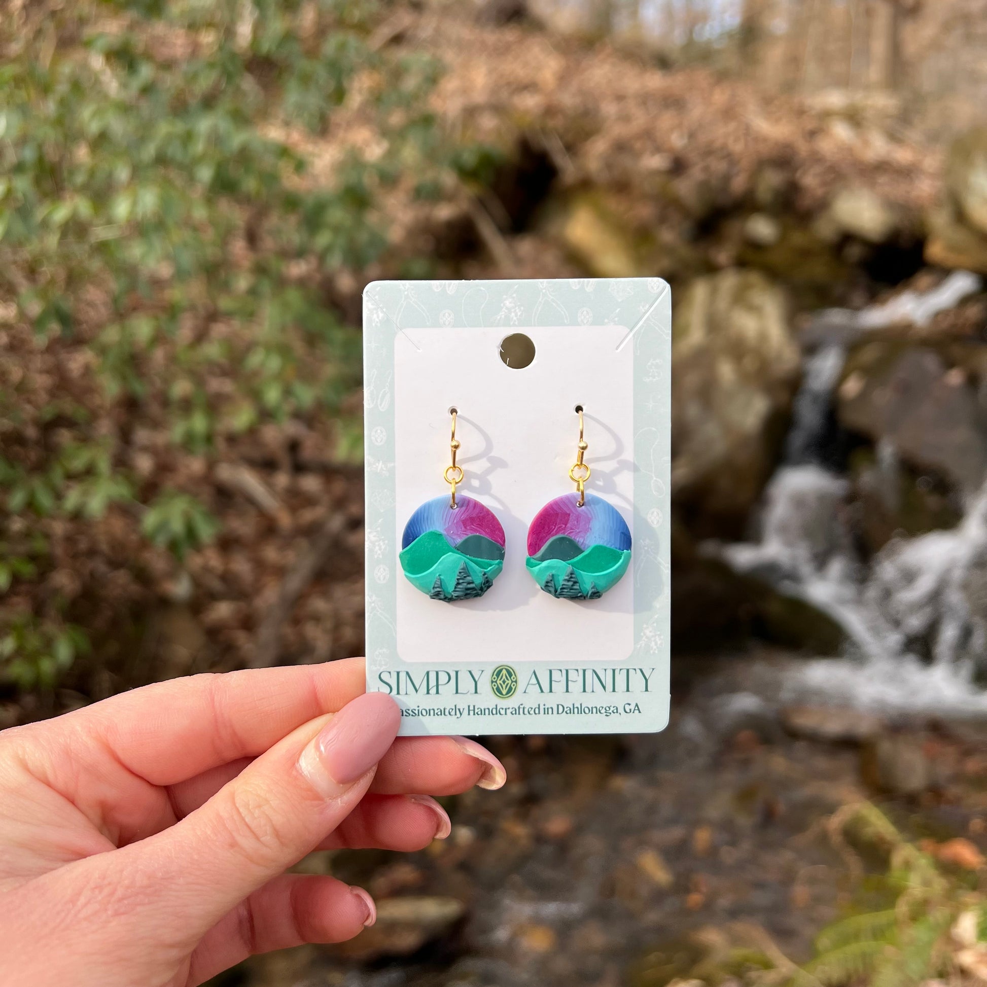 Add a touch of nature to your wardrobe with our lightweight and intricately sculpted mountain scene earrings. Handcrafted from lightweight polymer clay, enjoy the whimsical beauty of nature while being comfortable wearing your earrings all day long. These sweet earrings are on silver plated brass earring wires.