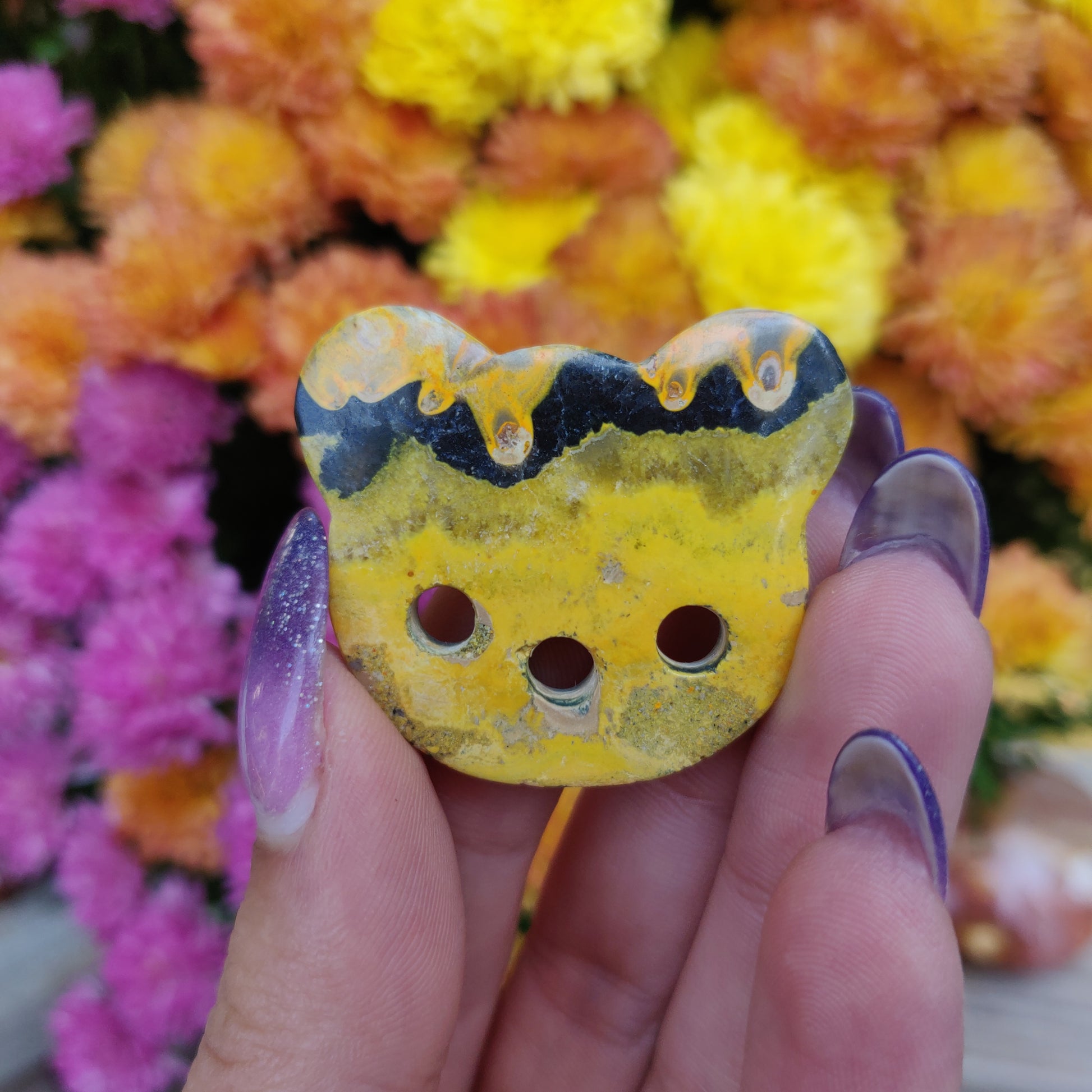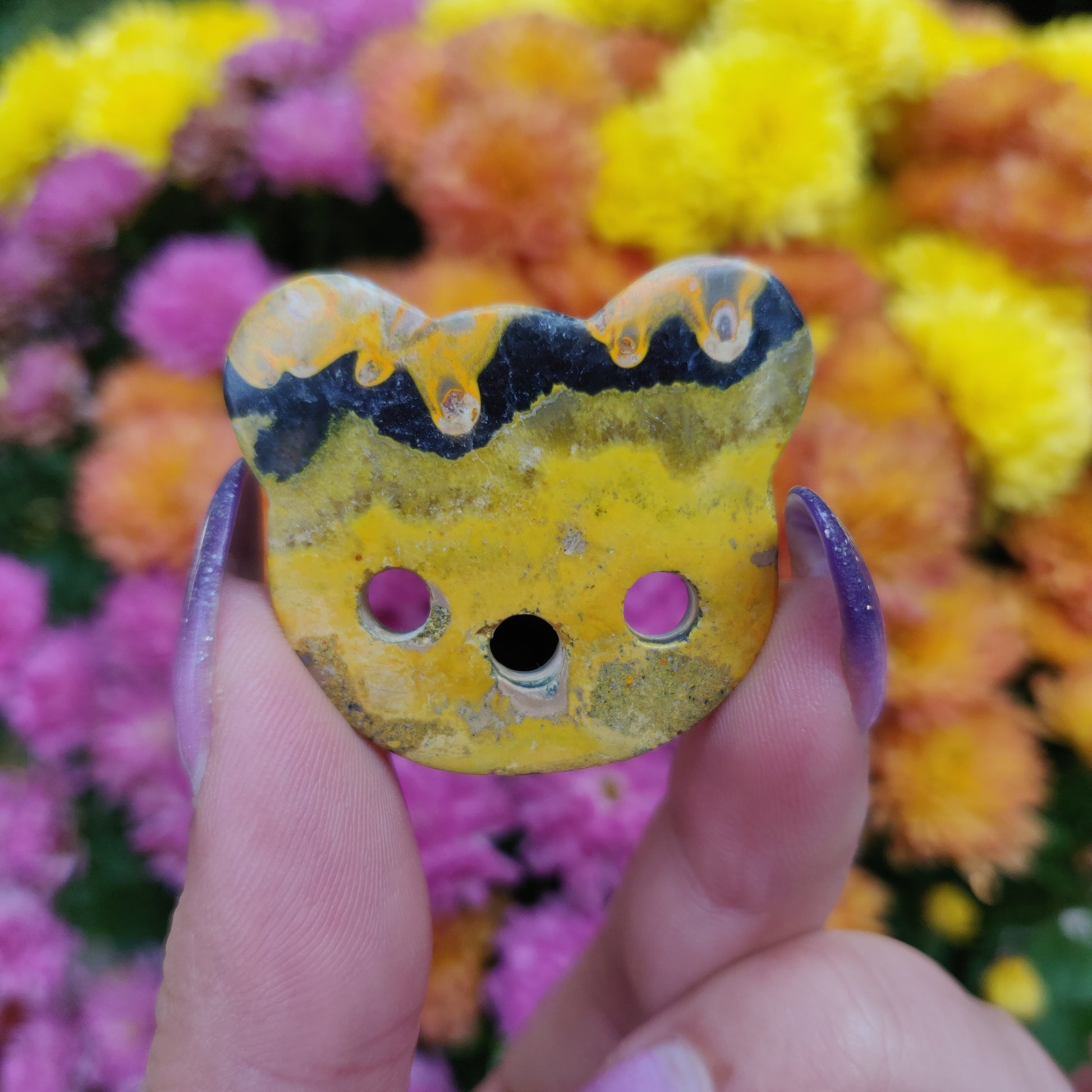 Please wash your hands after working with Bumblebee Jasper. It is on the toxic list of crystals. It can naturally contain sulfur and arsenic.Â