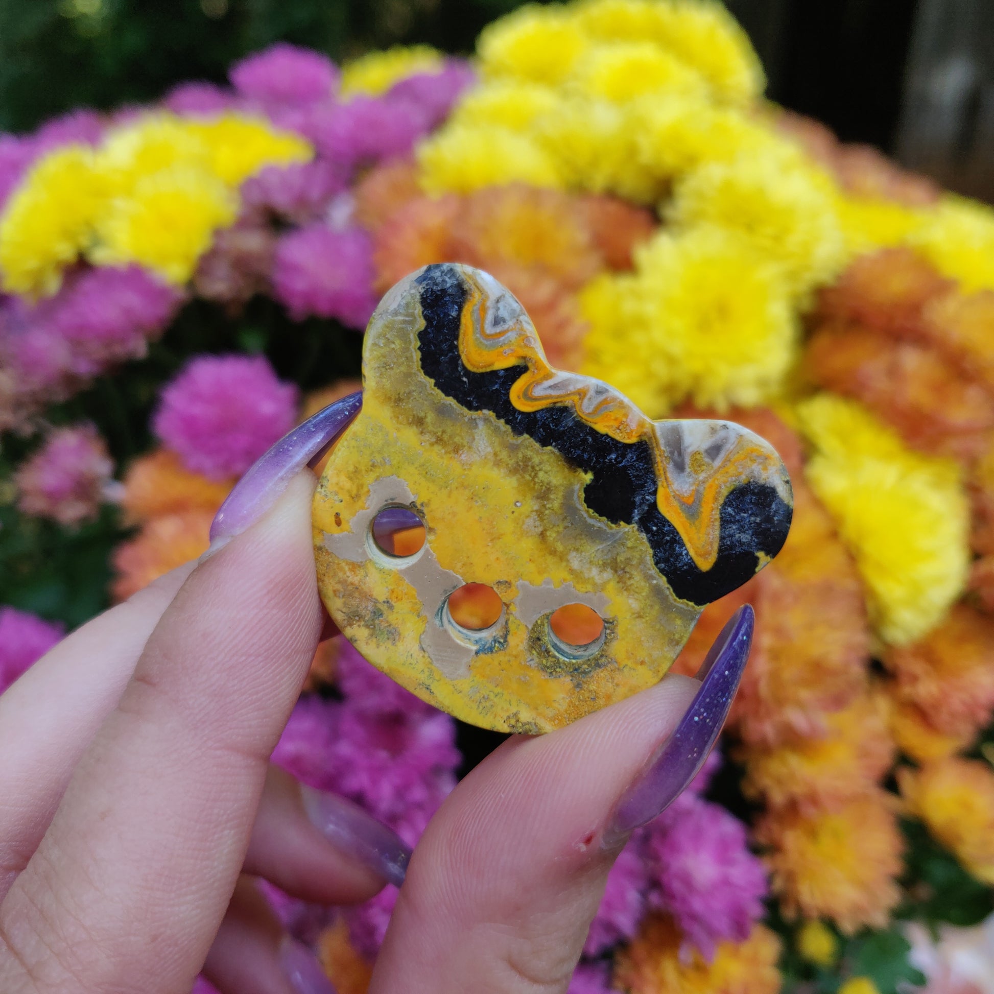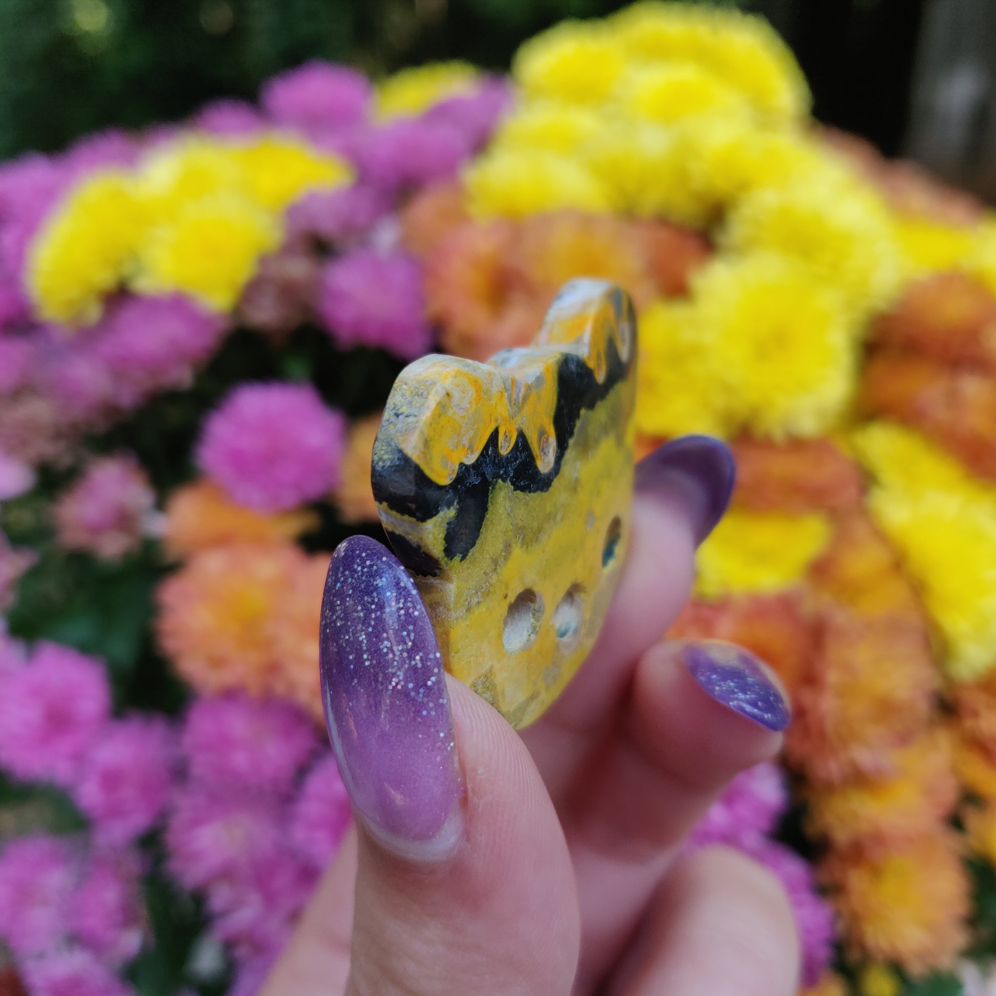 Bumblebee Jasper is a beautiful volcanic stone. Bumblebee Jasper encourages honesty, and also represents that anything is possible. The bumblebee is not aerodynamically designed to fly, however, they achieved the "impossible" and are able to fly! It is a wonderful reminder that as some things are mind over matter.Â