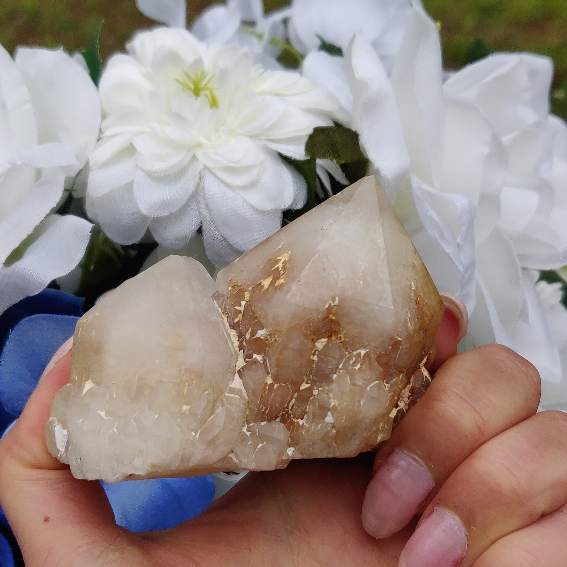 Candle quartz is recognized by a myriad of smaller terminations surrounding a larger central point. Candle Quartz is a stone of harmony, and promotes working well as a team.