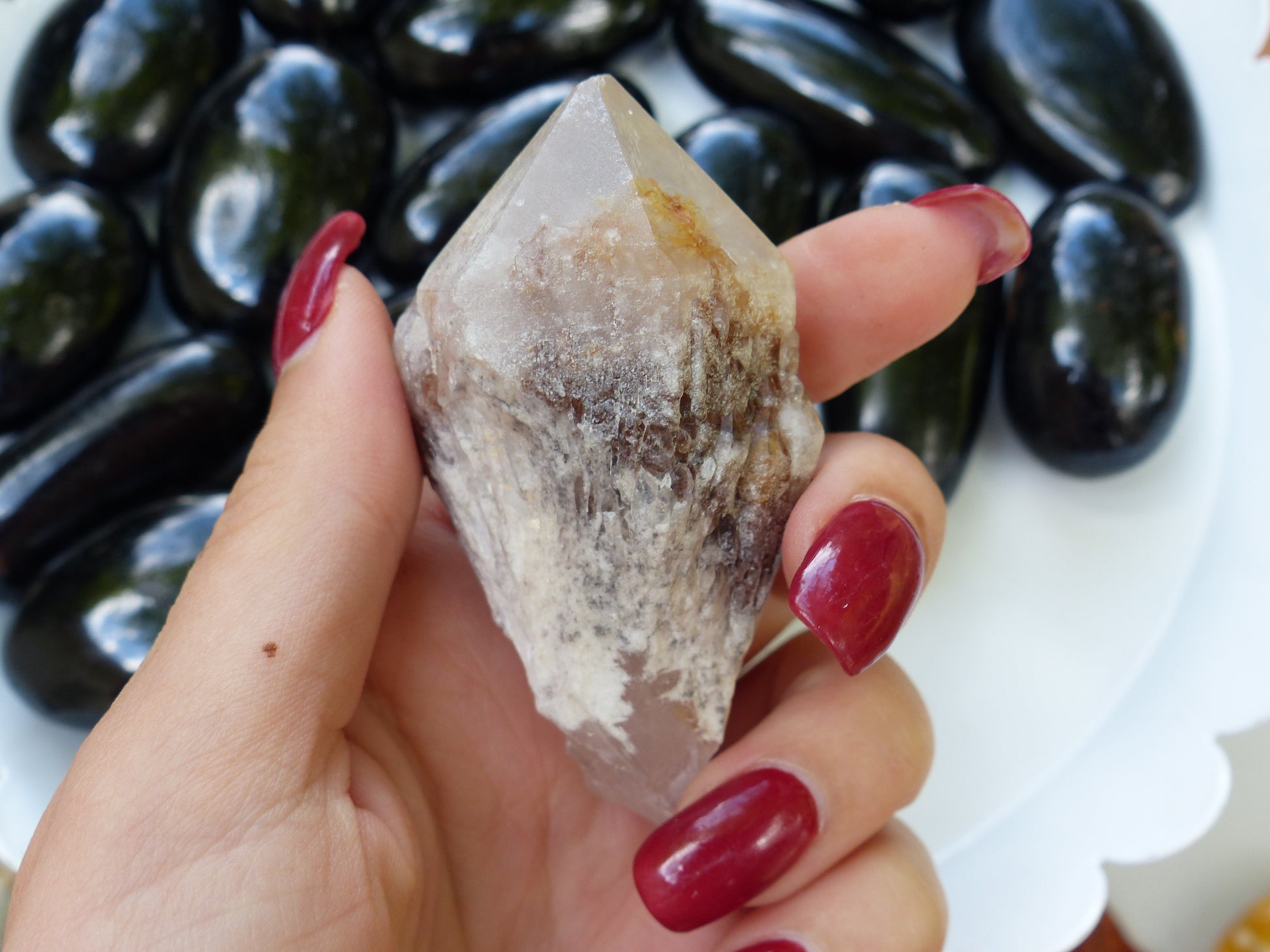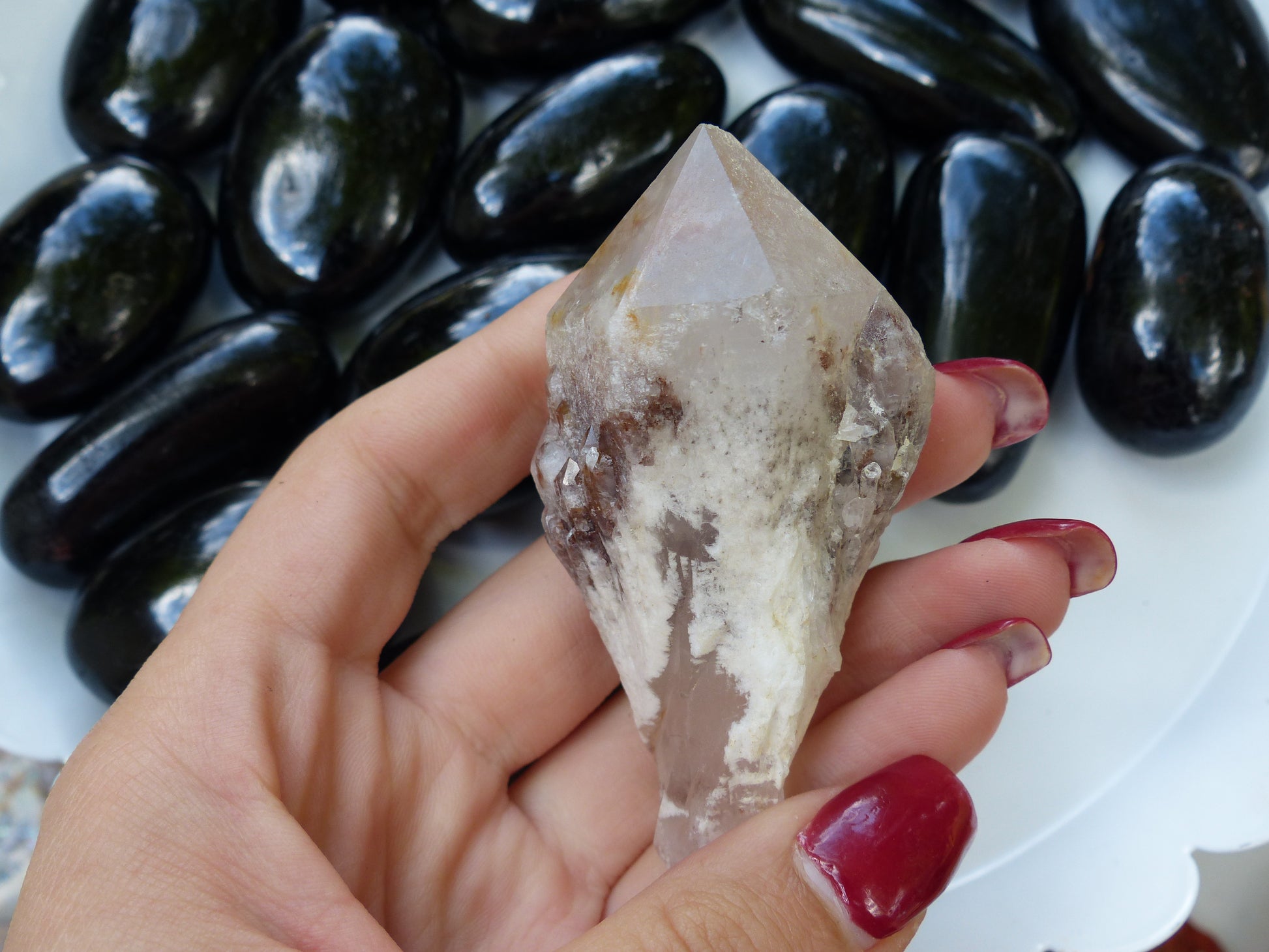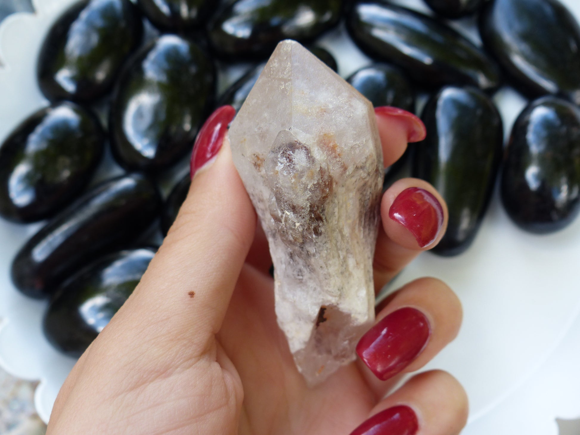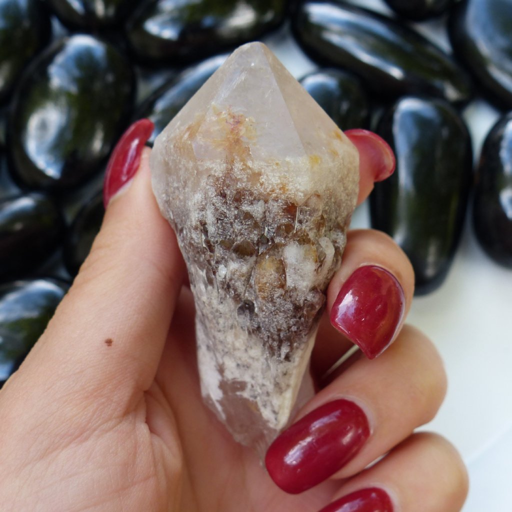 Candle quartz is recognized by a myriad of smaller terminations surrounding a larger central point. Candle Quartz is a stone of harmony, and promotes working well as a team.