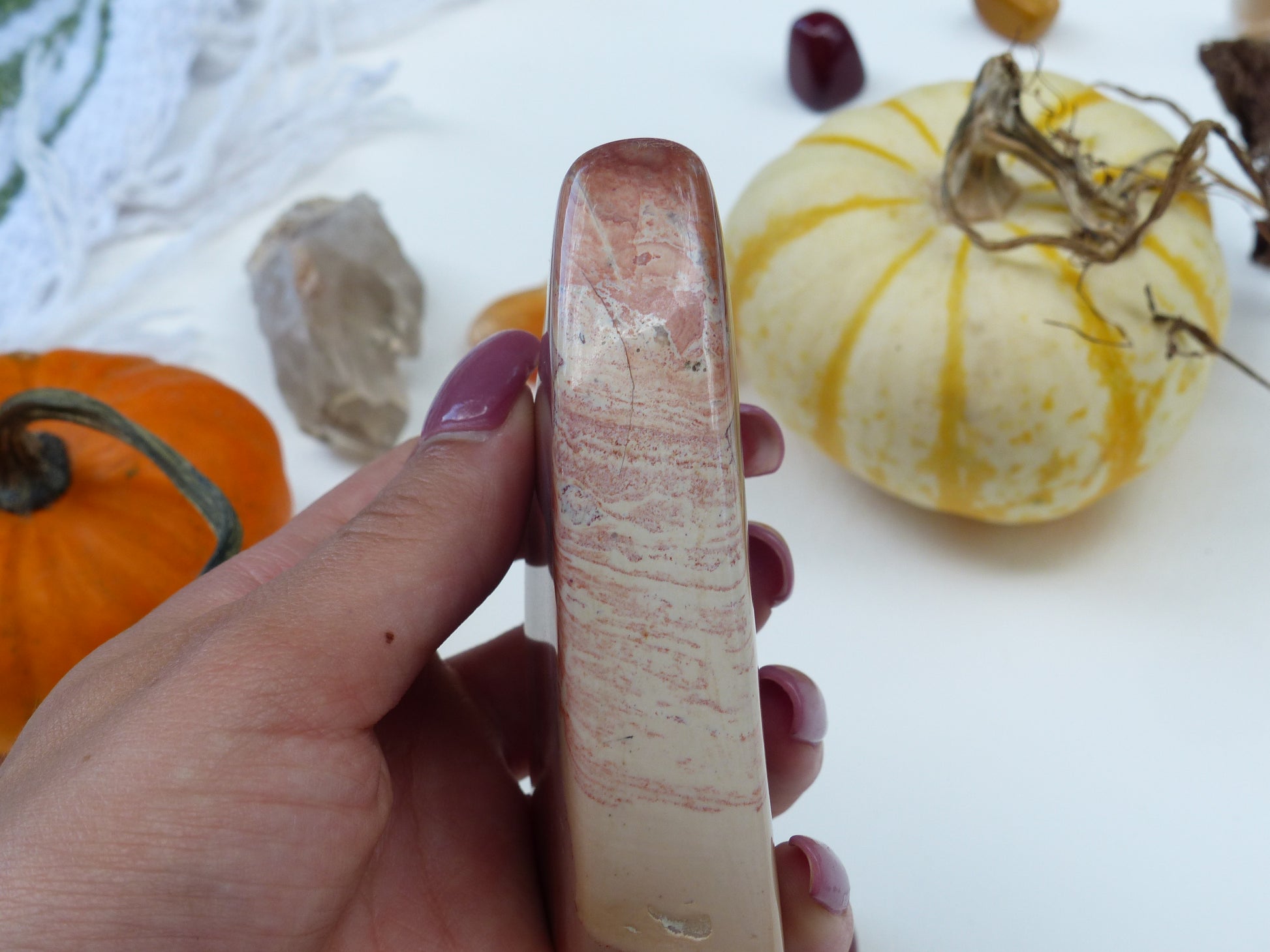 Carnelian is a form of chalcedony (which is in the quartz family). Carnelian is a stone of passion, love, and fertility. It is also the birthstone for Virgos. Carnelian is full of life force and vitality. it is a stone of high energy that evokes passion. At the same time, It is a very grounding and stabilizing stone. Carnelian reminds us to trust ourselves. It can help us to overcome negative conditioning and clarifies our perception. It can also help to calm anger and banish emotional negativity, replacing it with the love of life!