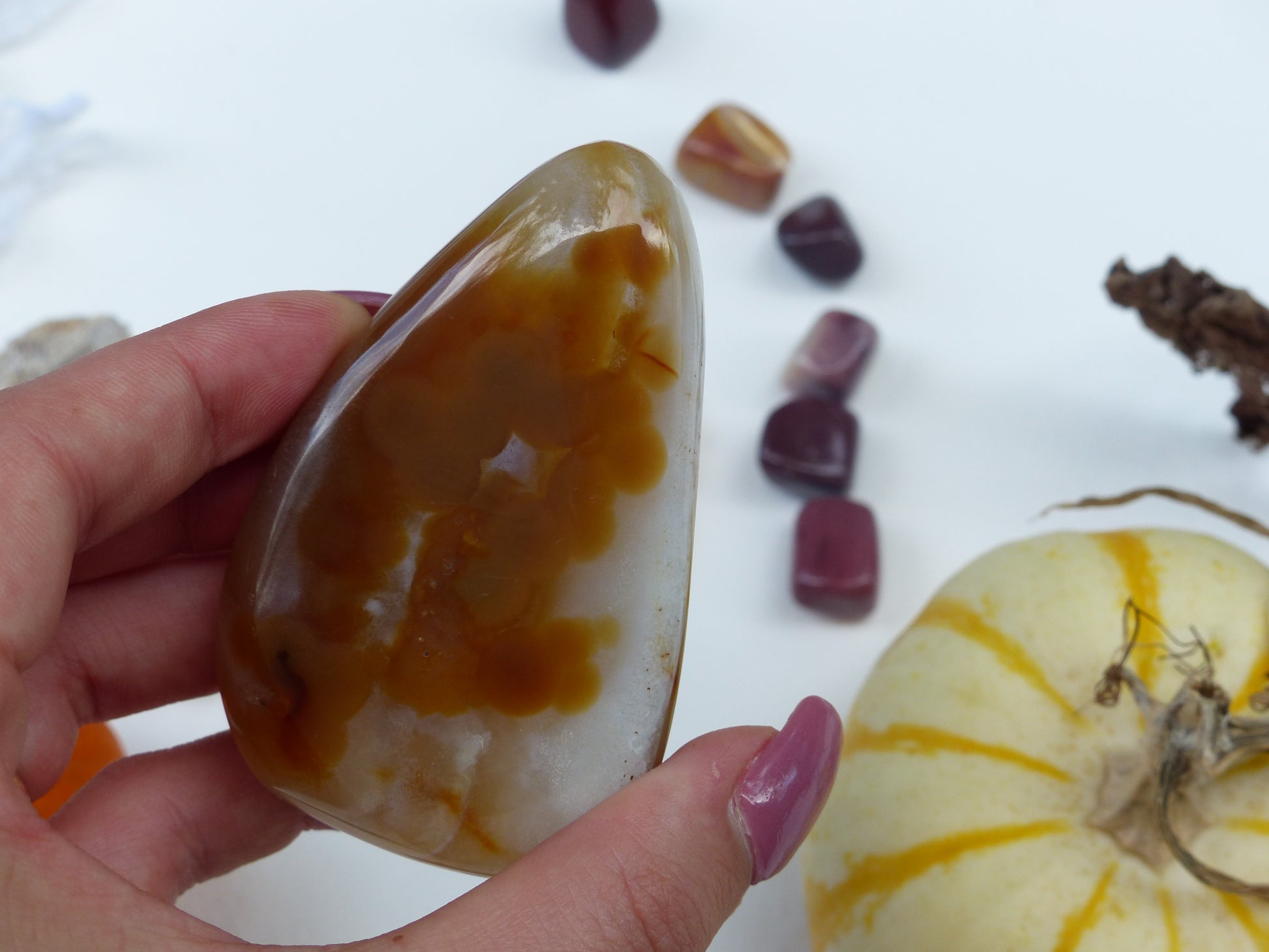Carnelian is a form of chalcedony (which is in the quartz family). Carnelian is a stone of passion, love, and fertility. It is also the birthstone for Virgos. Carnelian is full of life force and vitality. it is a stone of high energy that evokes passion. At the same time, It is a very grounding and stabilizing stone. Carnelian reminds us to trust ourselves. It can help us to overcome negative conditioning and clarifies our perception. It can also help to calm anger and banish emotional negativity, replacing it with the love of life!