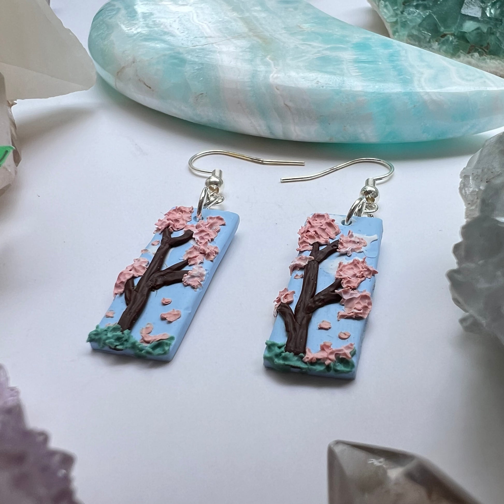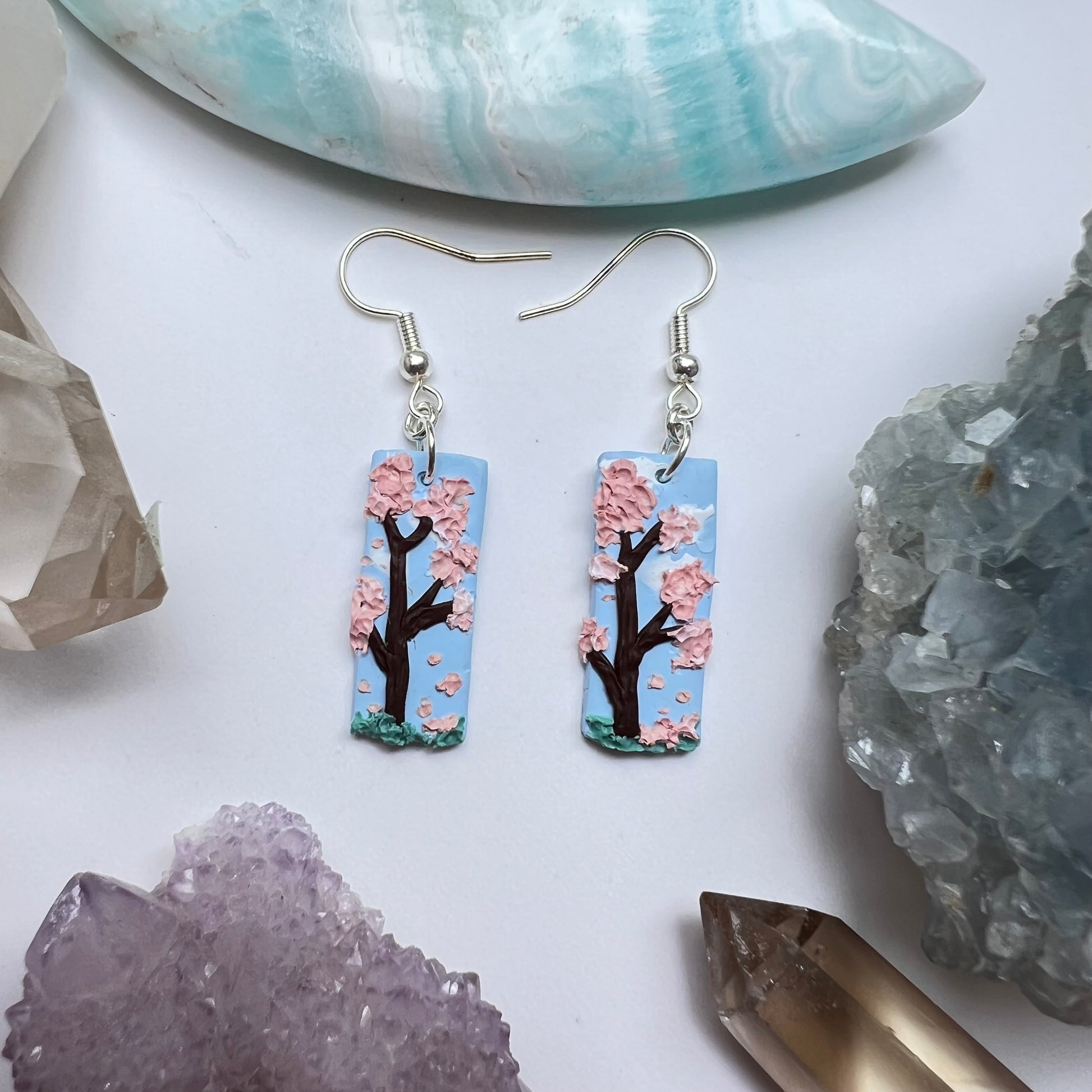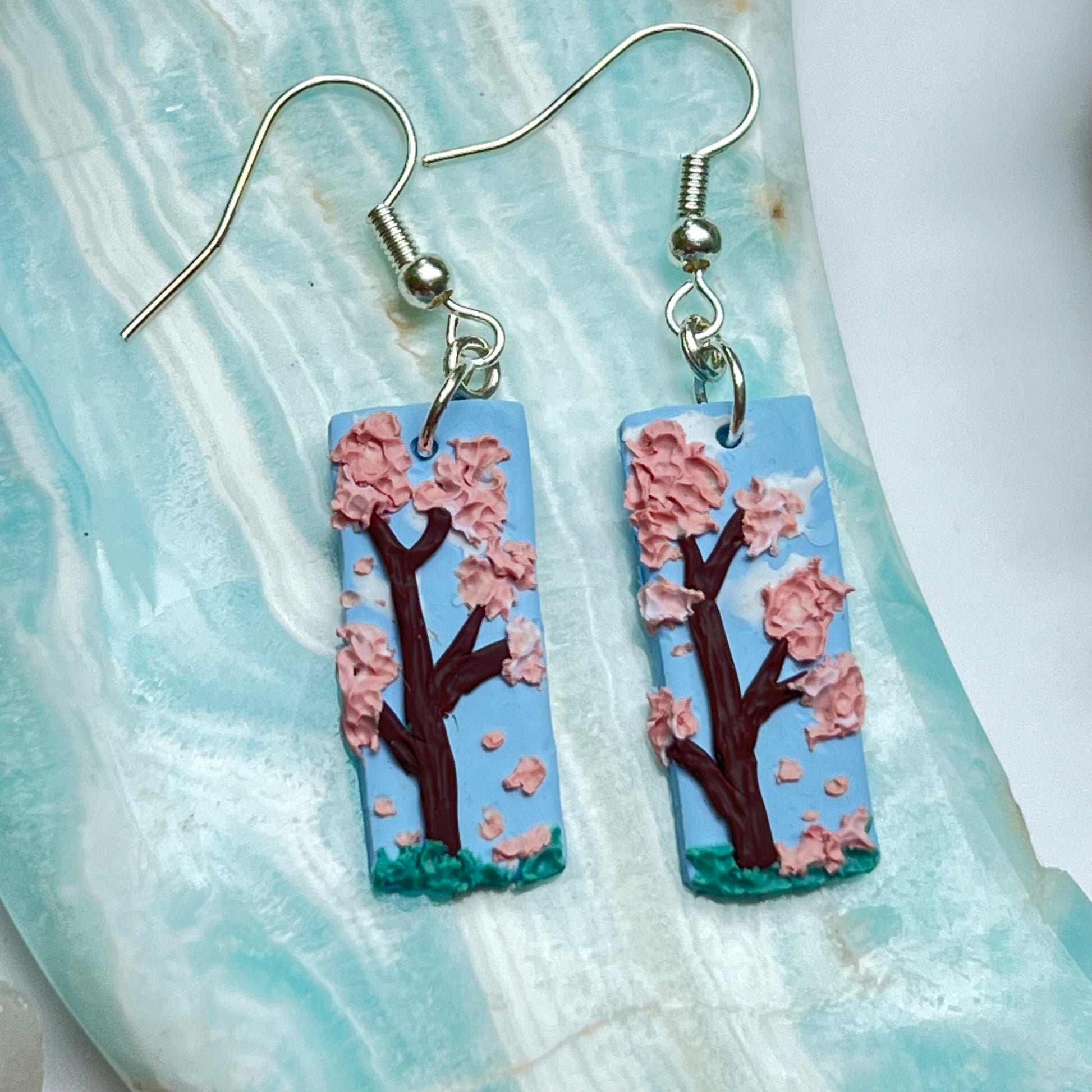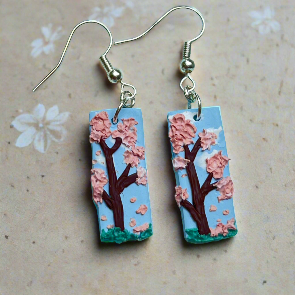 Add a touch of enchantment to your wardrobe with our lightweight and intricately sculpted Cherry Blossom Tree earrings. Handcrafted from lightweight polymer clay, enjoy the whimsical beauty of nature while being comfortable wearing your earrings all day long. These sweet earrings are on silver plated brass earring wires. If you would like to upgrade to titanium, gold-filled, or sterling silver french style earring wires, you can add this listing in the following link to your cart: Earring Wire Upgrade