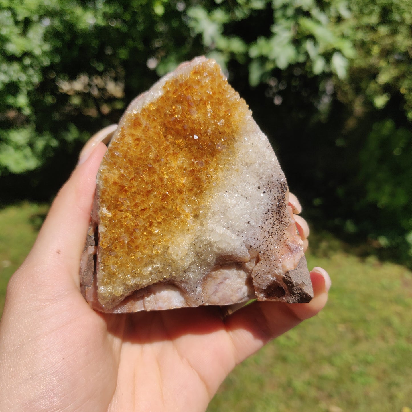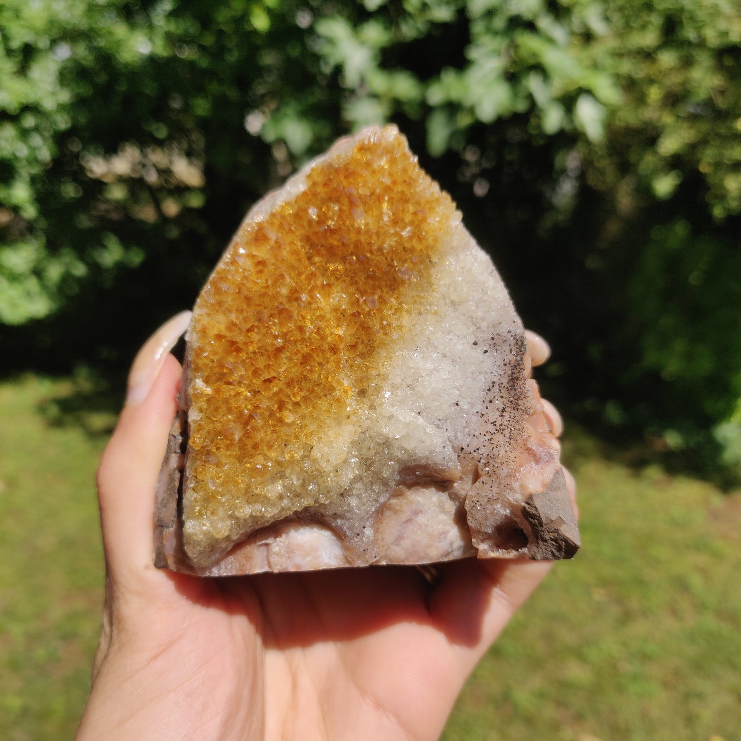 This beautiful Brazilian Citrine geode free form has lovely golden coloring. This citrine is Brazilian Amethyst that has been heat treated to turn its beautiful citrine color.