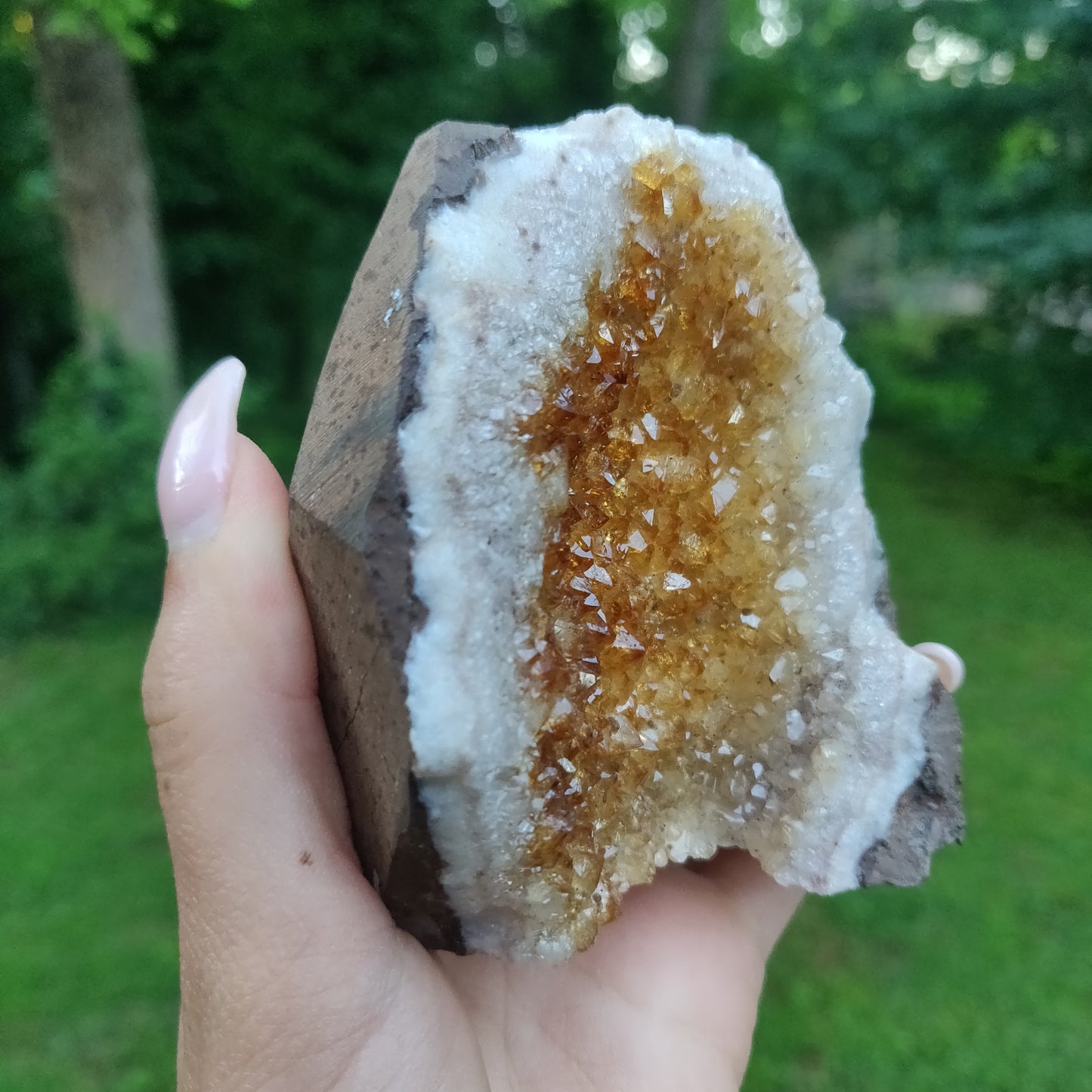 This beautiful Citrine geode free form is Brazilian Amethyst that has been heat treated to turn a lovely golden amber color.