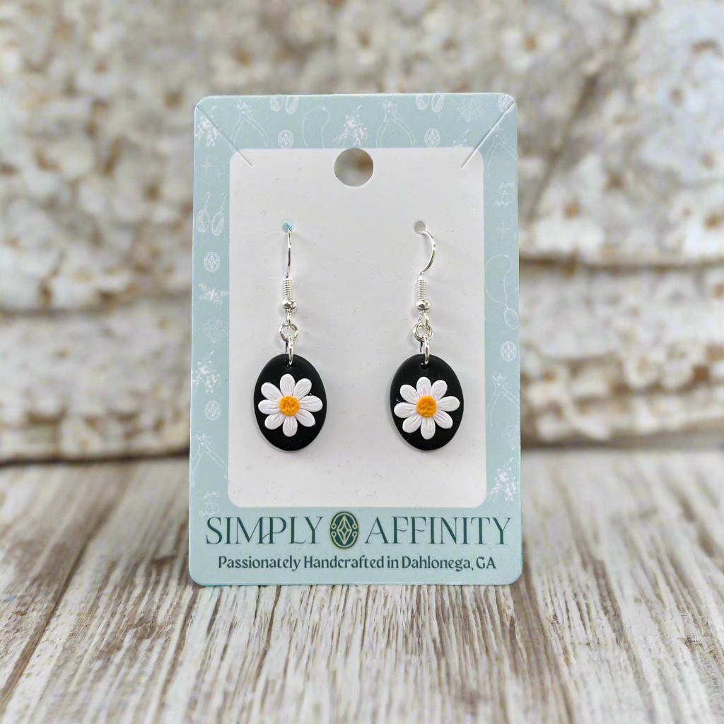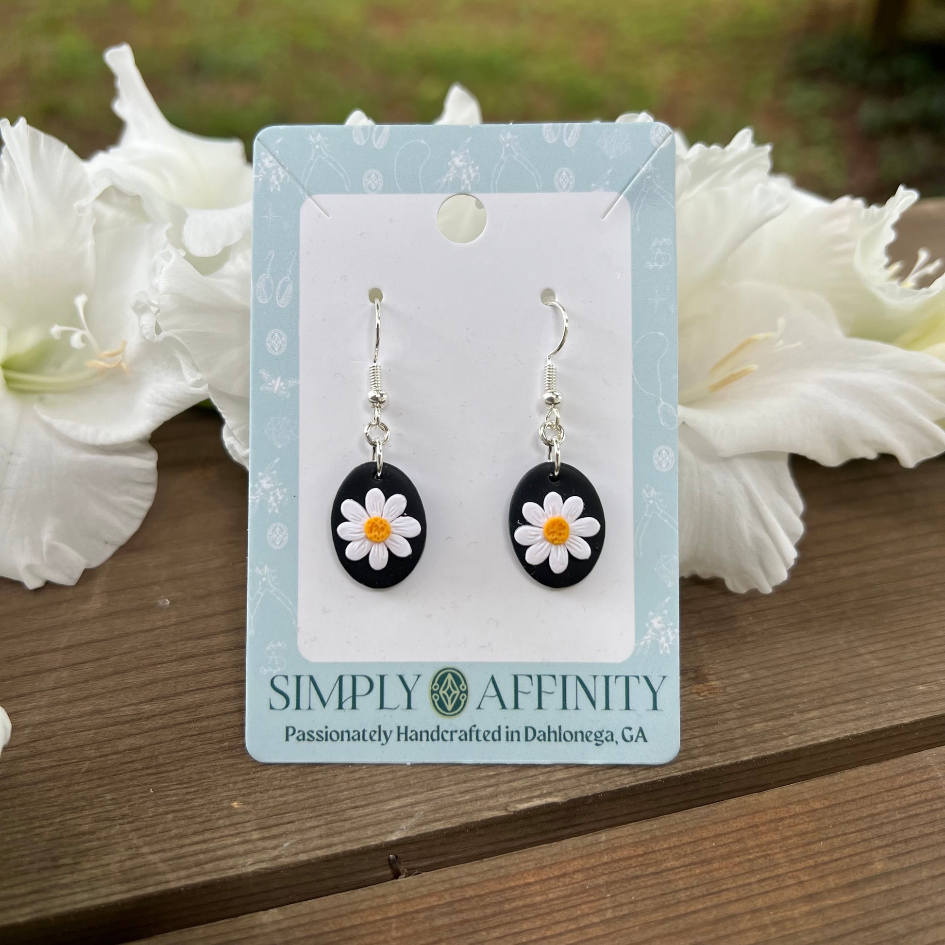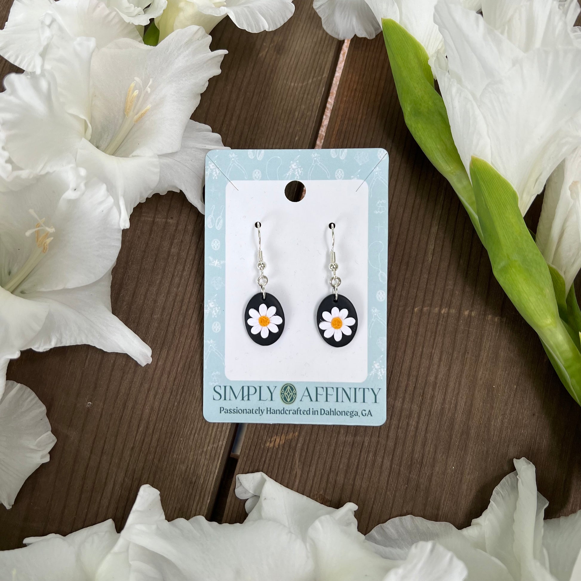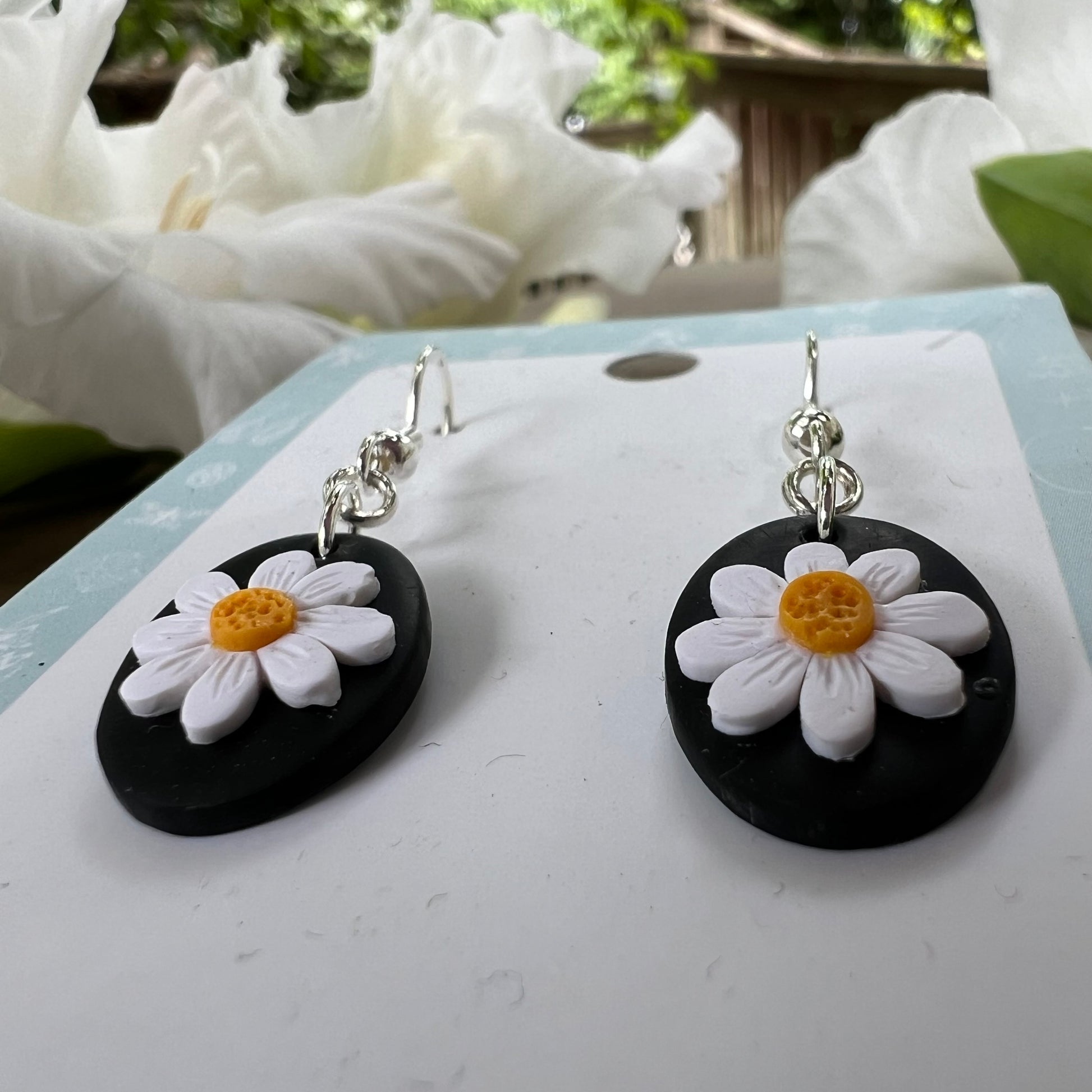 Add a touch of enchantment to your wardrobe with our lightweight and intricately sculpted daisy earrings. Handcrafted from lightweight polymer clay, enjoy the whimsical beauty of nature while being comfortable wearing your earrings all day long. These sweet earrings are on silver plated brass earring wires.