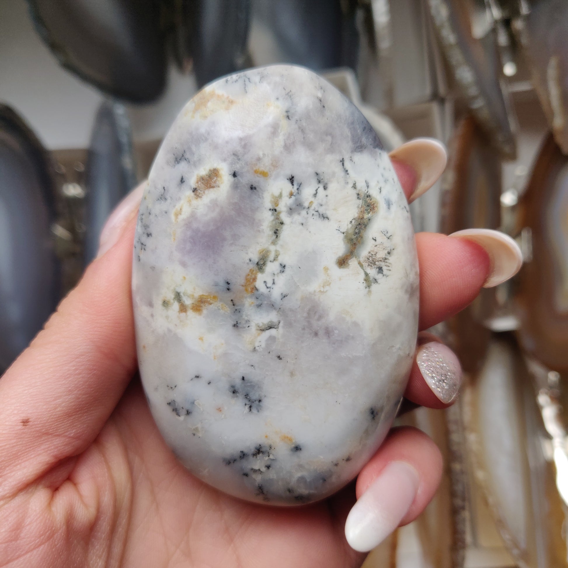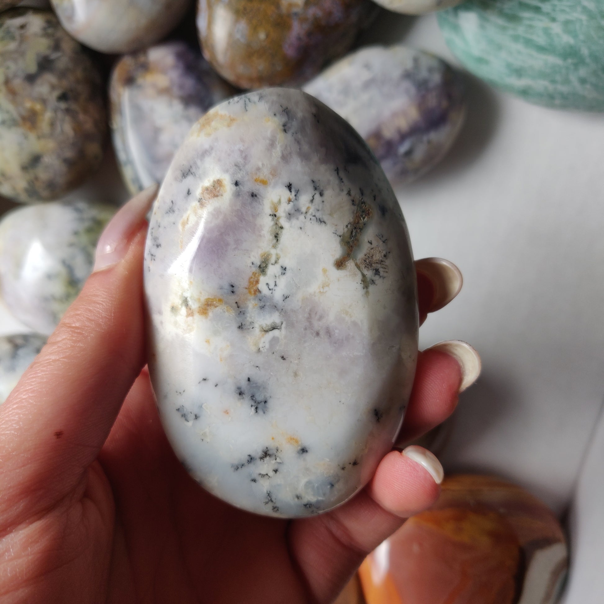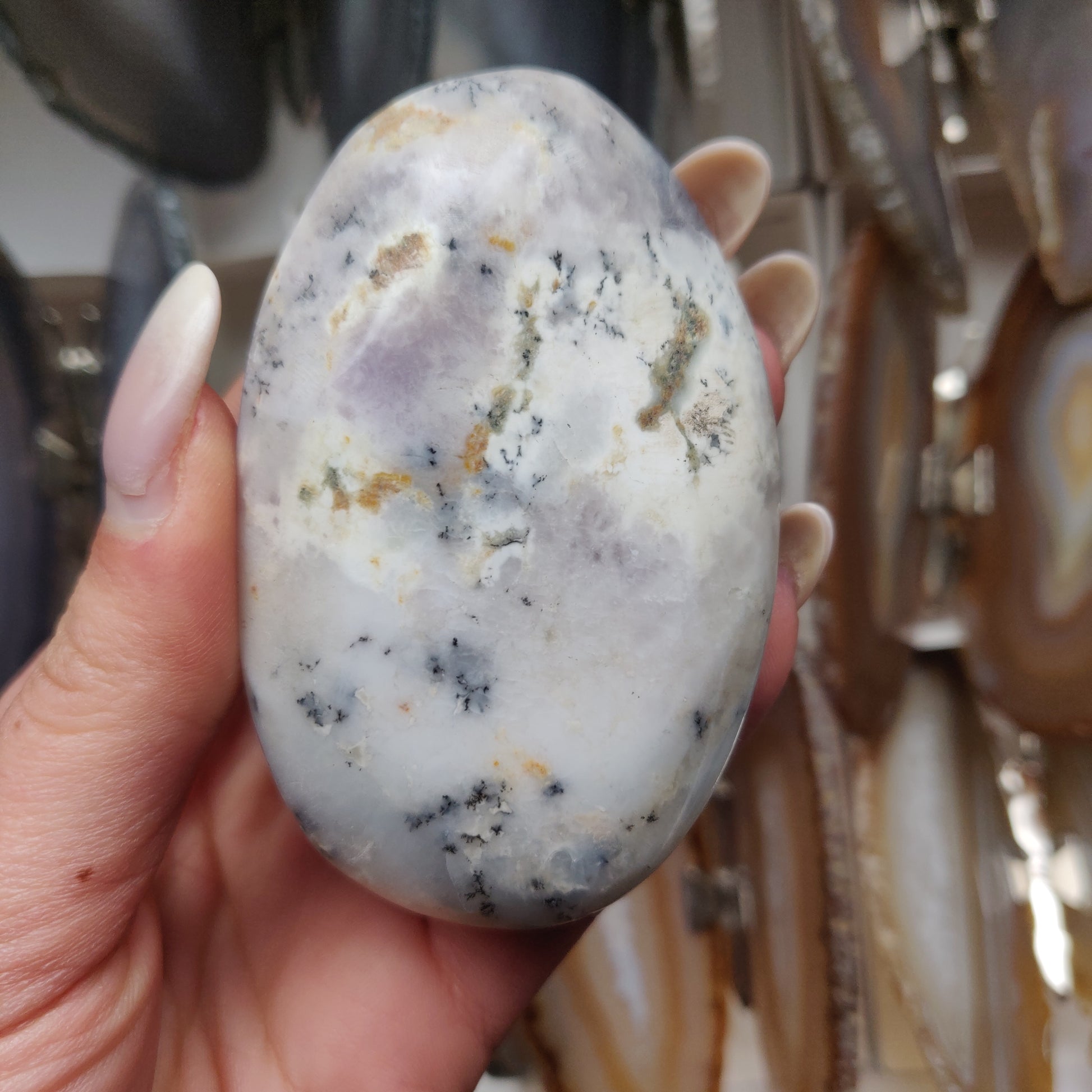 Dendritic Opal is also known as Dendritic Agate. It is the stone of plentitude that brings abundance in all areas of life. It helps to deepen our connection with nature. Dendritic Opal/Agate is a peace-giving stone, and encourages us to enjoy each moment. In trying times of life, Dendritic Opal brings stability, and helps us to remain centered. It allows us to persevere and see difficulties as challenges that can be overcome. It is important to work with Dendritic Opal continually for full metaphysical effects, as it is works slowly and takes time to be fully effective. Some of our beautiful Dendritic Opal has natural purple coloring! Purple is one of the rarest colors to find in nature!