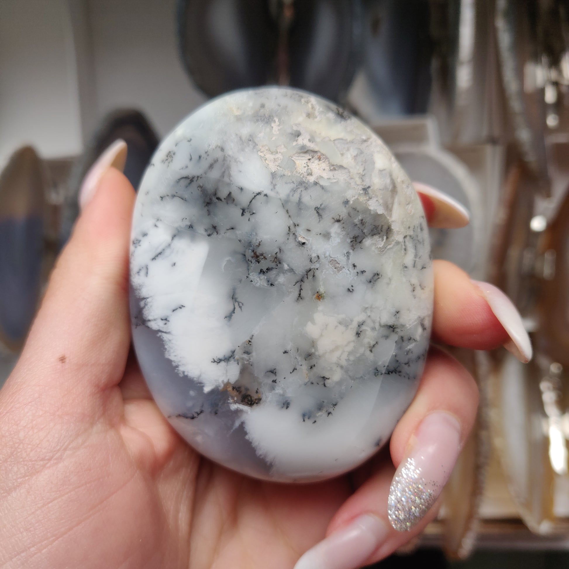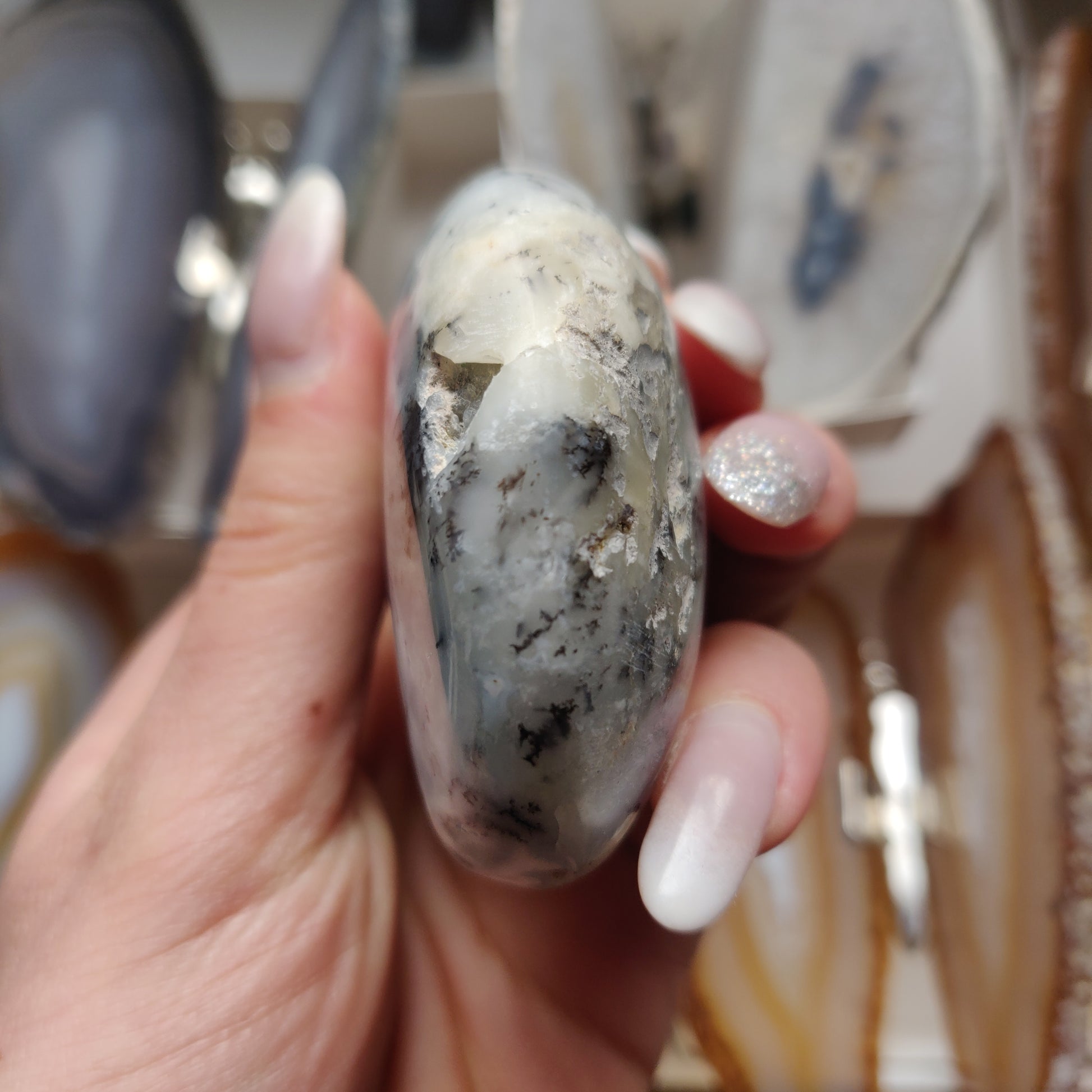 Dendritic Opal is also known as Dendritic Agate. It is the stone of plentitude that brings abundance in all areas of life. It helps to deepen our connection with nature. Dendritic Opal/Agate is a peace-giving stone, and encourages us to enjoy each moment. In trying times of life, Dendritic Opal brings stability, and helps us to remain centered. It allows us to persevere and see difficulties as challenges that can be overcome. It is important to work with Dendritic Opal continually for full metaphysical effects, as it is works slowly and takes time to be fully effective. Some of our beautiful Dendritic Opal has natural purple coloring! Purple is one of the rarest colors to find in nature!