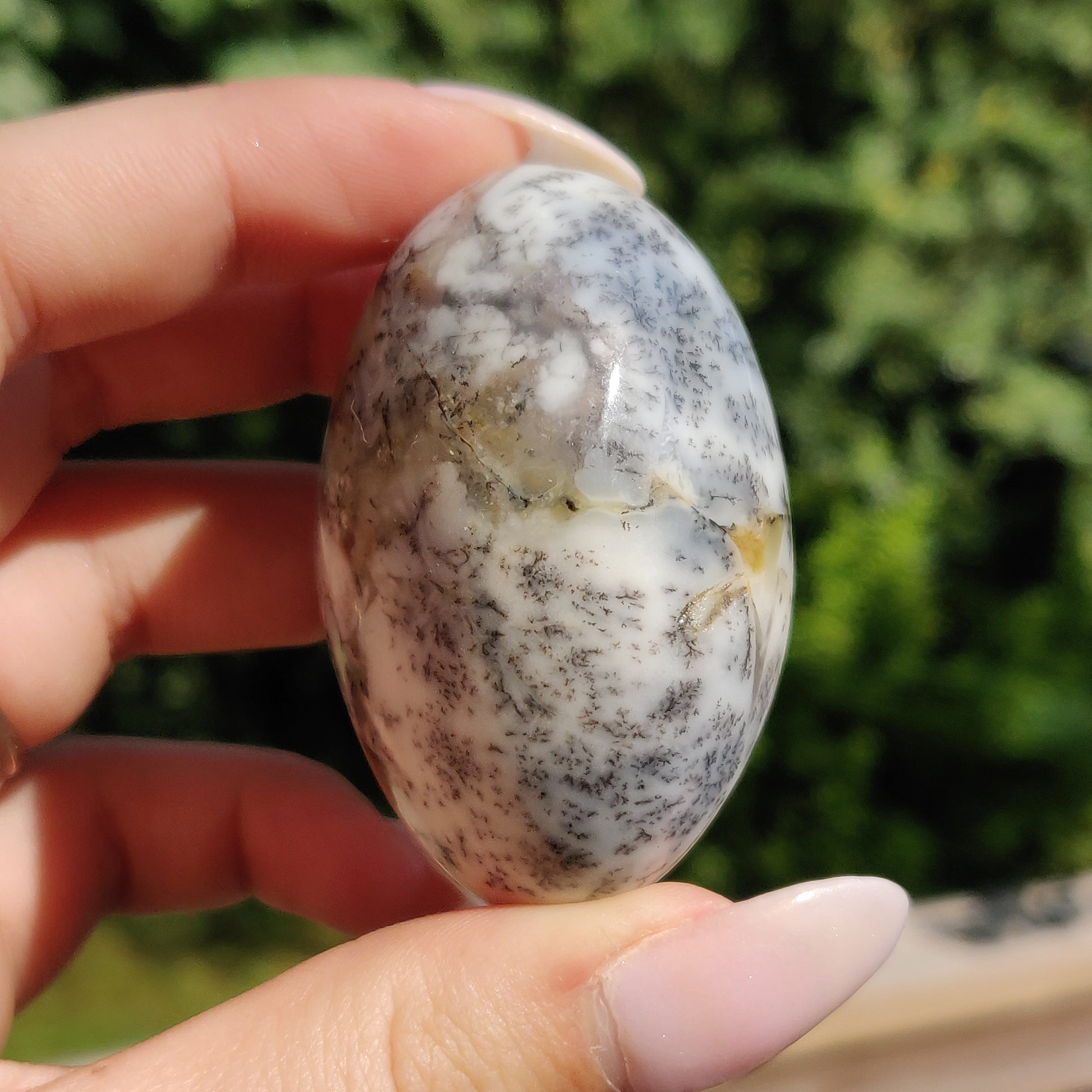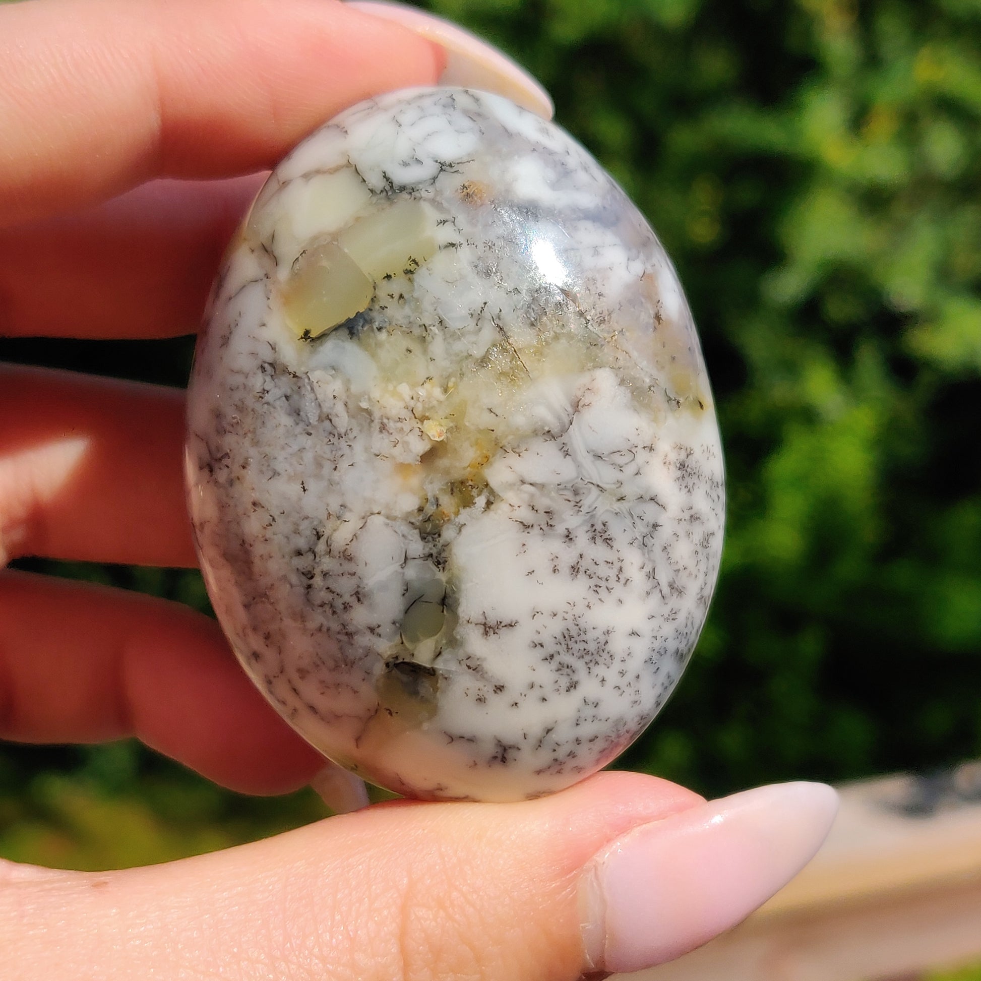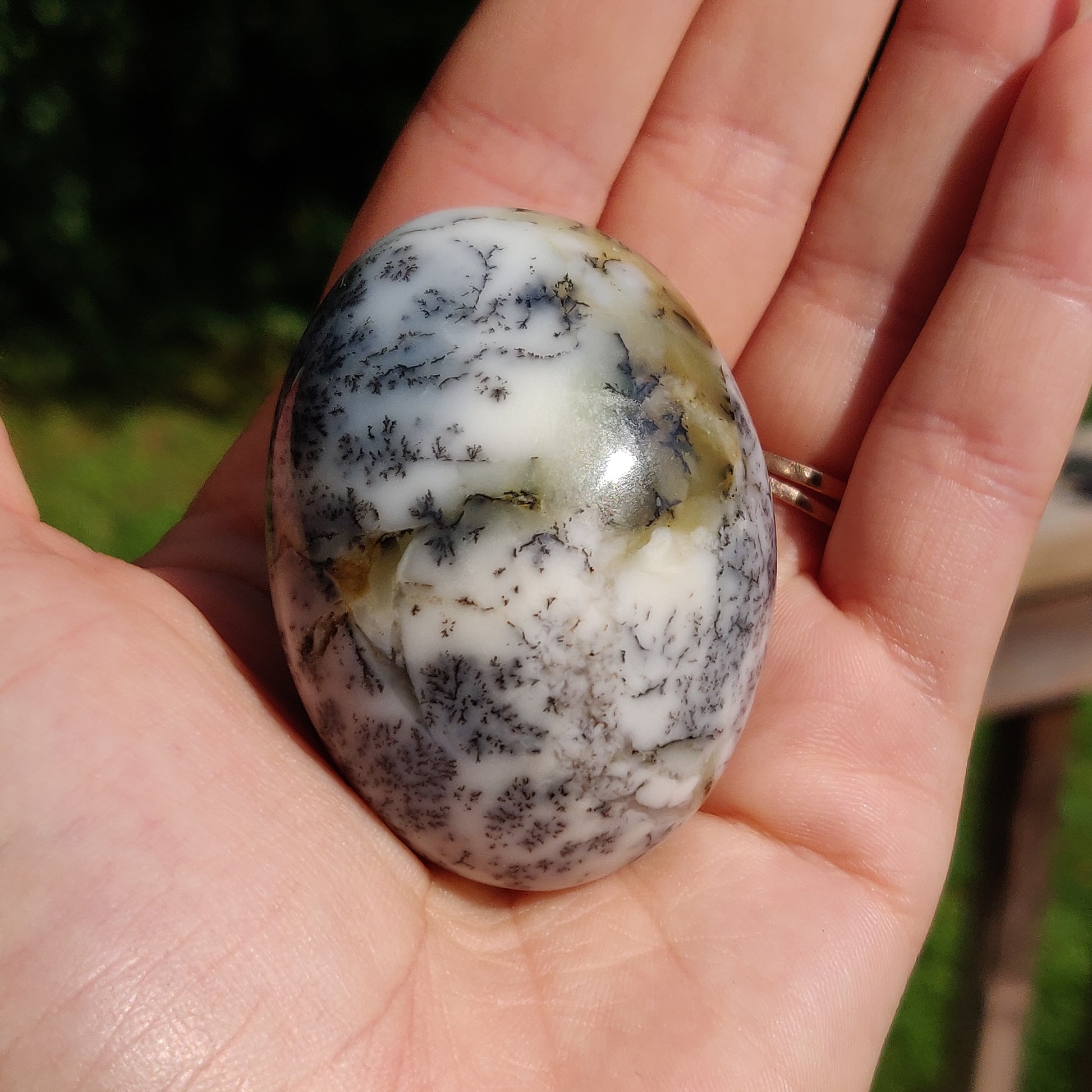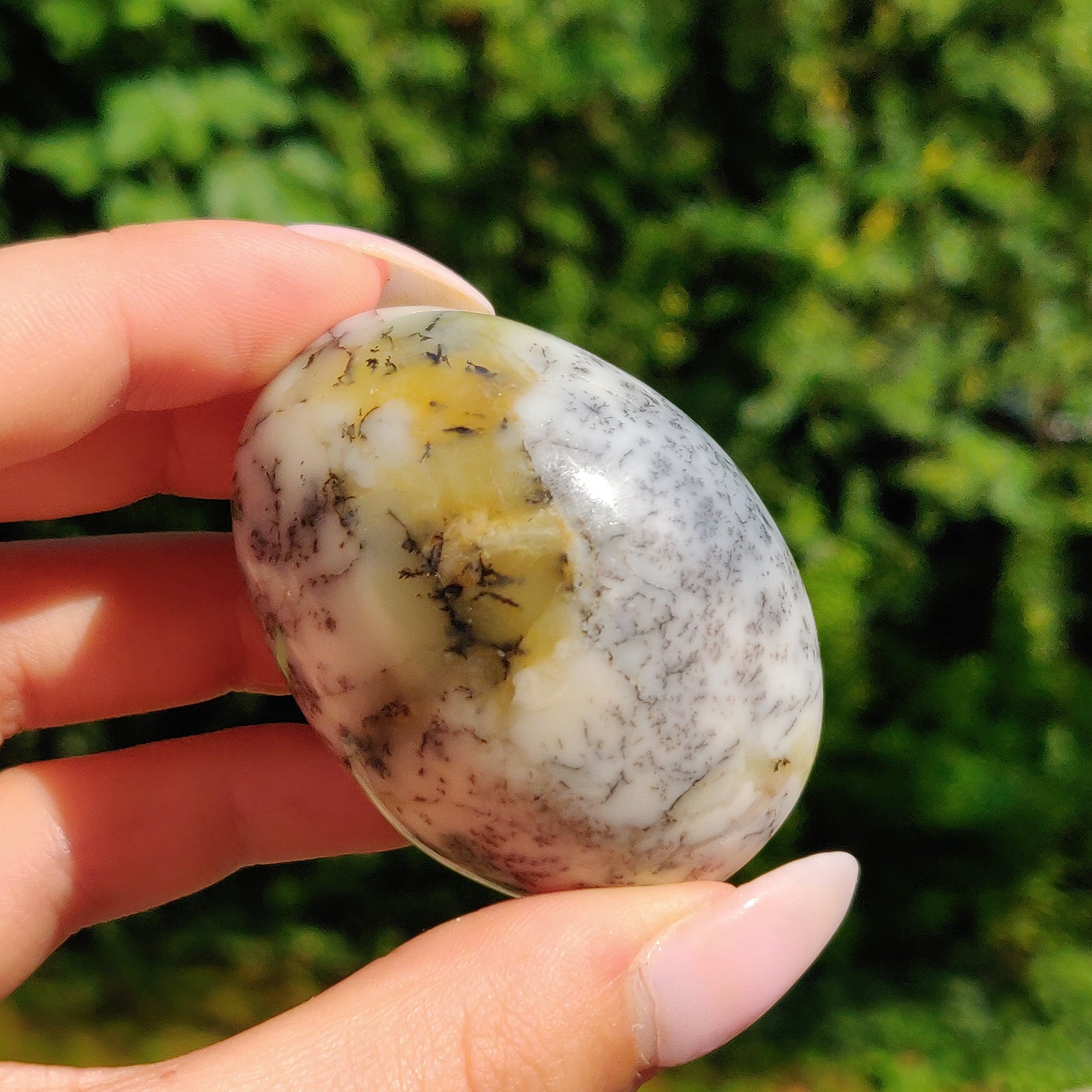 Dendritic Opal is also known as Dendritic Agate. It is the stone of plentitude that brings abundance in all areas of life. It helps to deepen our connection with nature. Dendritic Opal/Agate is a peace-giving stone, and encourages us to enjoy each moment. In trying times of life, Dendritic Opal brings stability, and helps us to remain centered. It allows us to persevere and see difficulties as challenges that can be overcome. It is important to work with Dendritic Opal continually for full metaphysical effects, as it is works slowly and takes time to be fully effective. Some of our beautiful Dendritic Opal has natural purple coloring! Purple is one of the rarest colors to find in nature!