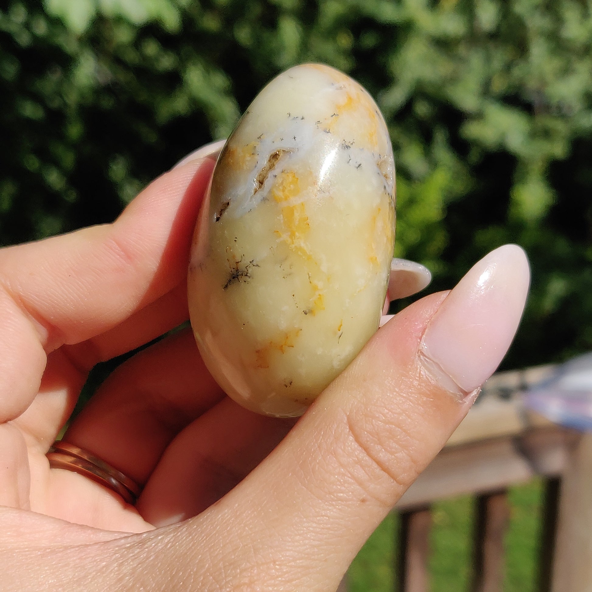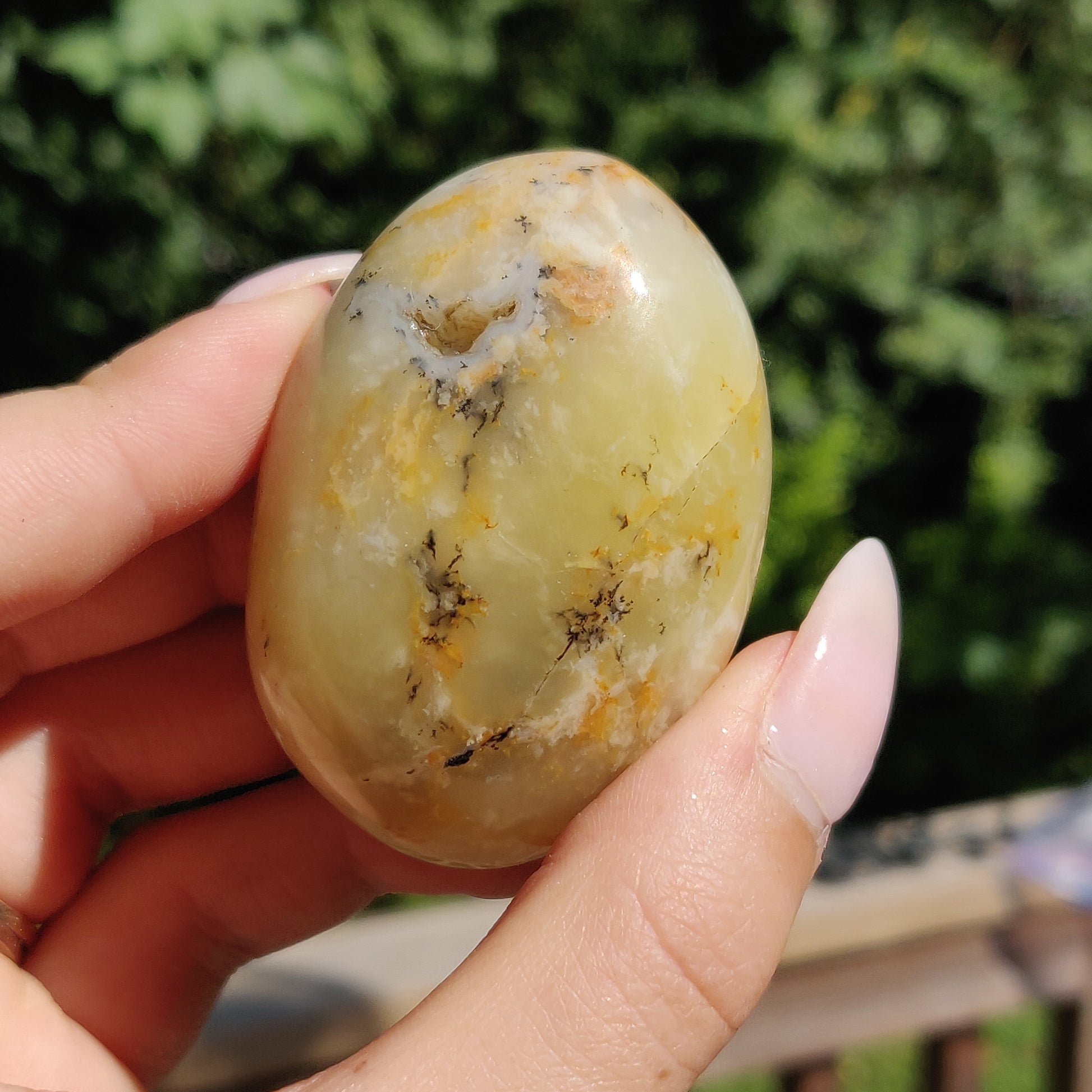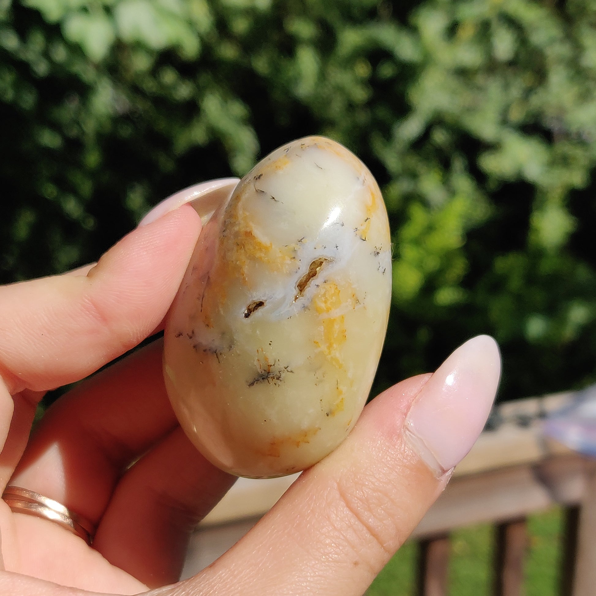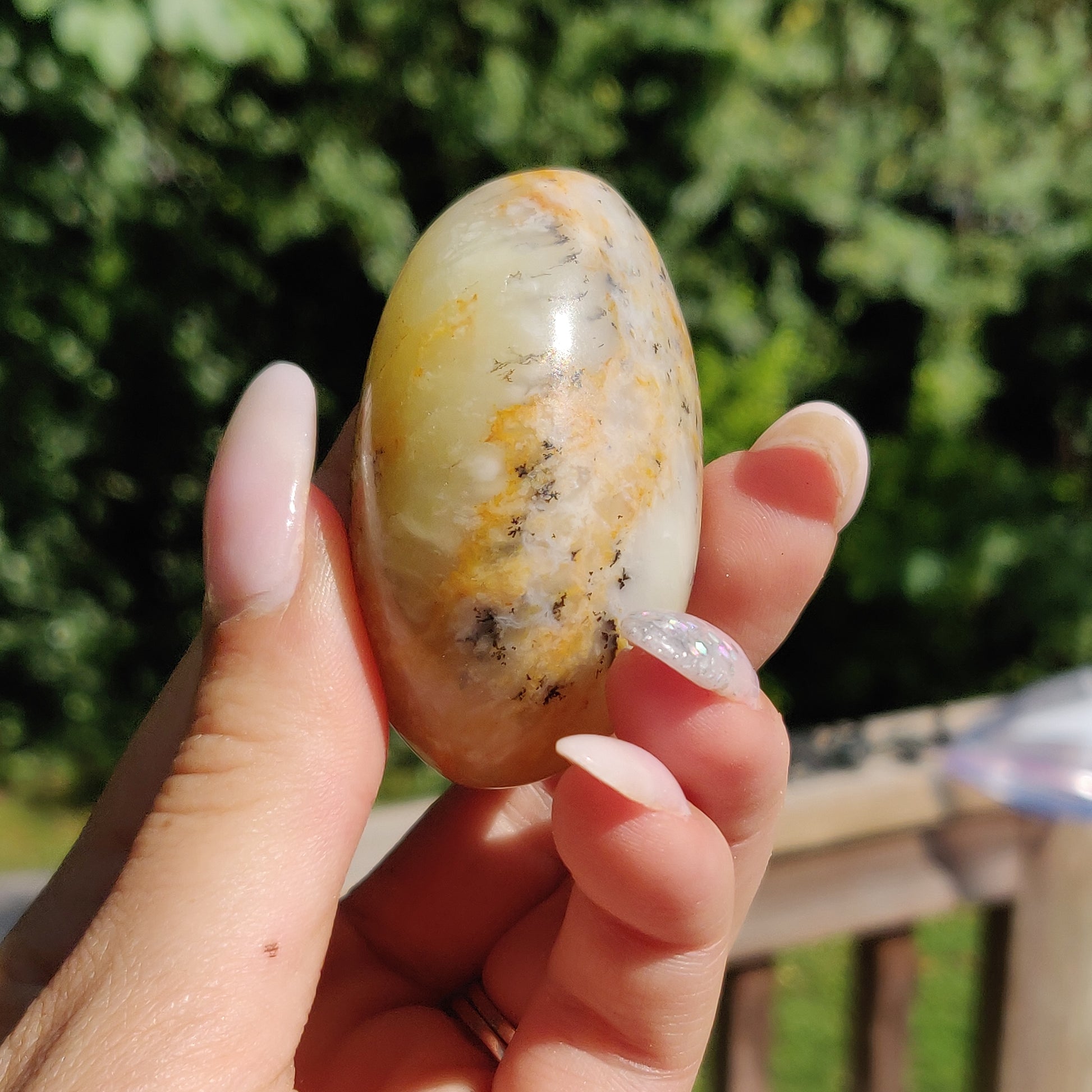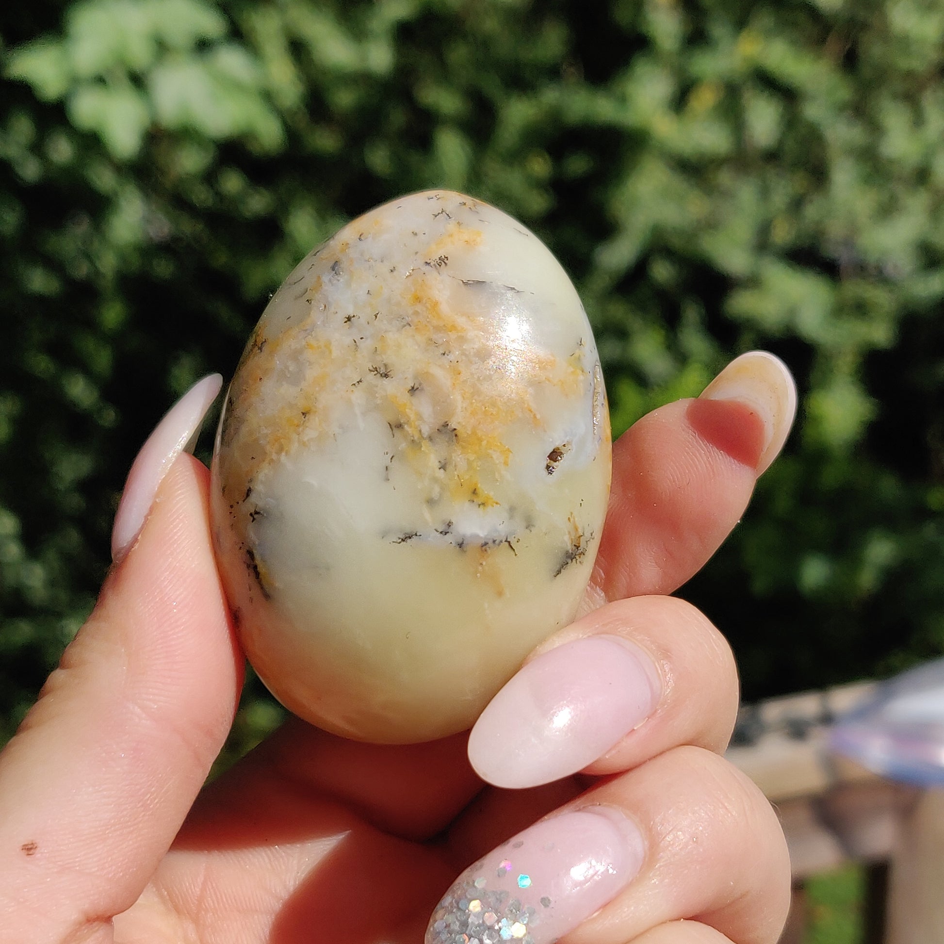 Dendritic Opal is also known as Dendritic Agate. It is the stone of plentitude that brings abundance in all areas of life. It helps to deepen our connection with nature. Dendritic Opal/Agate is a peace-giving stone, and encourages us to enjoy each moment. In trying times of life, Dendritic Opal brings stability, and helps us to remain centered. It allows us to persevere and see difficulties as challenges that can be overcome. It is important to work with Dendritic Opal continually for full metaphysical effects, as it is works slowly and takes time to be fully effective. Some of our beautiful Dendritic Opal has natural purple coloring! Purple is one of the rarest colors to find in nature!