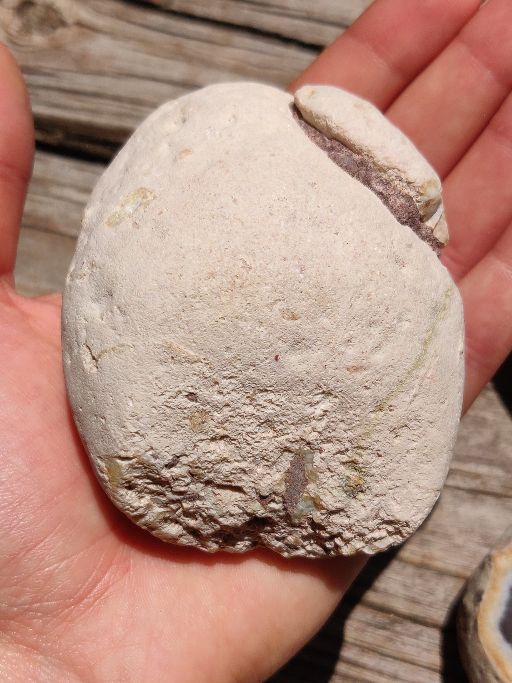 Please note: The chalcedony shell is porous, allowing water to enter and exit the cavity very slowly. Especially if you live in a very dry climate, with low humidity, it is suggested that you keep your Enhydro Agate in water to emulate its conditions when it was underground, constantly surrounded by moisture. Otherwise, your Enhydro agate can dry out.