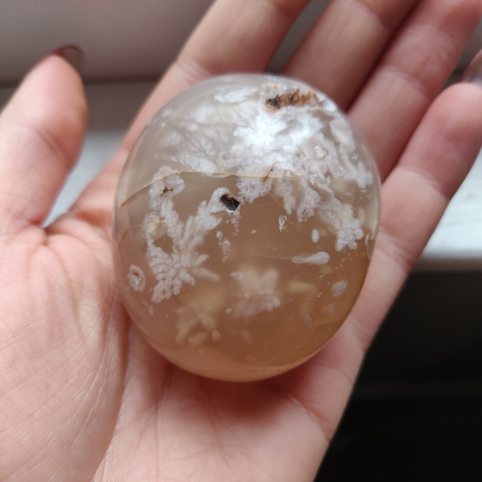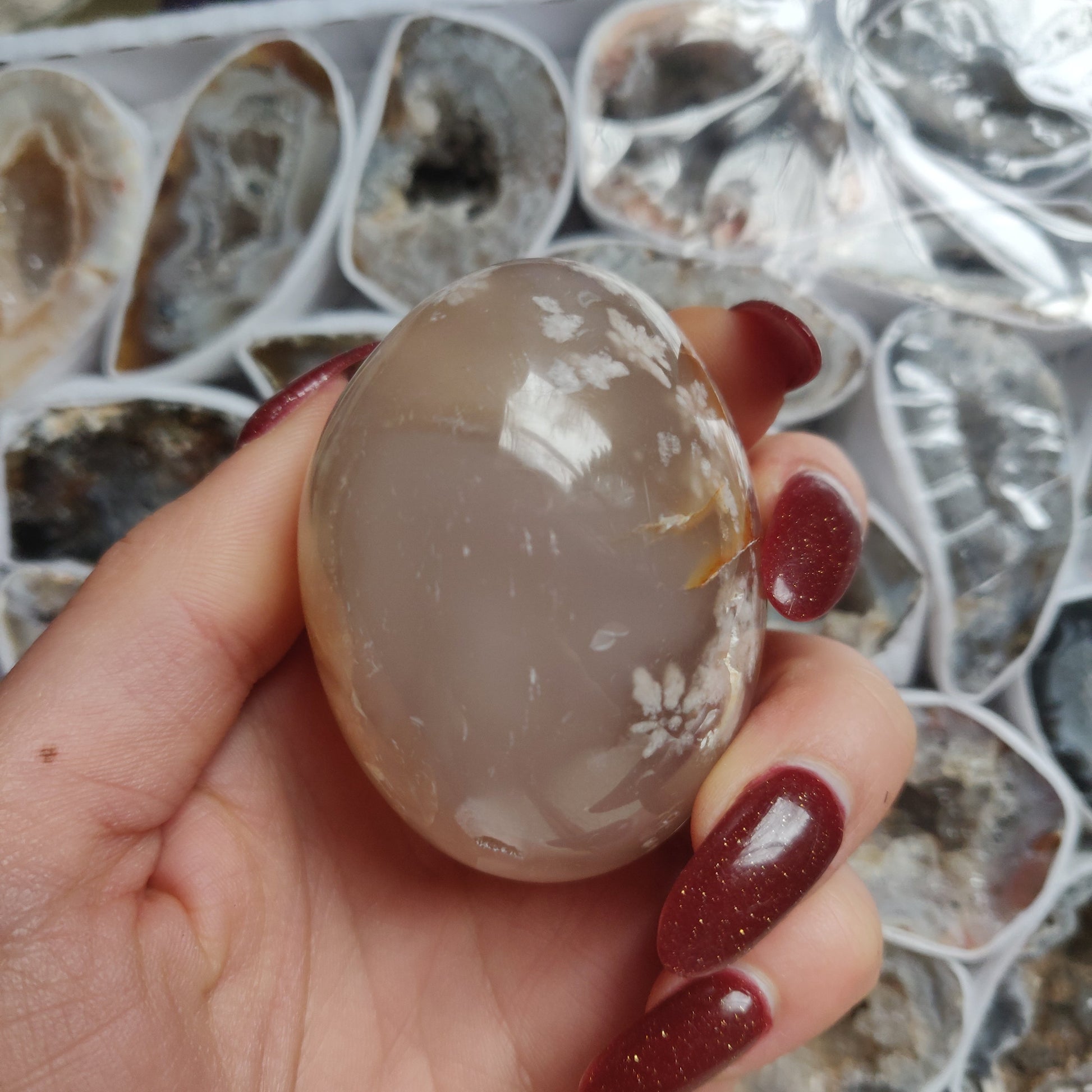 Flower Agate is a fascinating new find from Madagascar. It is a type of plume agate (agate with plume-like inclusions). However, instead of 2-dimensional plumes, as found in other types of plume agates (such as dendritic agate), Flower Agate plumes are more 3-dimensional, and their cross-sections create gorgeous flower-like plumes. Flower Agate has many amazing metaphysical properties that encourage self-growth. The best analogy to describe the energy flowing from Flower Agate is “from seed to blossom”, because Flower Agate will help you to blossom and reach your full potential. It can aid as a protector from your own fears & self-doubt to allow you to grow. For More Info about Flower Agate's Metaphysical Properties see our Blog Post