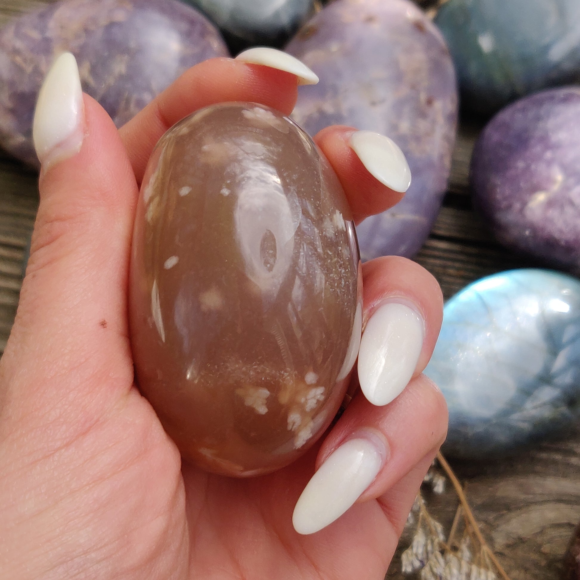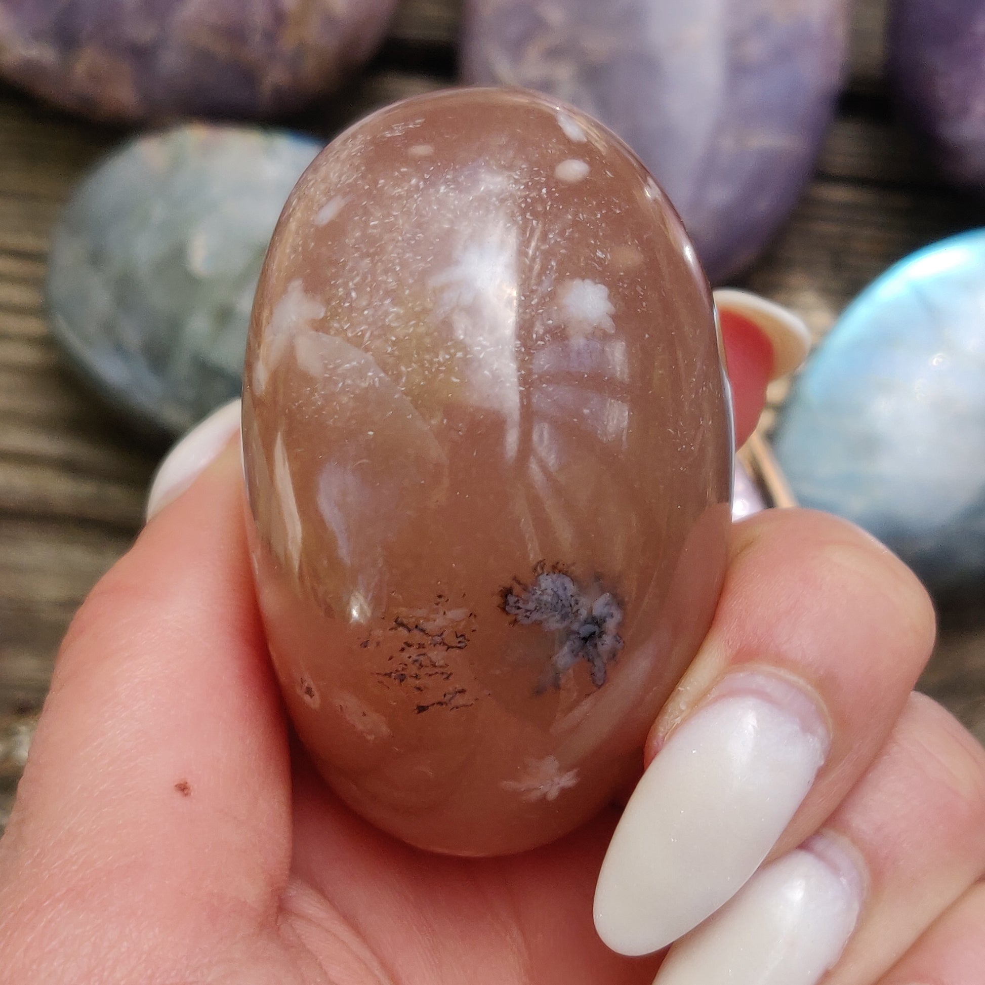 Flower Agate is a fascinating new find from Madagascar. It is a type of plume agate (agate with plume-like inclusions). However, instead of 2-dimensional plumes, as found in other types of plume agates (such as dendritic agate), Flower Agate plumes are more 3-dimensional, and their cross-sections create gorgeous flower-like plumes. Flower Agate has many amazing metaphysical properties that encourage self-growth. The best analogy to describe the energy flowing from Flower Agate is “from seed to blossom”, because Flower Agate will help you to blossom and reach your full potential. It can aid as a protector from your own fears & self-doubt to allow you to grow. For More Info about Flower Agate's Metaphysical Properties see our Blog Post
