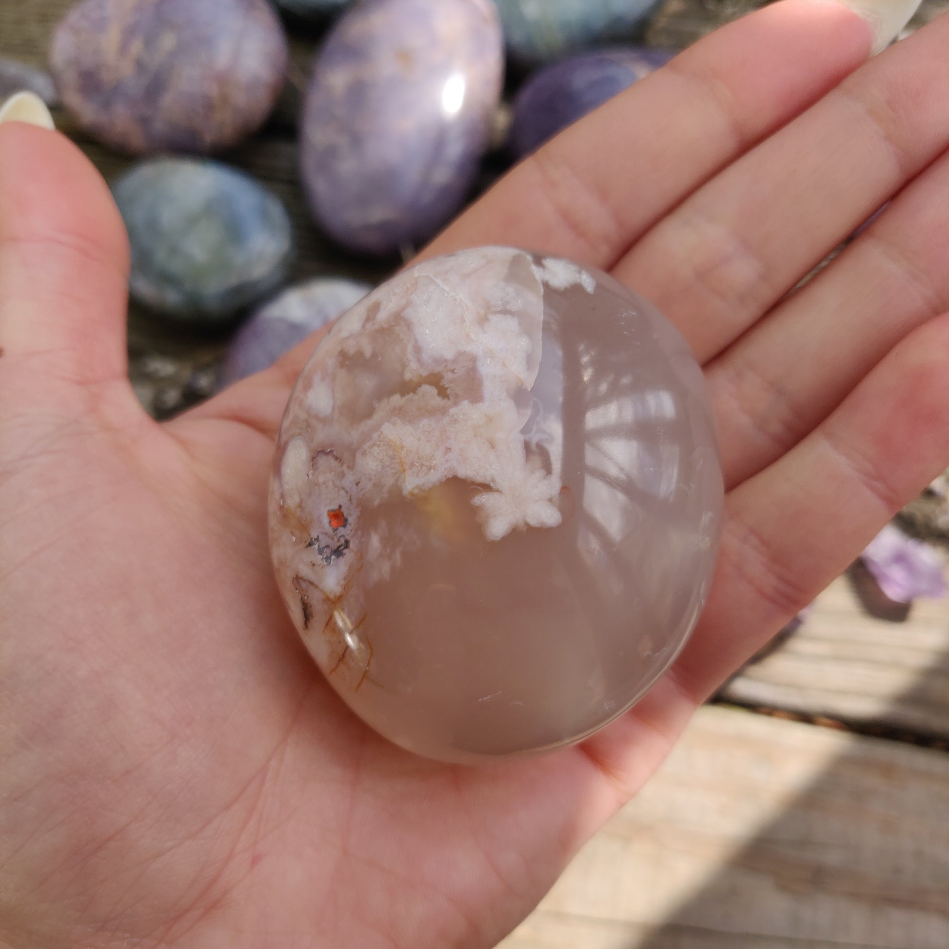 Flower Agate is a fascinating new find from Madagascar. It is a type of plume agate (agate with plume-like inclusions). However, instead of 2-dimensional plumes, as found in other types of plume agates (such as dendritic agate), Flower Agate plumes are more 3-dimensional, and their cross-sections create gorgeous flower-like plumes. Flower Agate has many amazing metaphysical properties that encourage self-growth. The best analogy to describe the energy flowing from Flower Agate is “from seed to blossom”, because Flower Agate will help you to blossom and reach your full potential. It can aid as a protector from your own fears & self-doubt to allow you to grow. For More Info about Flower Agate's Metaphysical Properties see our Blog Post