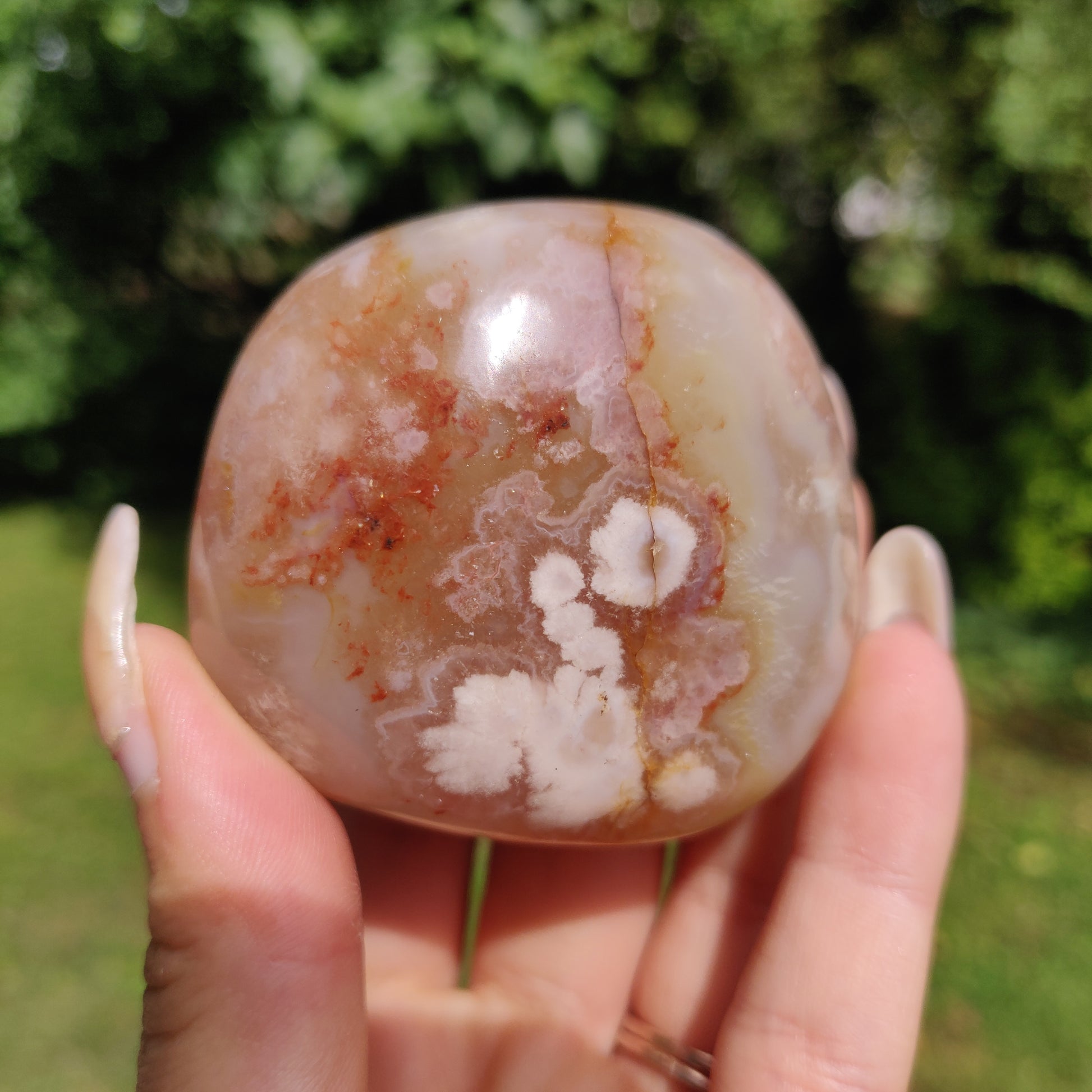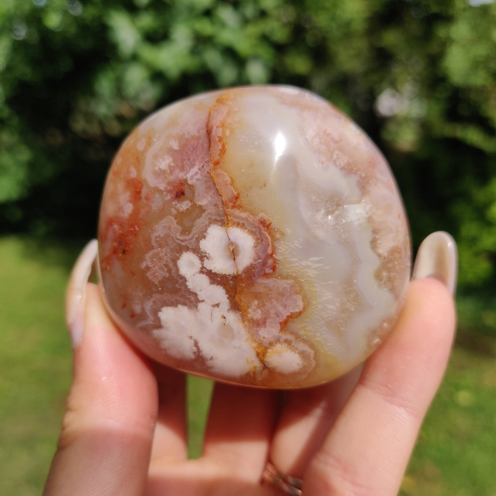 Flower Agate is a fascinating new find from Madagascar. It is a type of plume agate (agate with plume-like inclusions). However, instead of 2-dimensional plumes, as found in other types of plume agates (such as dendritic agate), Flower Agate plumes are more 3-dimensional, and their cross-sections create gorgeous flower-like plumes. Flower Agate has many amazing metaphysical properties that encourage self-growth. The best analogy to describe the energy flowing from Flower Agate is “from seed to blossom”, because Flower Agate will help you to blossom and reach your full potential. It can aid as a protector from your own fears & self-doubt to allow you to grow. For More Info about Flower Agate's Metaphysical Properties see our Blog Post