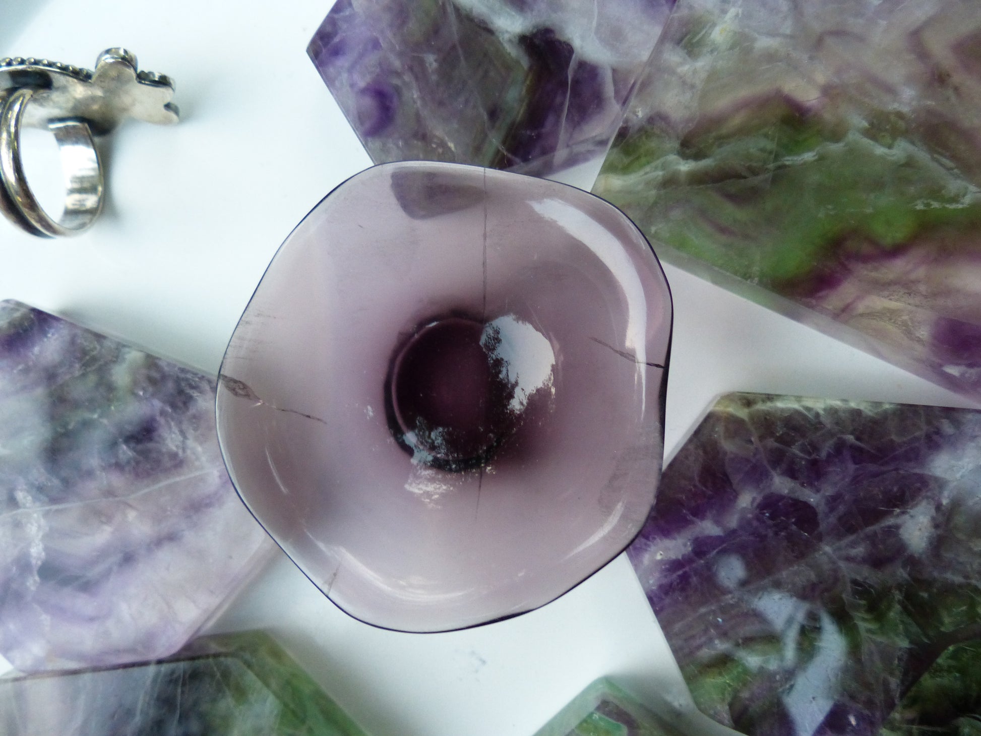 This beautiful purple fluorite bowl makes a lovely ring dish.
