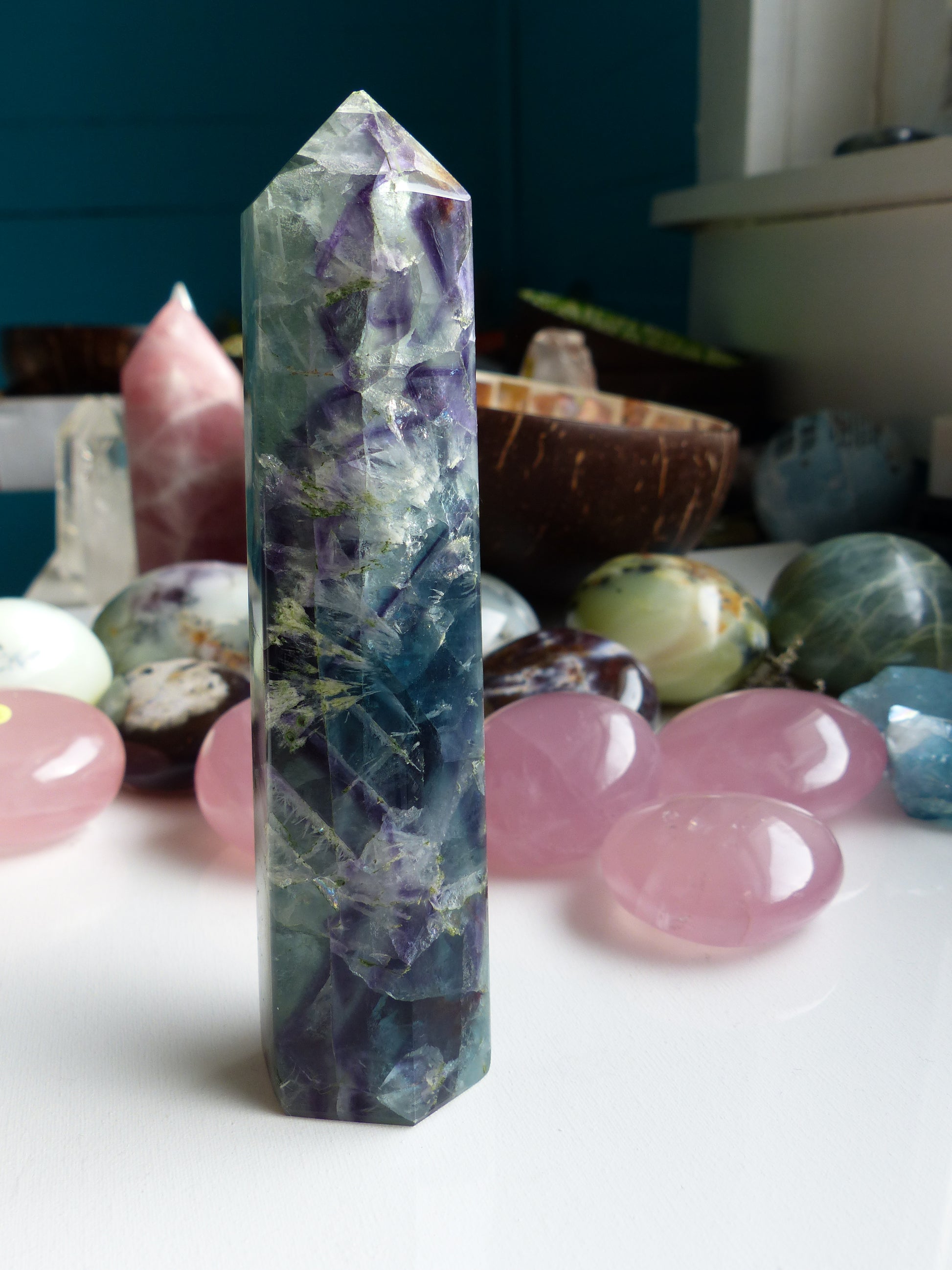 Each color of fluorite has different properties and a multicolor piece brings out all of those qualities at once.