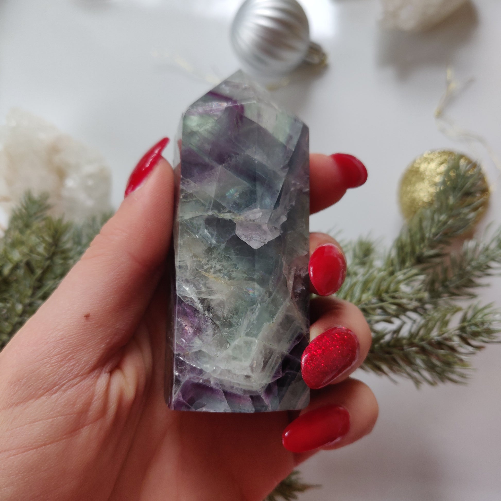 Each color of fluorite has different properties and a multicolor piece brings out all of those qualities at once.
