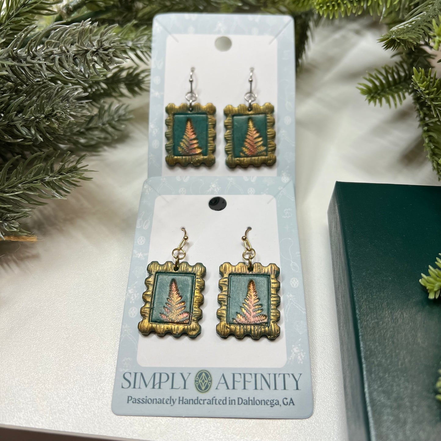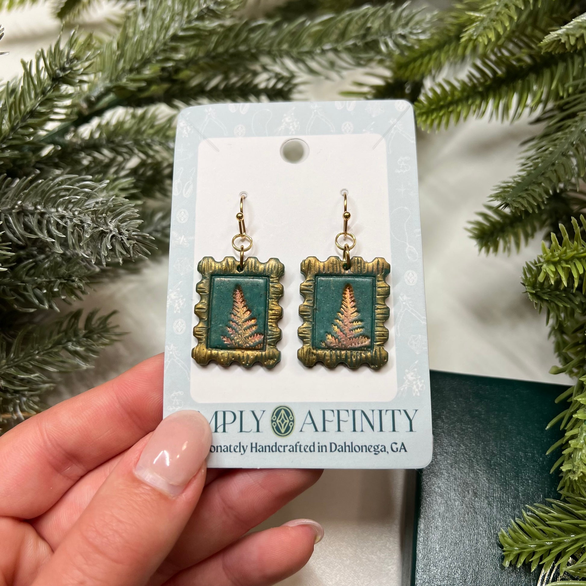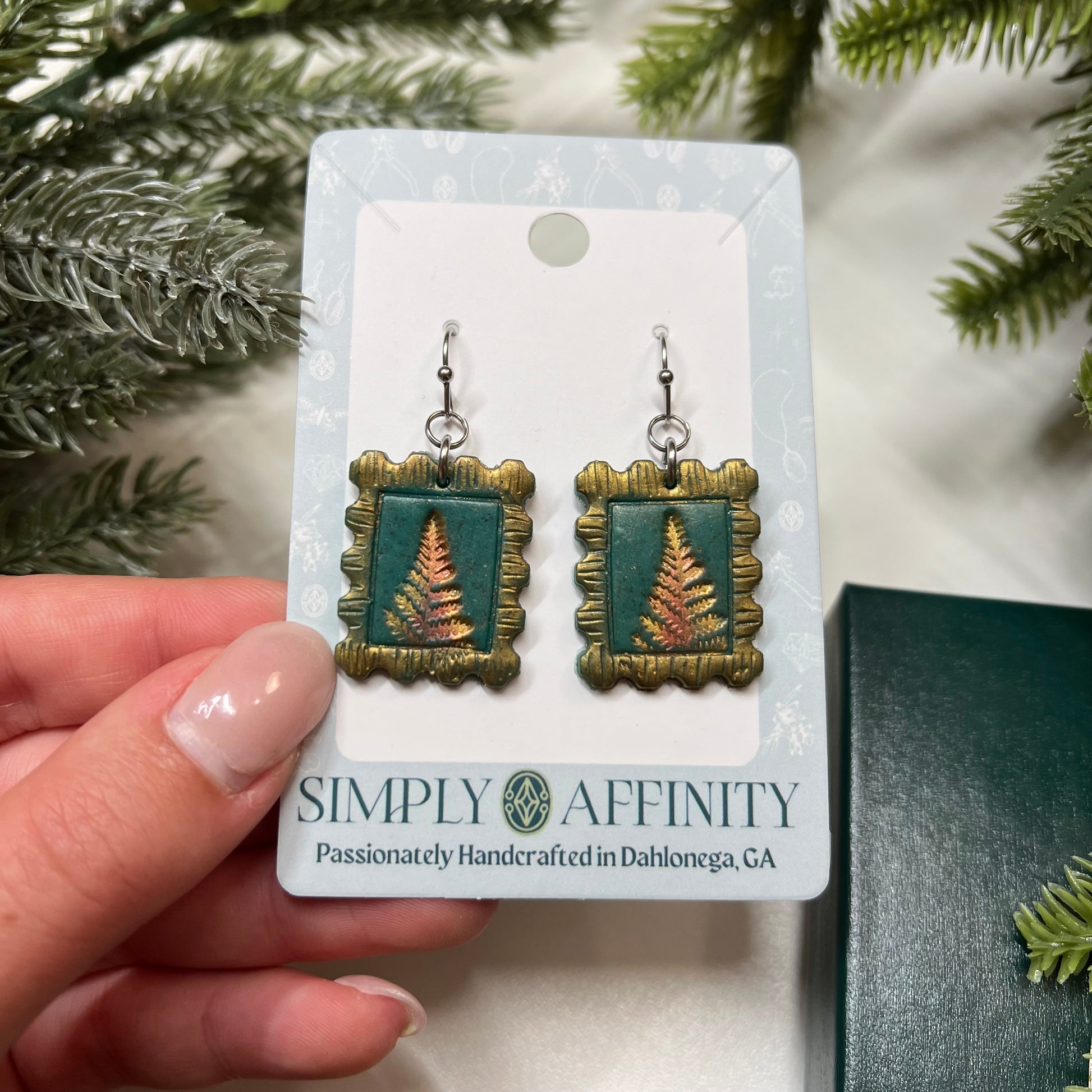 I sculpted these earrings from polymer clay, so they are super lightweight. I was inspired by a magical spruce forest hike that I took in West Virginia. The forest floor was filled with moss and amazing ferns. I created a fossil-like impression in stone colored clay, and accented it with gold and copper mica powder. These sweet earrings are on gold plated stainless steel or stainless steel earring wires. You can pick gold or silver ear wires on the dropdown menu.