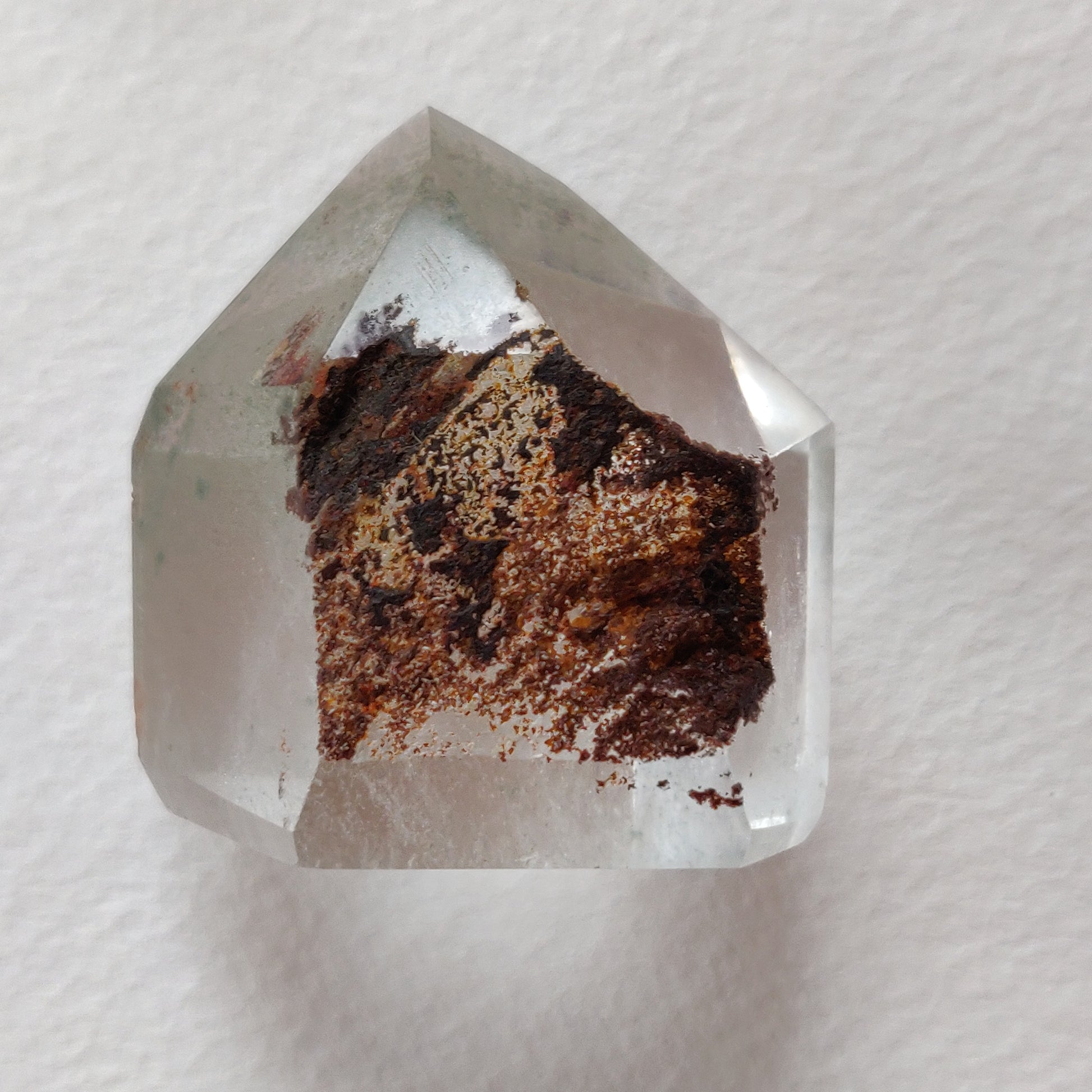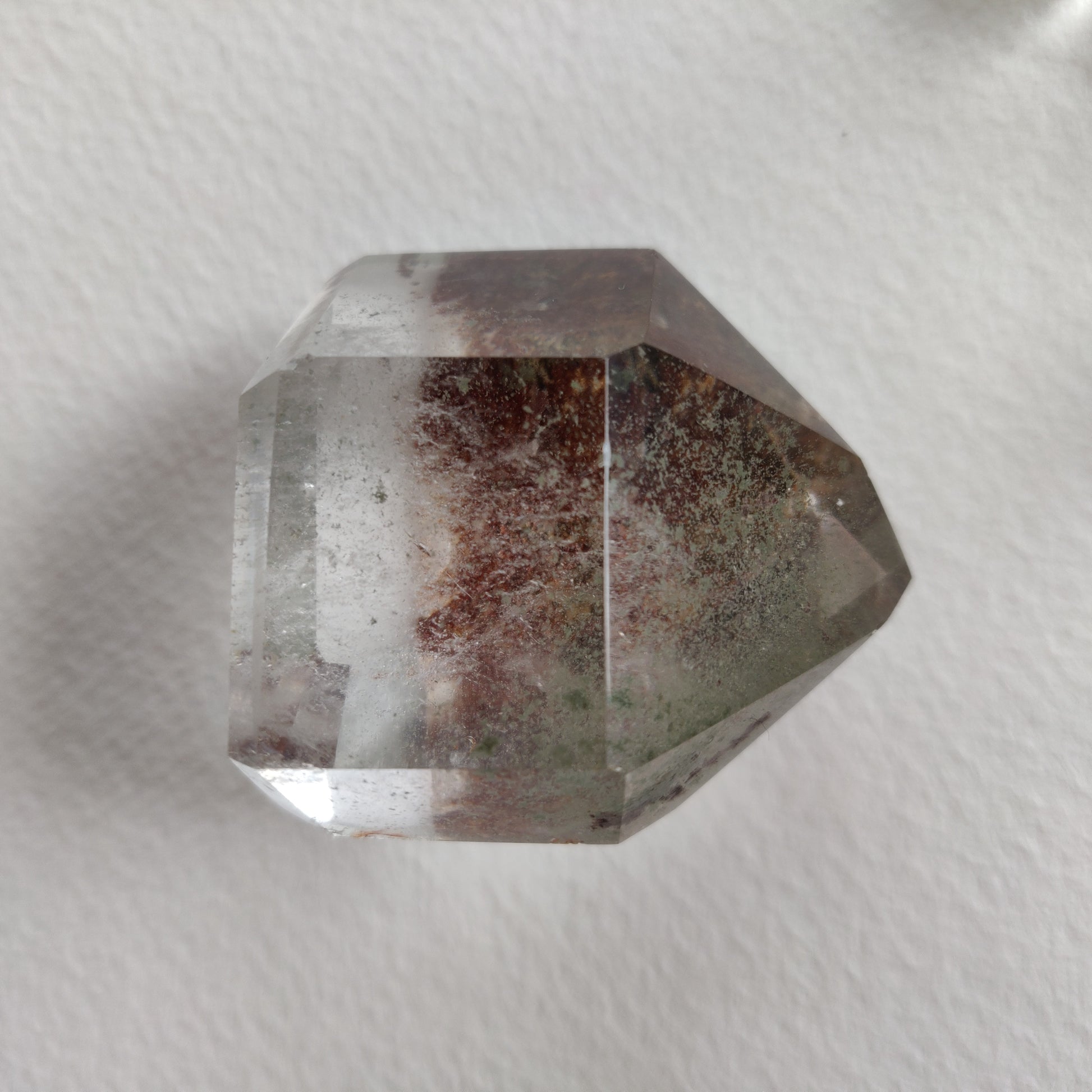 This amazing lodolite quartz point has beautiful green chlorite inclusions making a beautiful scene inside of the stone. Lodolite is a type of included quartz crystal with inclusions of many possible colors and types, often having the look of gardens, landscapes, or underwater scenes. Thus, lodolite is often called garden quartz, landscape quartz, or scenic quartz. Lodolite is said to bring loving energies and energies of gentle strength. In crystal healing, lodolite is said to be an excellent healing stone bringing strong healing energies and energetic shifting so that healing will occur.