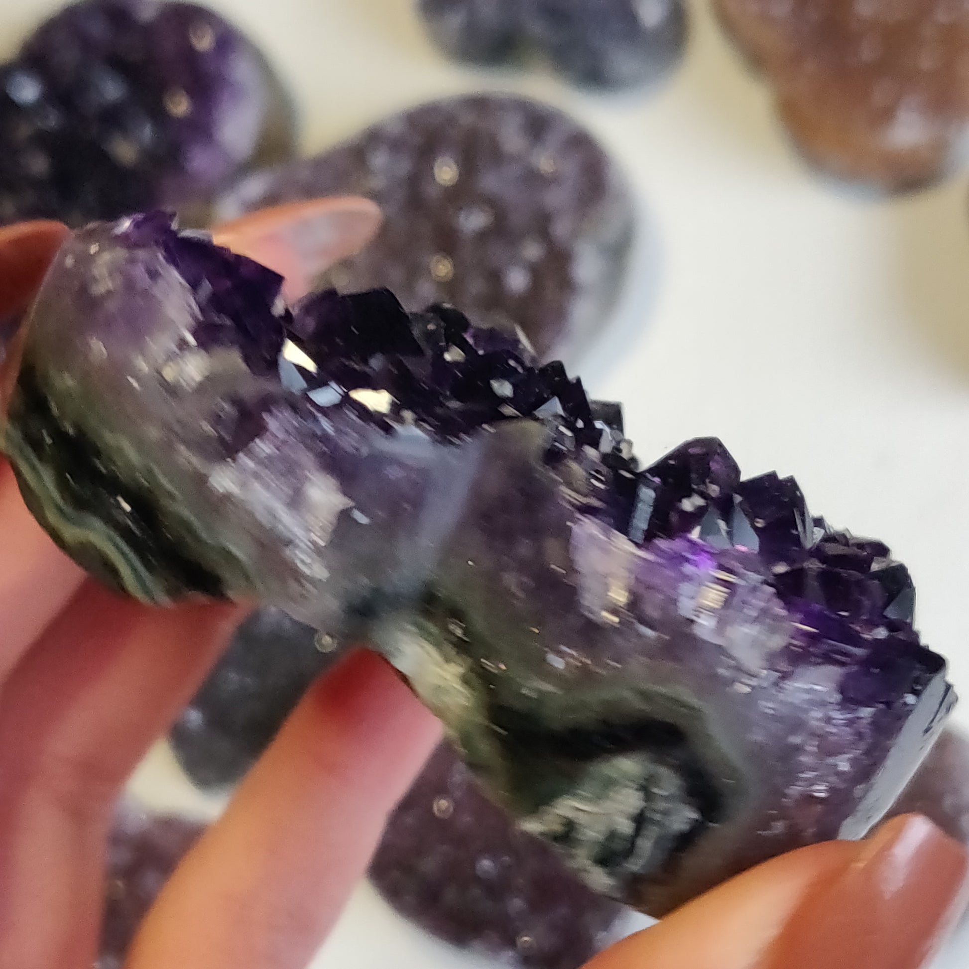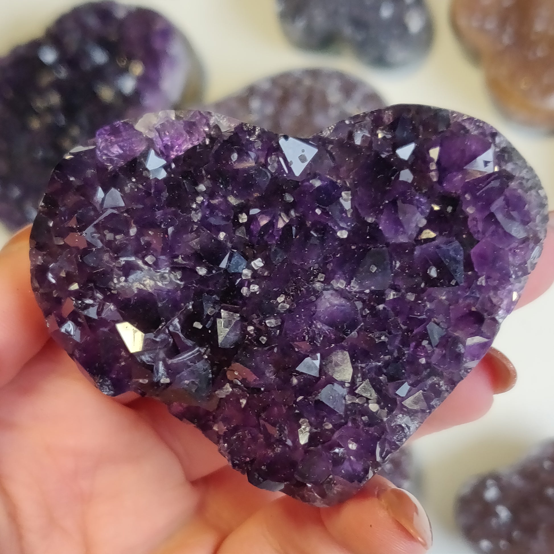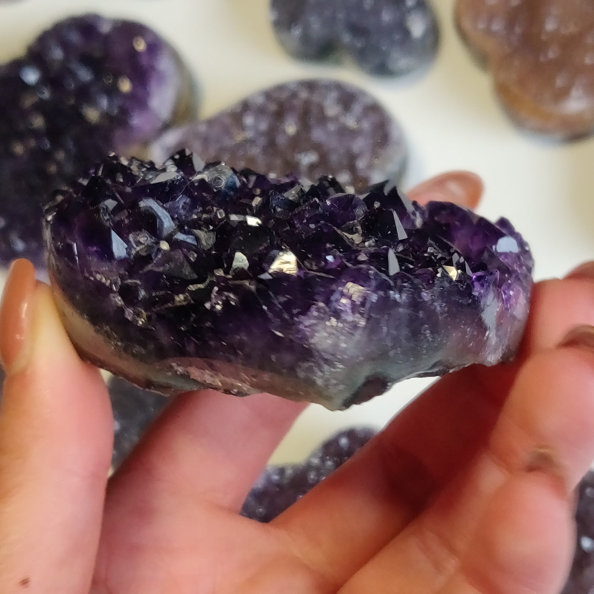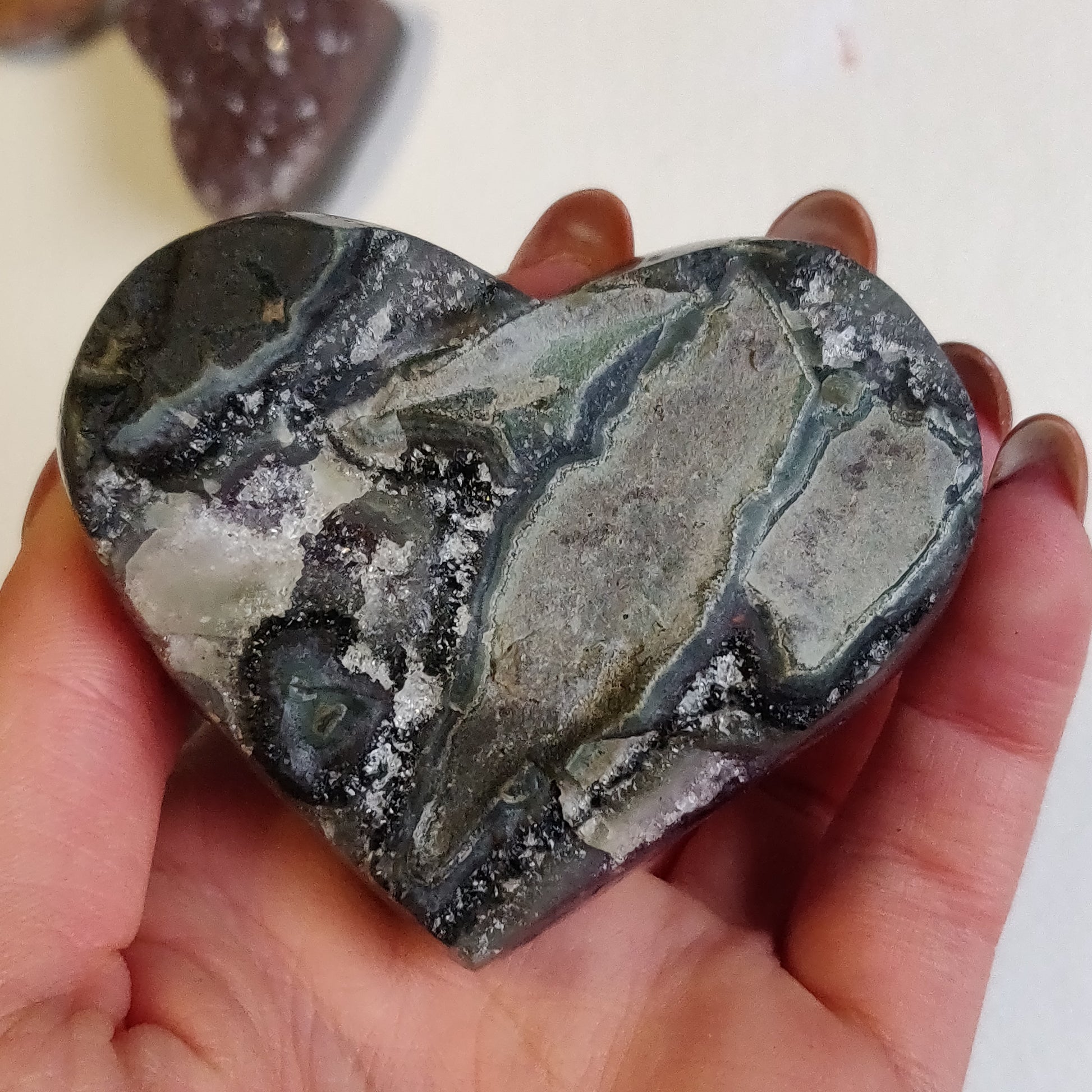 Grape Jelly Amethyst Geode Heart with Calcite (#G7)