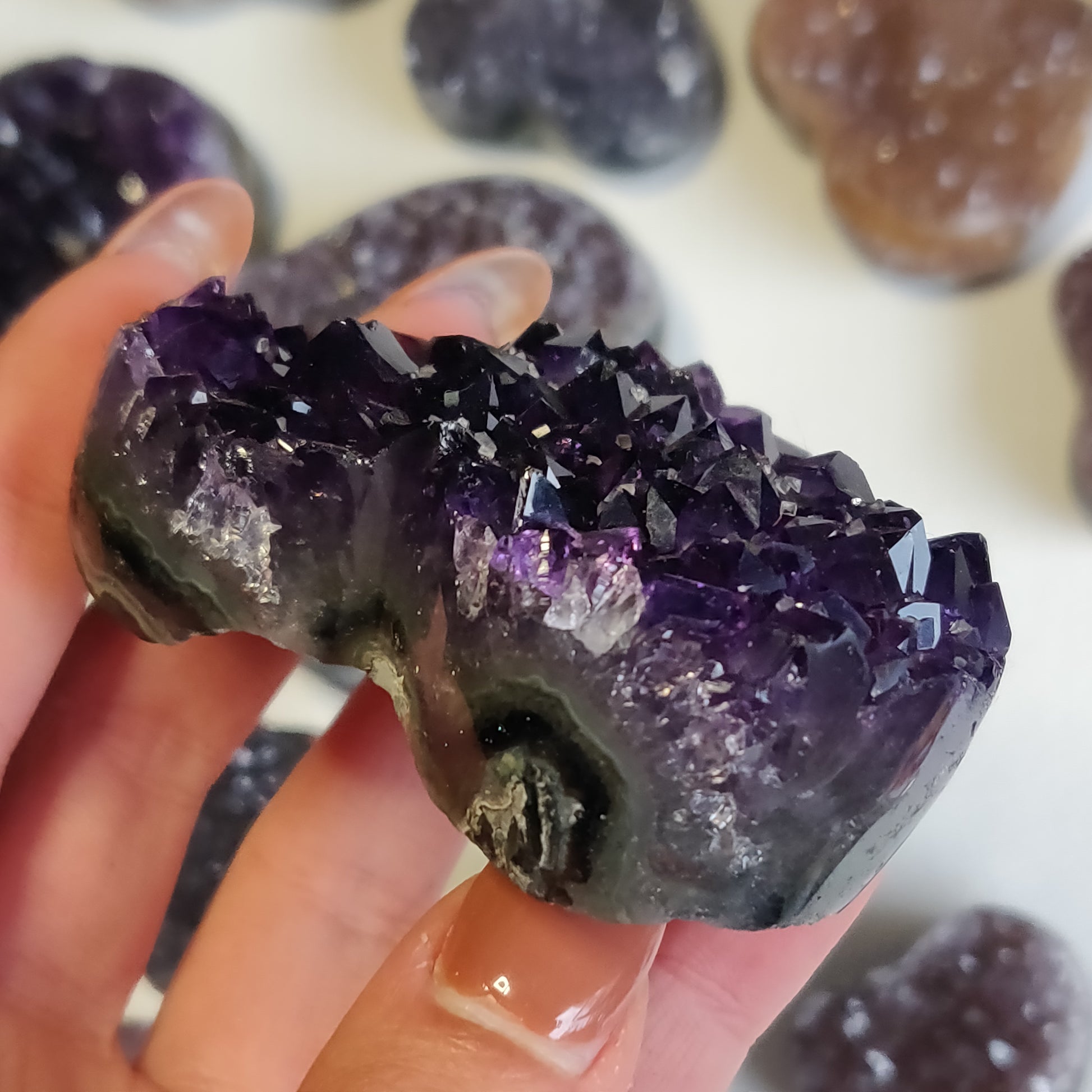 Amethyst evokes passion and imagination, emotion and logic. It stimulates creativity and is particularly helpful in artistic endeavors. Amethyst is the traditional birthstone of those born in February, and is associated with the sign of Pisces.