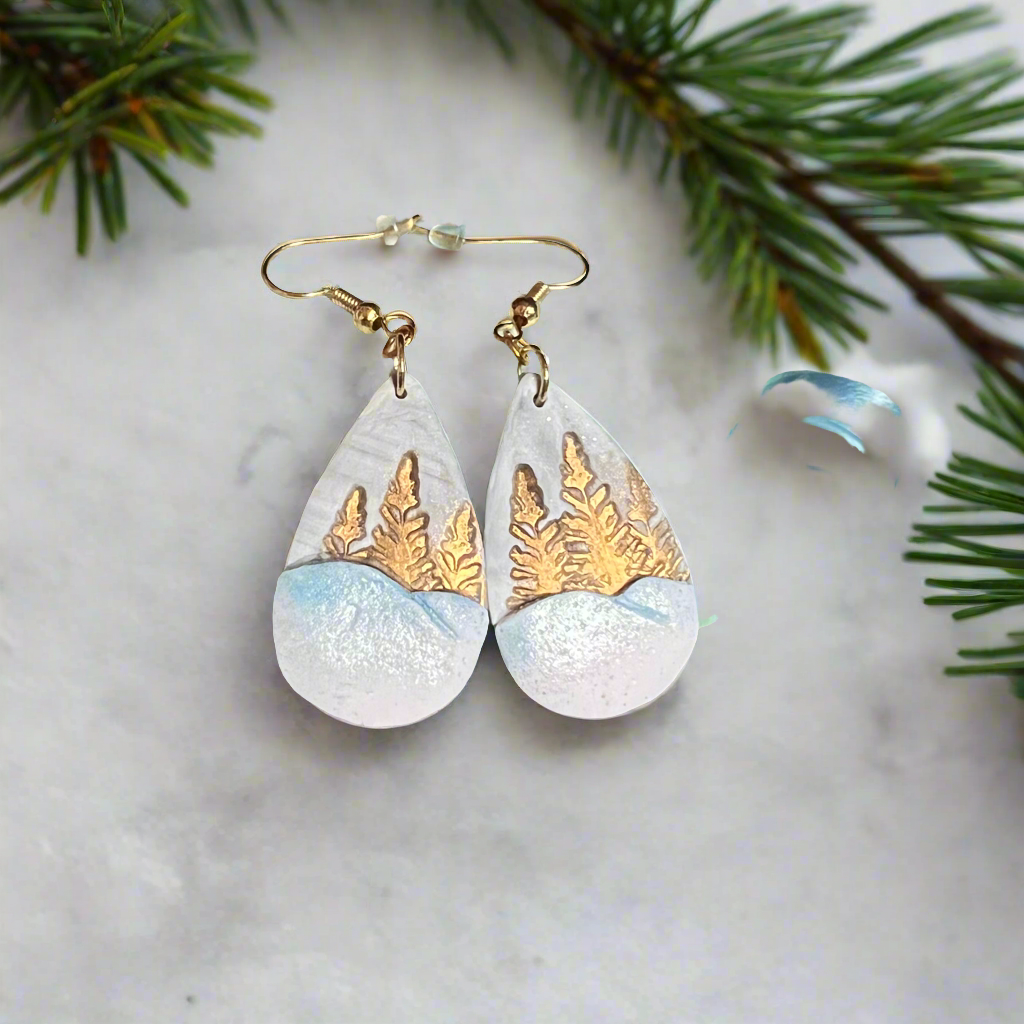 I sculpted these earrings from polymer clay, so they are super lightweight. They are about 2.125” long with the earring wires included in the length. The findings on these pieces are made out of gold plated brass.