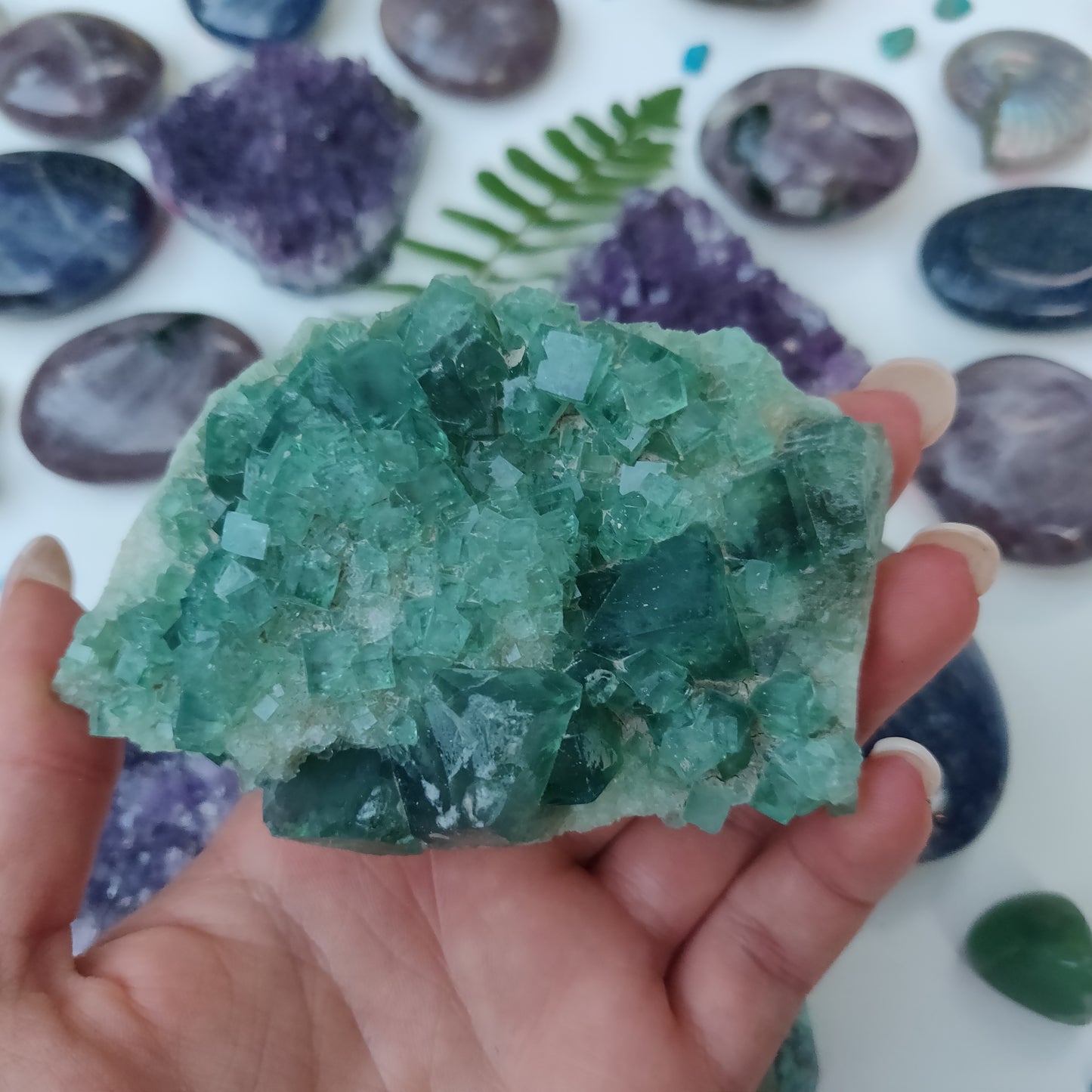 Fluorite is a very protective stone that draws off negative energies and stresses of all kinds. It is a stone of progress, and helps us to create structure and organization within our lives. It teaches the importance of balance, and aids in reorganization. This stone dissolves illusions, and illuminates the truth. Meanwhile, Fluorite helps us to see the bigger picture and different perspectives. It is a wonderful stone to promote objective and impartial action, while heightening our intuition.