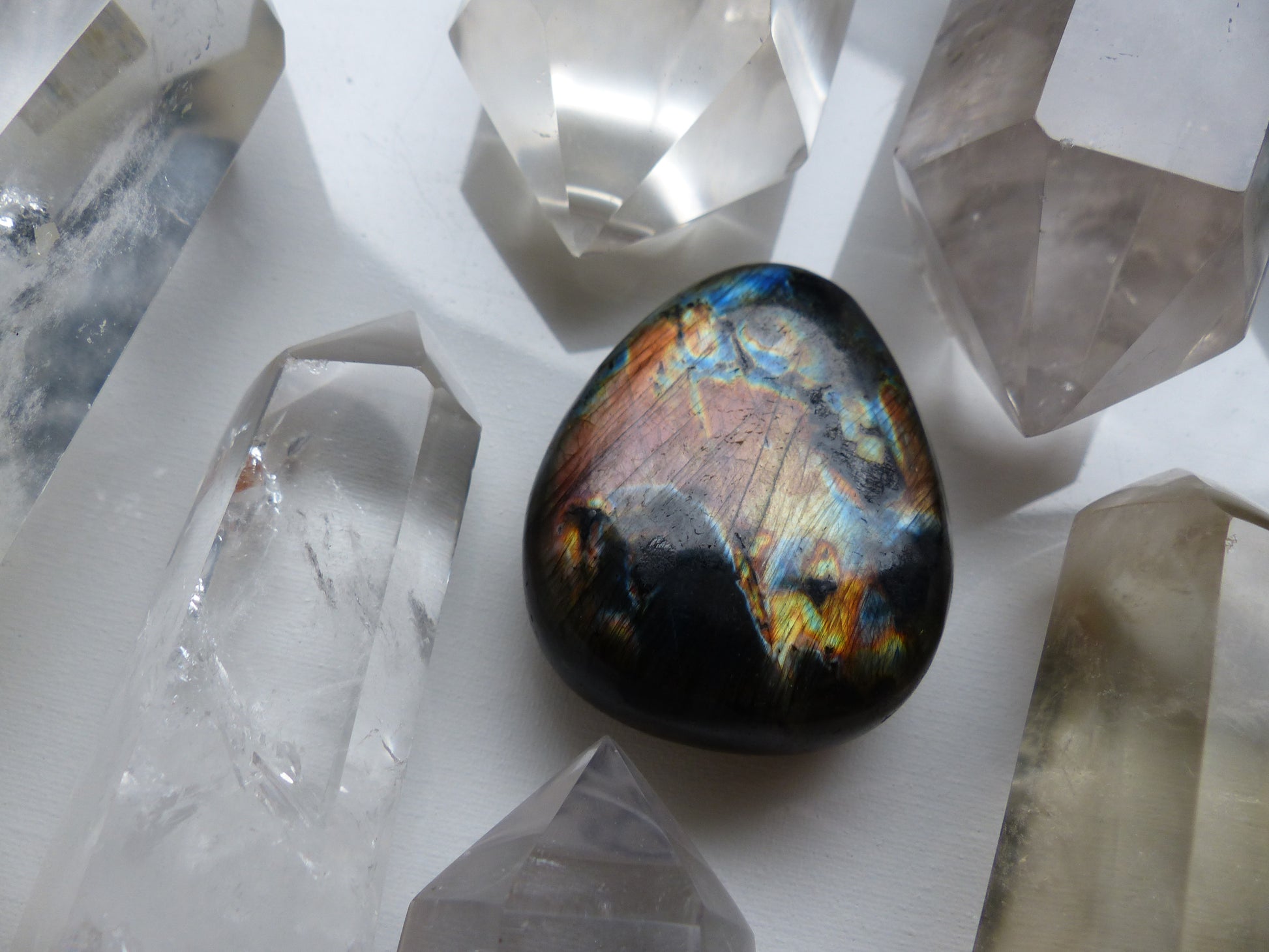 Inuit folklore says that labradorite fell from the "frozen fire" of the aurora borealis (the northern lights) causing an ordinary stone to become extraordinary. Labradorite is known as a stone that aids in times of transition and change. It is said to weaken the negative side of our personality and strengthen the positive. Each and every piece is truly magical and I feel so honored to get to share all of this beauty with you! ♡ To read more about this amazing stone visit this site: http://www.crystalvaults.com/crystal-encyclopedia/labradorite