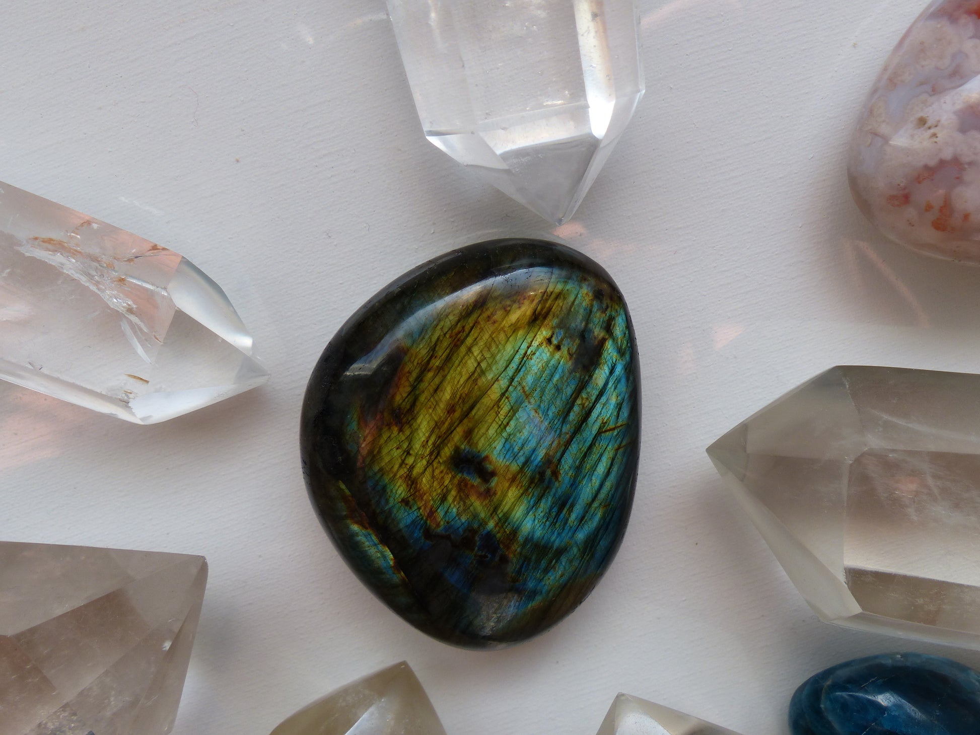 Inuit folklore says that labradorite fell from the "frozen fire" of the aurora borealis (the northern lights) causing an ordinary stone to become extraordinary. Labradorite is known as a stone that aids in times of transition and change. It is said to weaken the negative side of our personality and strengthen the positive. Each and every piece is truly magical and I feel so honored to get to share all of this beauty with you! ♡ To read more about this amazing stone visit this site: http://www.crystalvaults.com/crystal-encyclopedia/labradorite