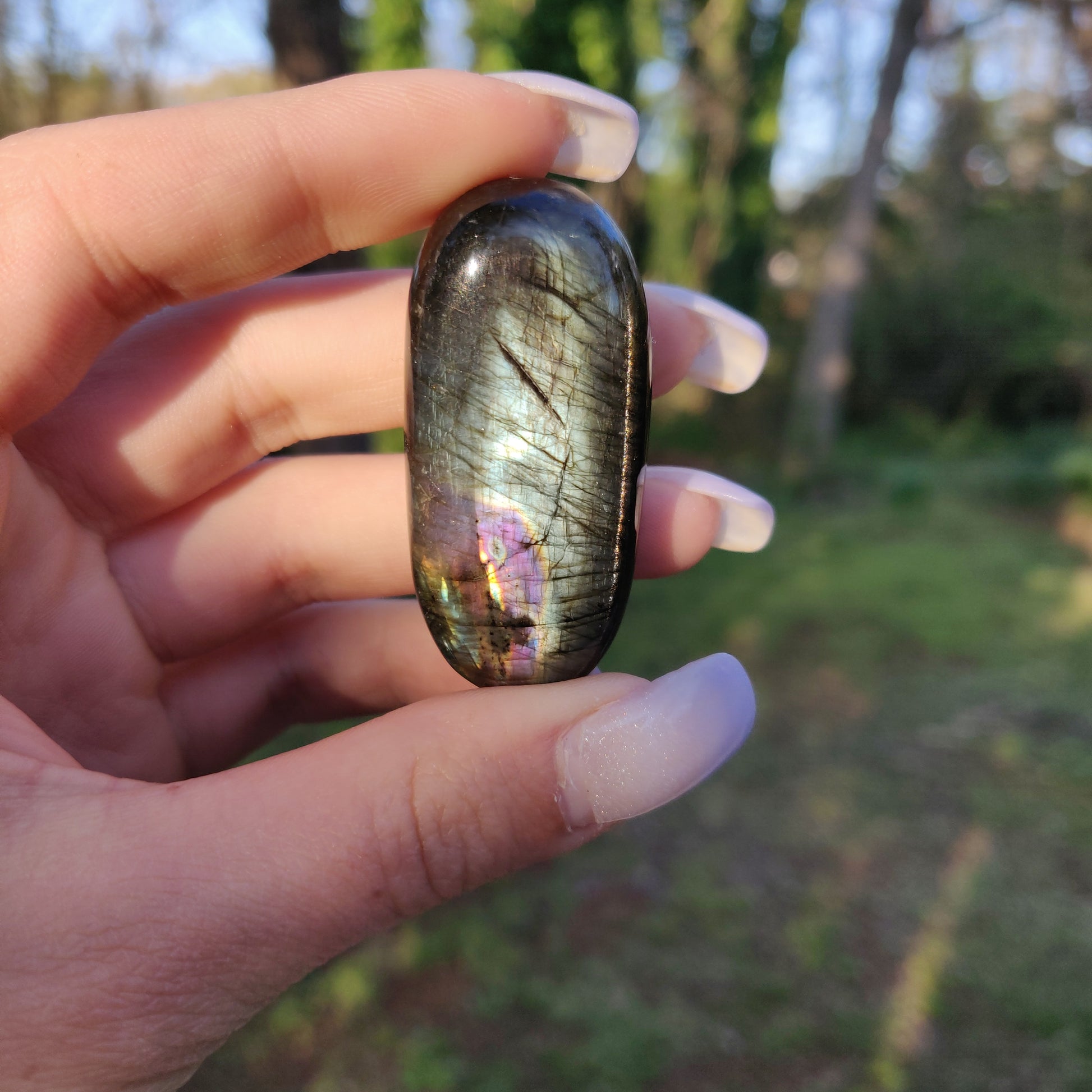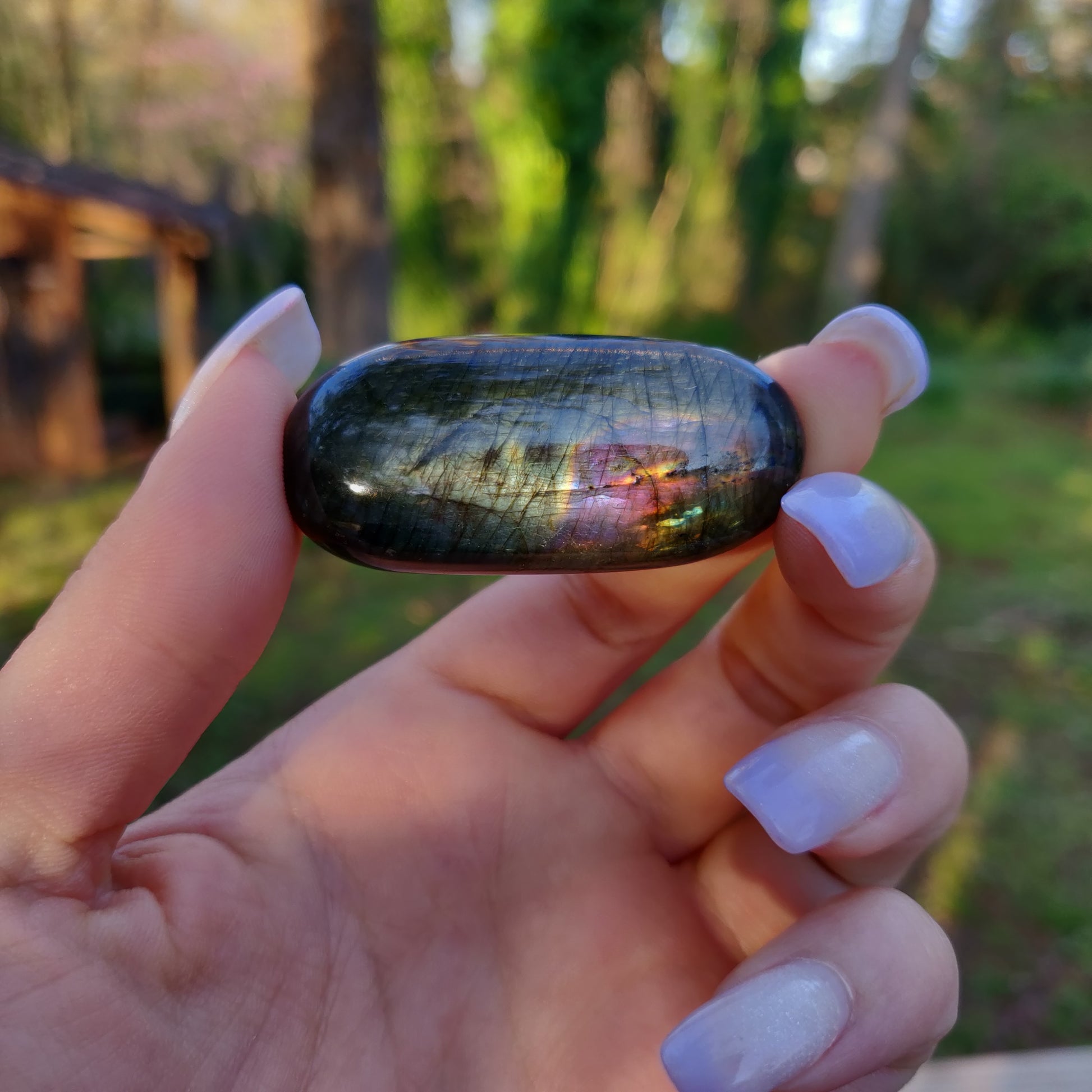 Inuit folklore says that labradorite fell from the "frozen fire" of the aurora borealis (the northern lights) causing an ordinary stone to become extraordinary. Labradorite is known as a stone that aids in times of transition and change. It is said to weaken the negative side of our personality and strengthen the positive. Each and every piece is truly magical and I feel so honored to get to share all of this beauty with you! ♡ To read more about this amazing stone visit this site: http://www.crystalvaults.com/crystal-encyclopedia/labradorite