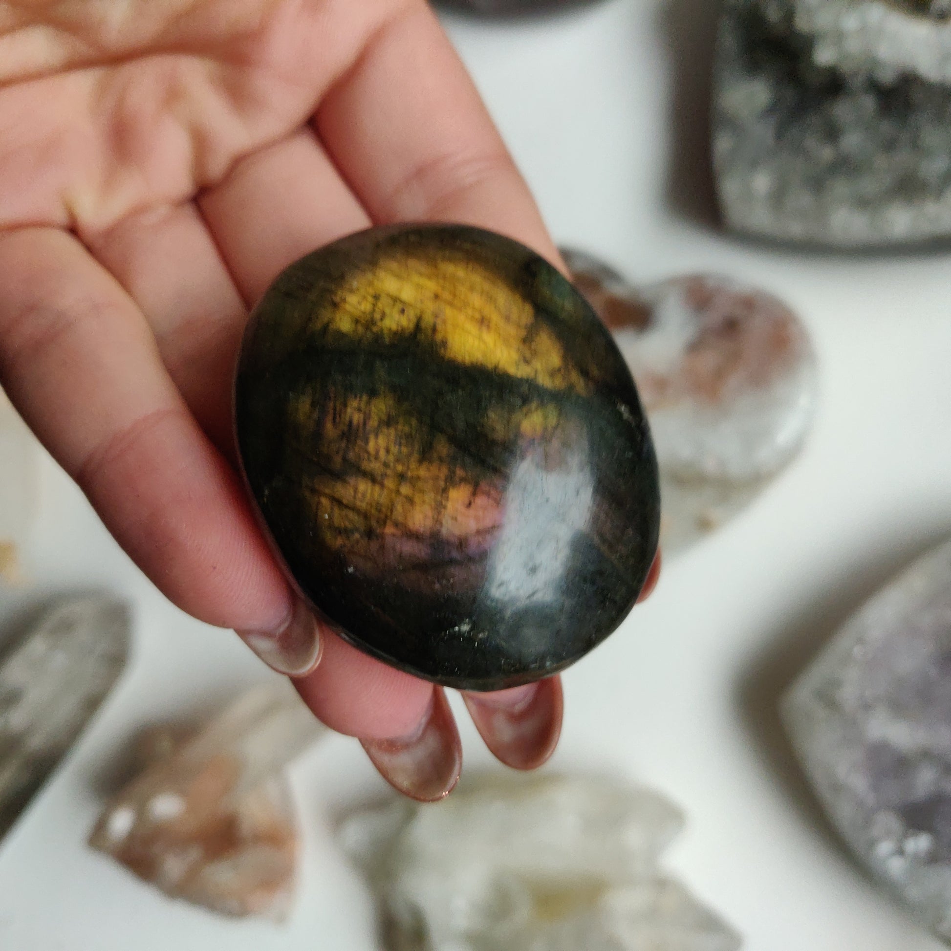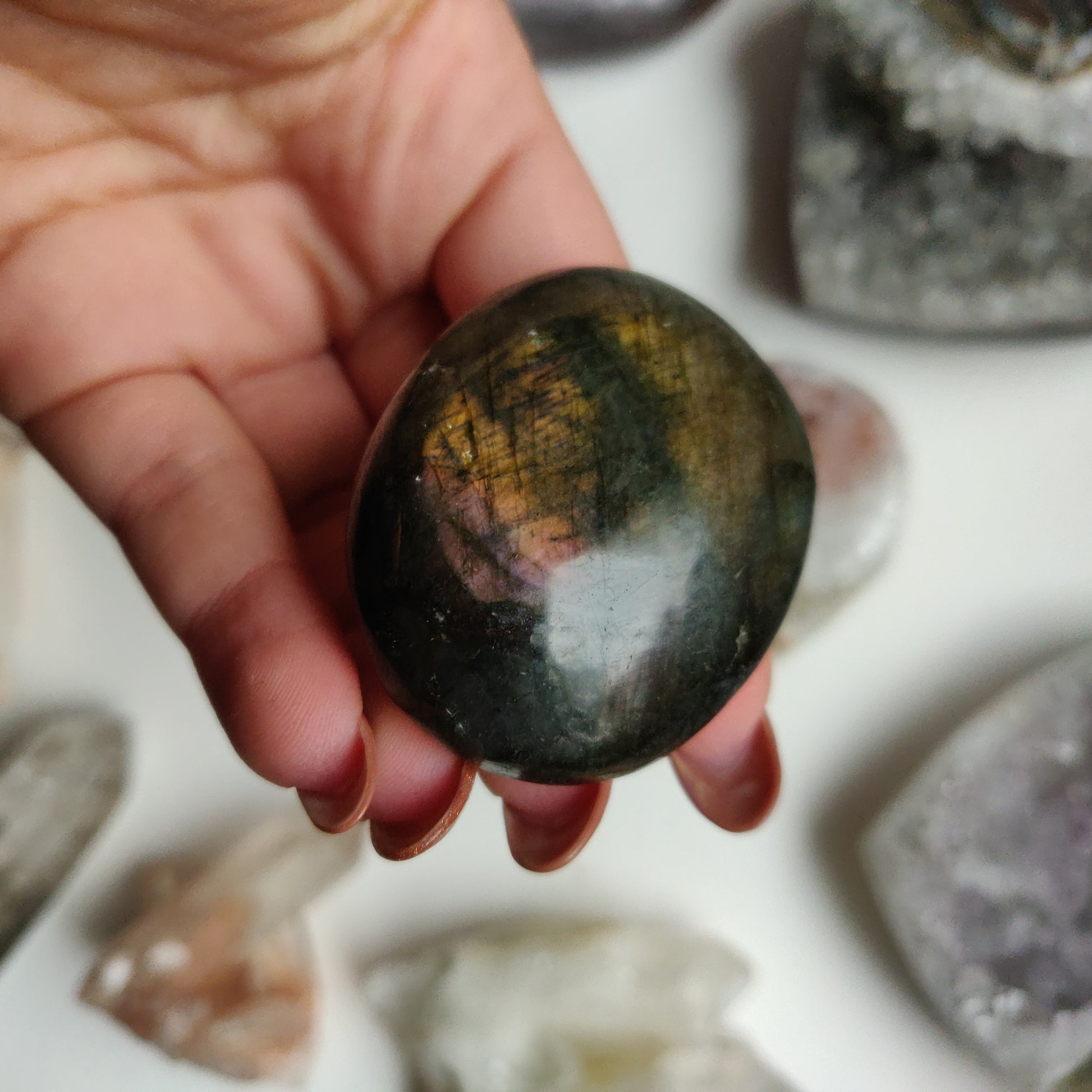 Inuit folklore says that labradorite fell from the "frozen fire" of the aurora borealis (the northern lights) causing an ordinary stone to become extraordinary. Labradorite is known as a stone that aids in times of transition and change. It is said to weaken the negative side of our personality and strengthen the positive. Each and every piece is truly magical and I feel so honored to get to share all of this beauty with you! ♡ To read more about this amazing stone visit this site: http://www.crystalvaults.com/crystal-encyclopedia/labradorite