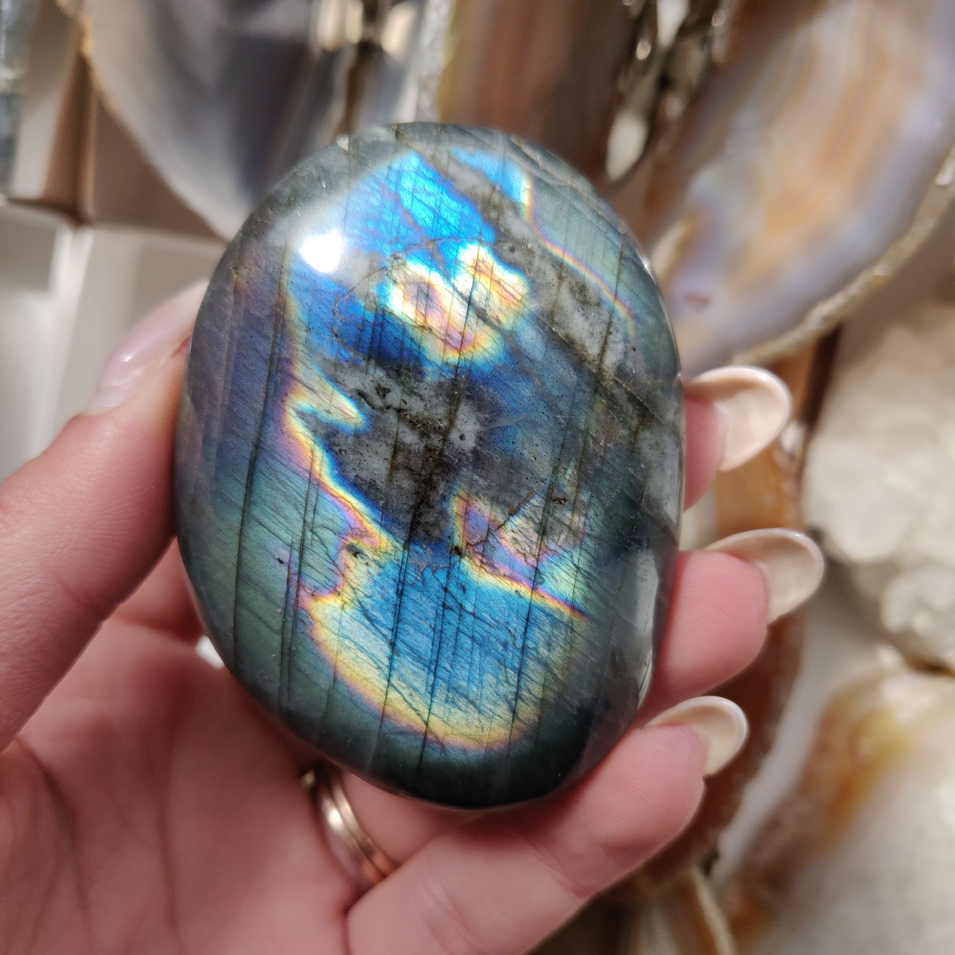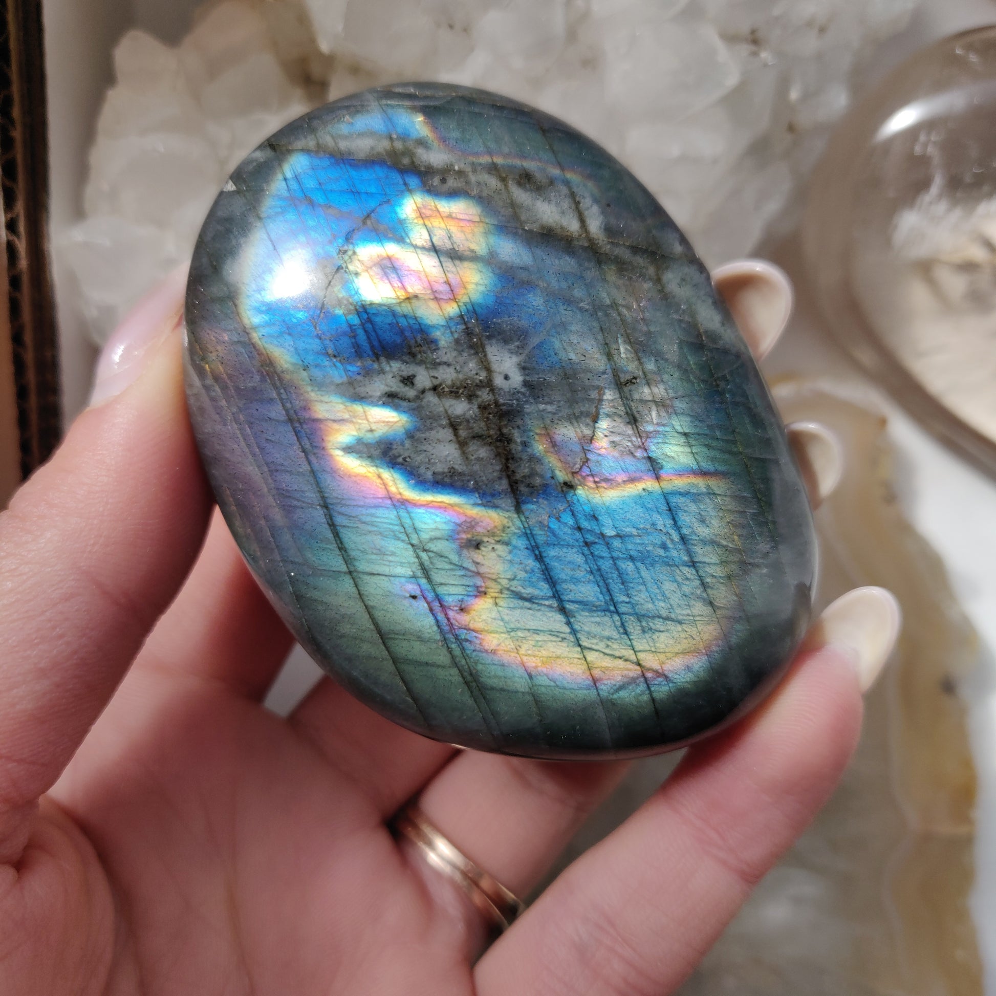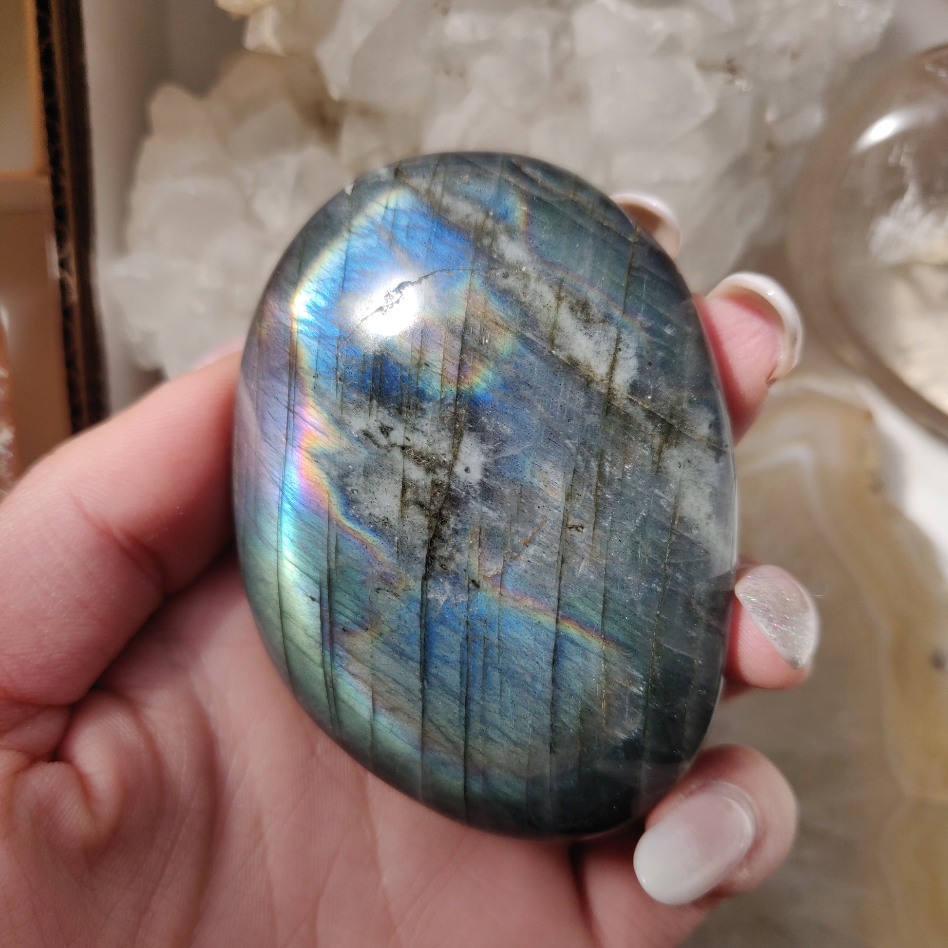 Inuit folklore says that labradorite fell from the "frozen fire" of the aurora borealis (the northern lights) causing an ordinary stone to become extraordinary. Labradorite is known as a stone that aids in times of transition and change. It is said to weaken the negative side of our personality and strengthen the positive. Each and every piece is truly magical and I feel so honored to get to share all of this beauty with you! ♡ To read more about this amazing stone visit this site: http://www.crystalvaults.com/crystal-encyclopedia/labradorite