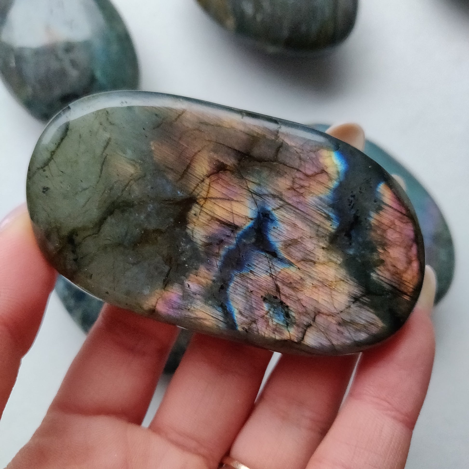 Inuit folklore says that labradorite fell from the "frozen fire" of the aurora borealis (the northern lights) causing an ordinary stone to become extraordinary. Labradorite is known as a stone that aids in times of transition and change. It is said to weaken the negative side of our personality and strengthen the positive. Each and every piece is truly magical and I feel so honored to get to share all of this beauty with you! ♡ To read more about this amazing stone visit this site: http://www.crystalvaults.com/crystal-encyclopedia/labradorite