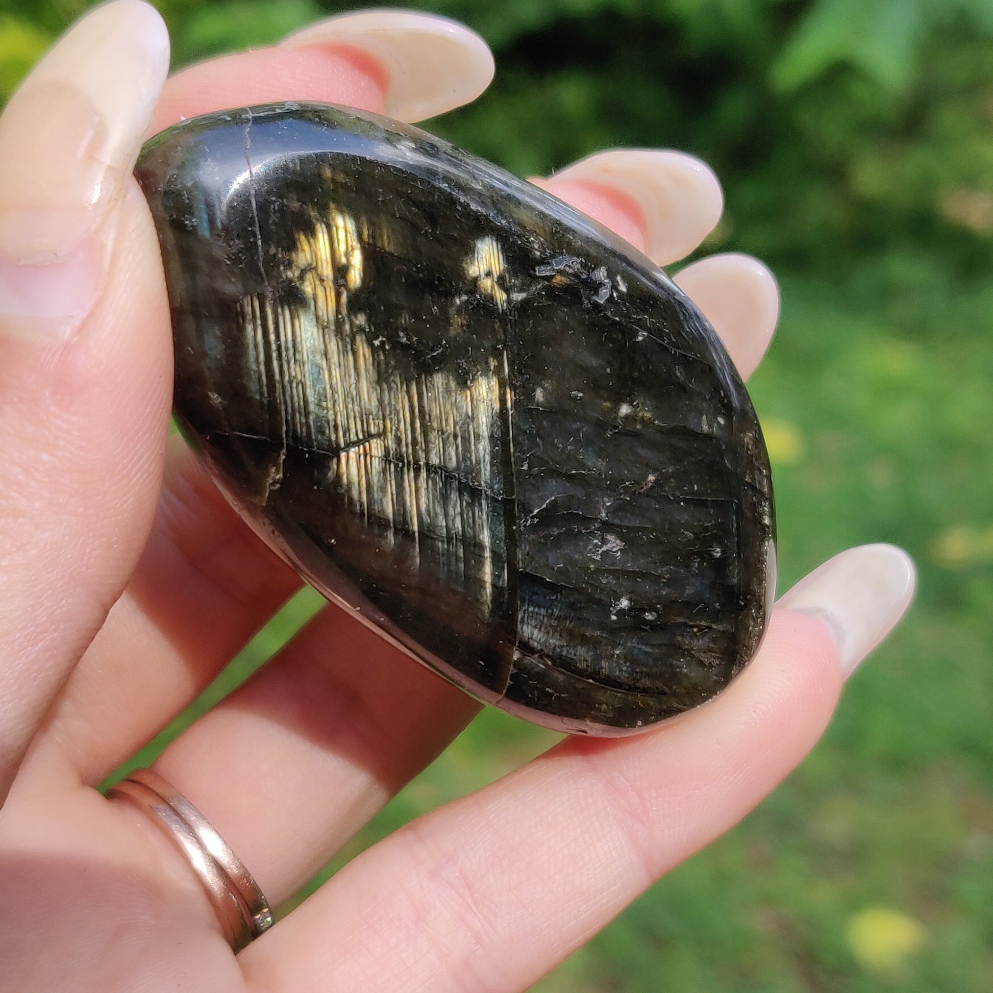 Inuit folklore says that labradorite fell from the "frozen fire" of the aurora borealis (the northern lights) causing an ordinary stone to become extraordinary. Labradorite is known as a stone that aids in times of transition and change. It is said to weaken the negative side of our personality and strengthen the positive. Each and every piece is truly magical and I feel so honored to get to share all of this beauty with you! ♡ To read more about this amazing stone visit this site: http://www.crystalvaults.com/crystal-encyclopedia/labradorite