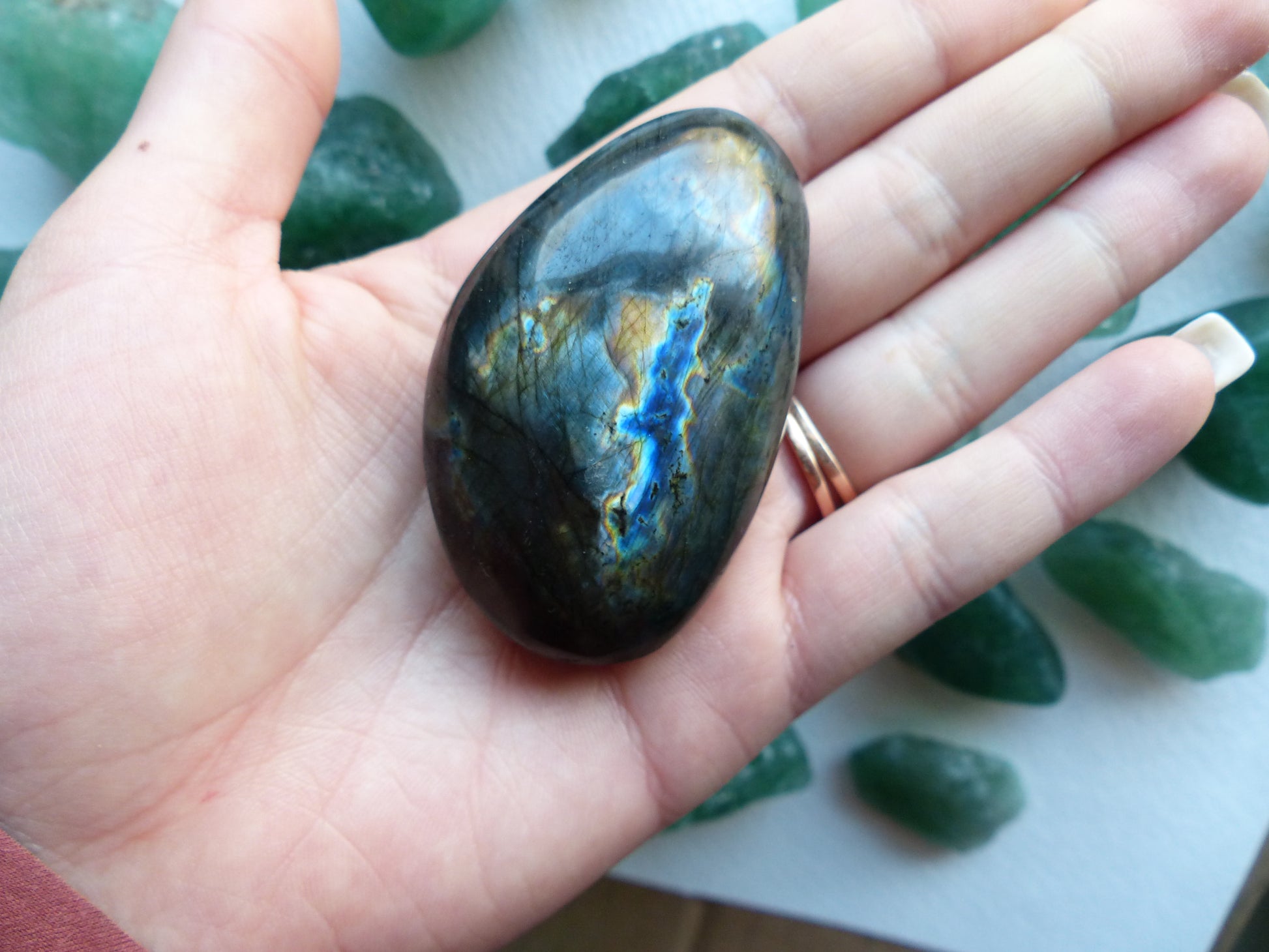 Inuit folklore says that labradorite fell from the "frozen fire" of the aurora borealis (the northern lights) causing an ordinary stone to become extraordinary. Labradorite is known as a stone that aids in times of transition and change. It is said to weaken the negative side of our personality and strengthen the positive. Each and every piece is truly magical and I feel so honored to get to share all of this beauty with you! ♡ To read more about this amazing stone visit this site: http://www.crystalvaults.com/crystal-encyclopedia/labradorite