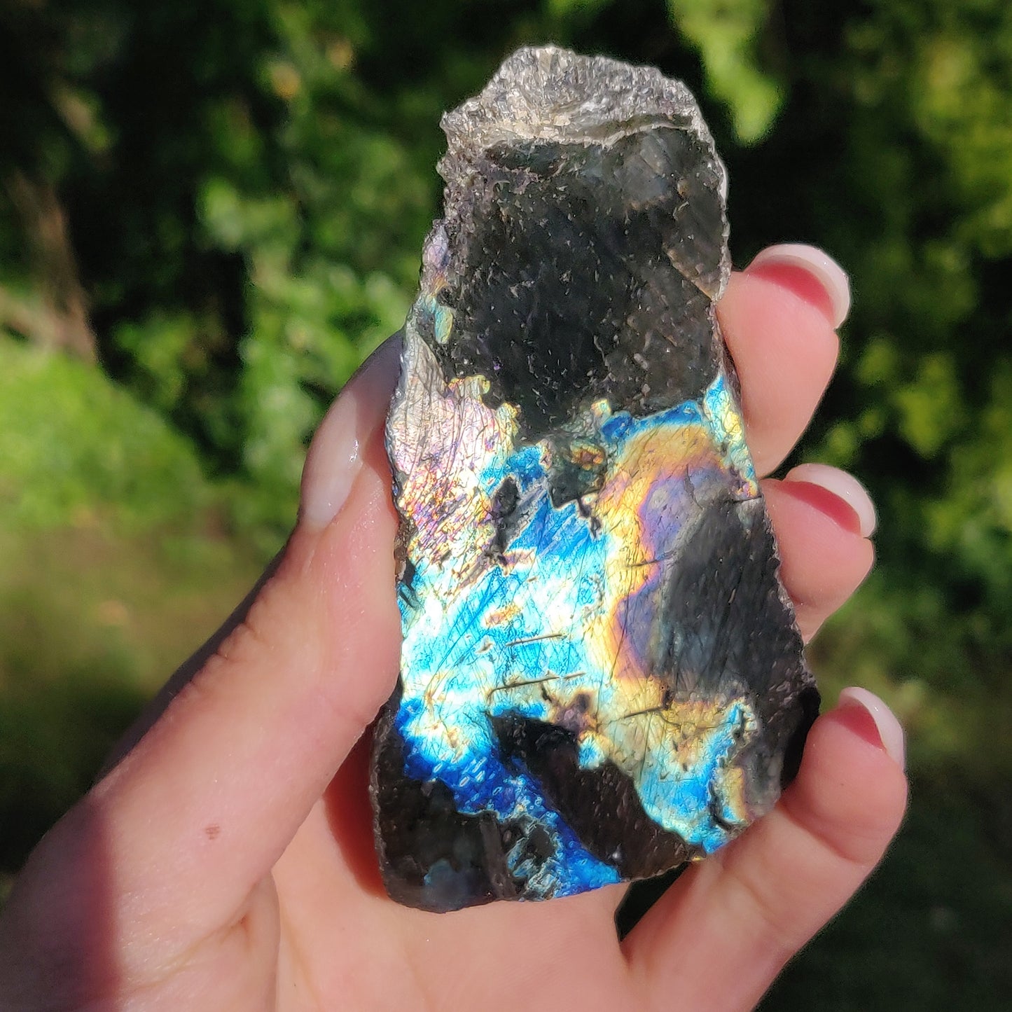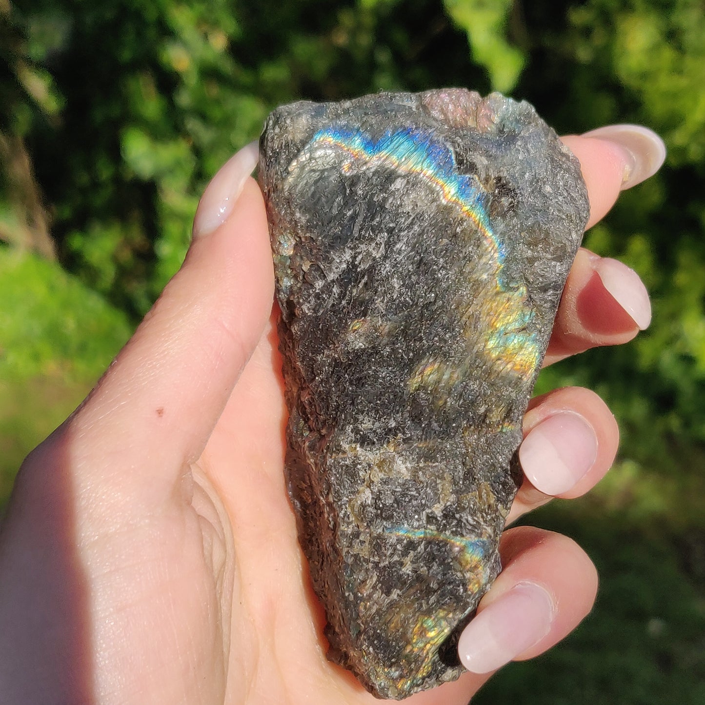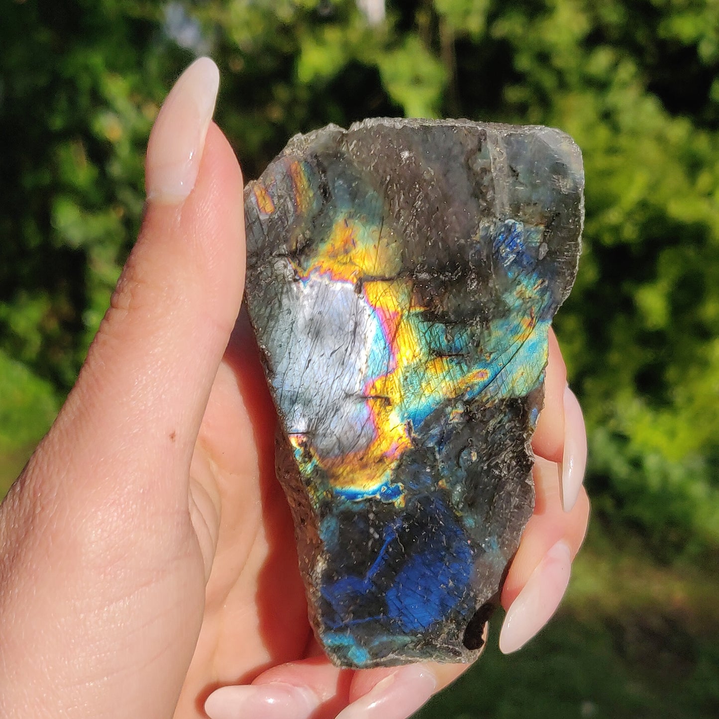 *Please note: this is a natural gem that will have imperfections. There are a few small chips and nicks. Natural beauty <3 This piece was photographed in natural lighting, and held at the proper angles to show full flash potential.