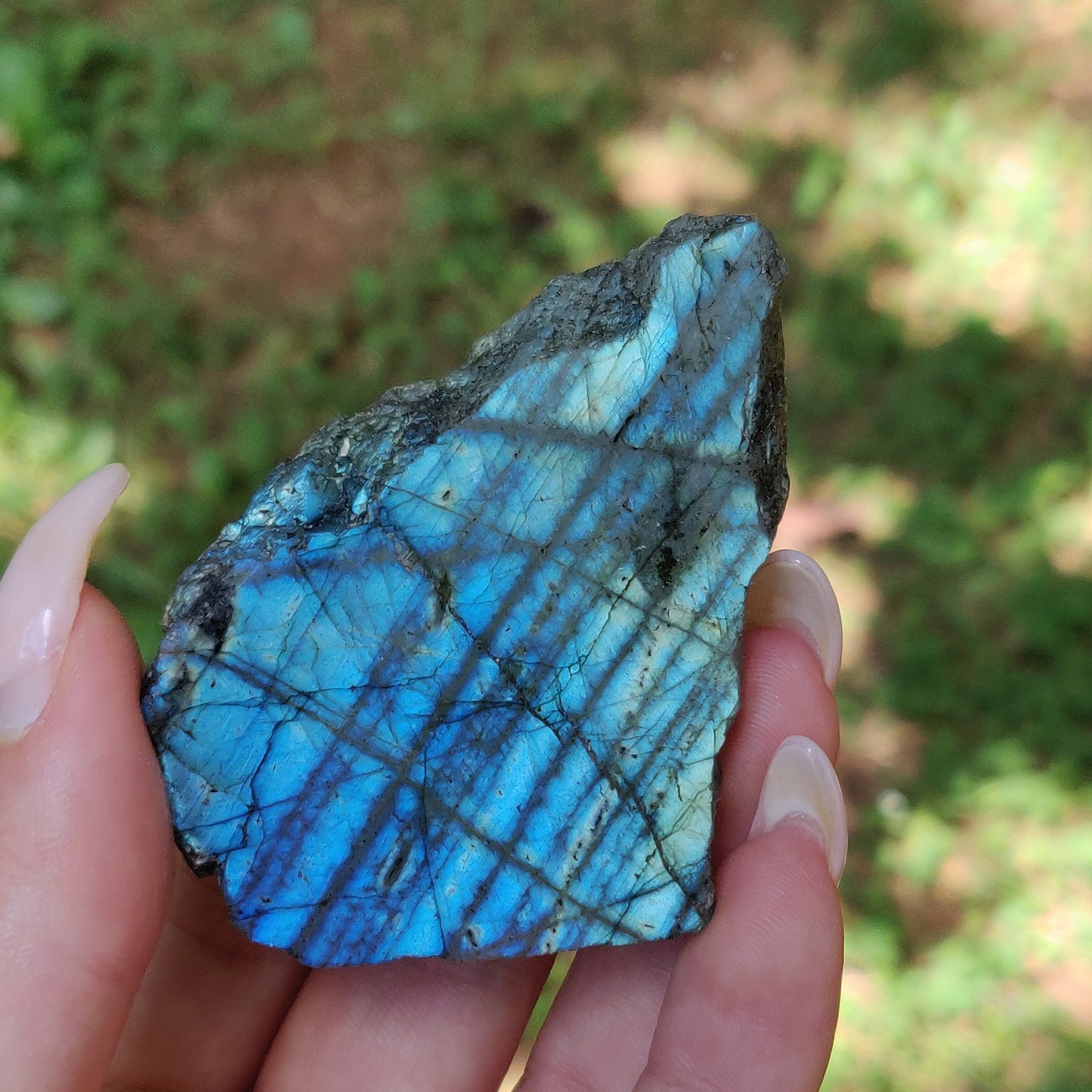 *Please note: this is a natural gem that will have imperfections. There are a few small chips and nicks. Natural beauty <3 This piece was photographed in natural lighting, and held at the proper angles to show full flash potential.