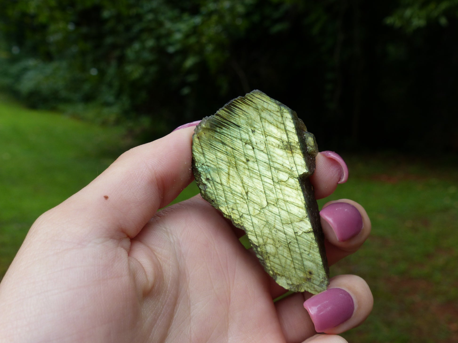 This lovely piece is polished on one side & rough on the others. The rough side also displays a beautiful flash. 💜Labradorite is known as a stone that aids in times of transition and change. Inuit folklore says that labradorite fell from the "frozen fire" of the aurora borealis (the northern lights) causing an ordinary stone to become extraordinary. It is said to weaken the negative side of our personality and strengthen the positive. Each and every piece is truly magical and I feel so honored to get to share all of this beauty with you! ♡ To read more about this amazing stone visit this site: http://www.crystalvaults.com/crystal-encyclopedia/labradorite